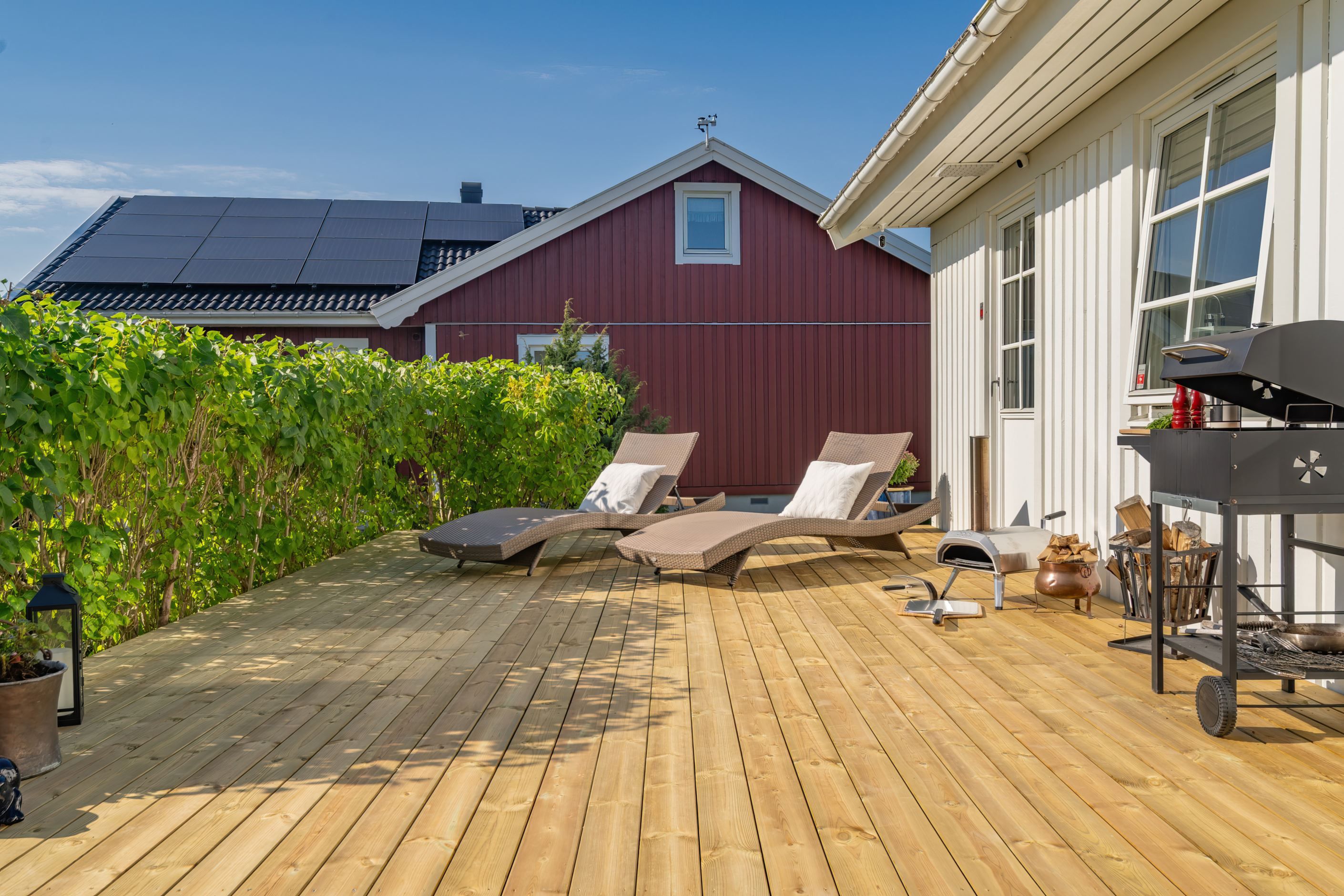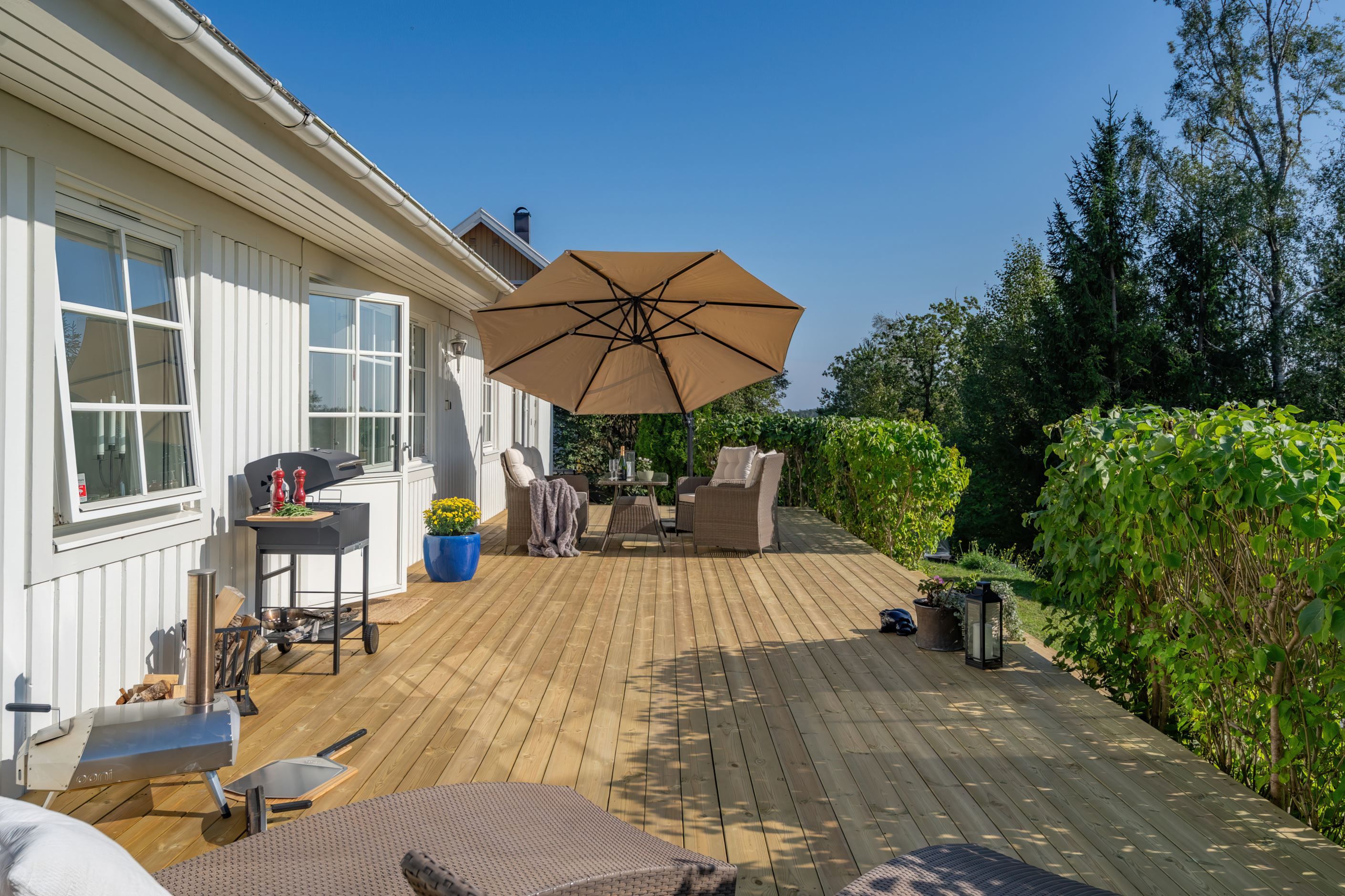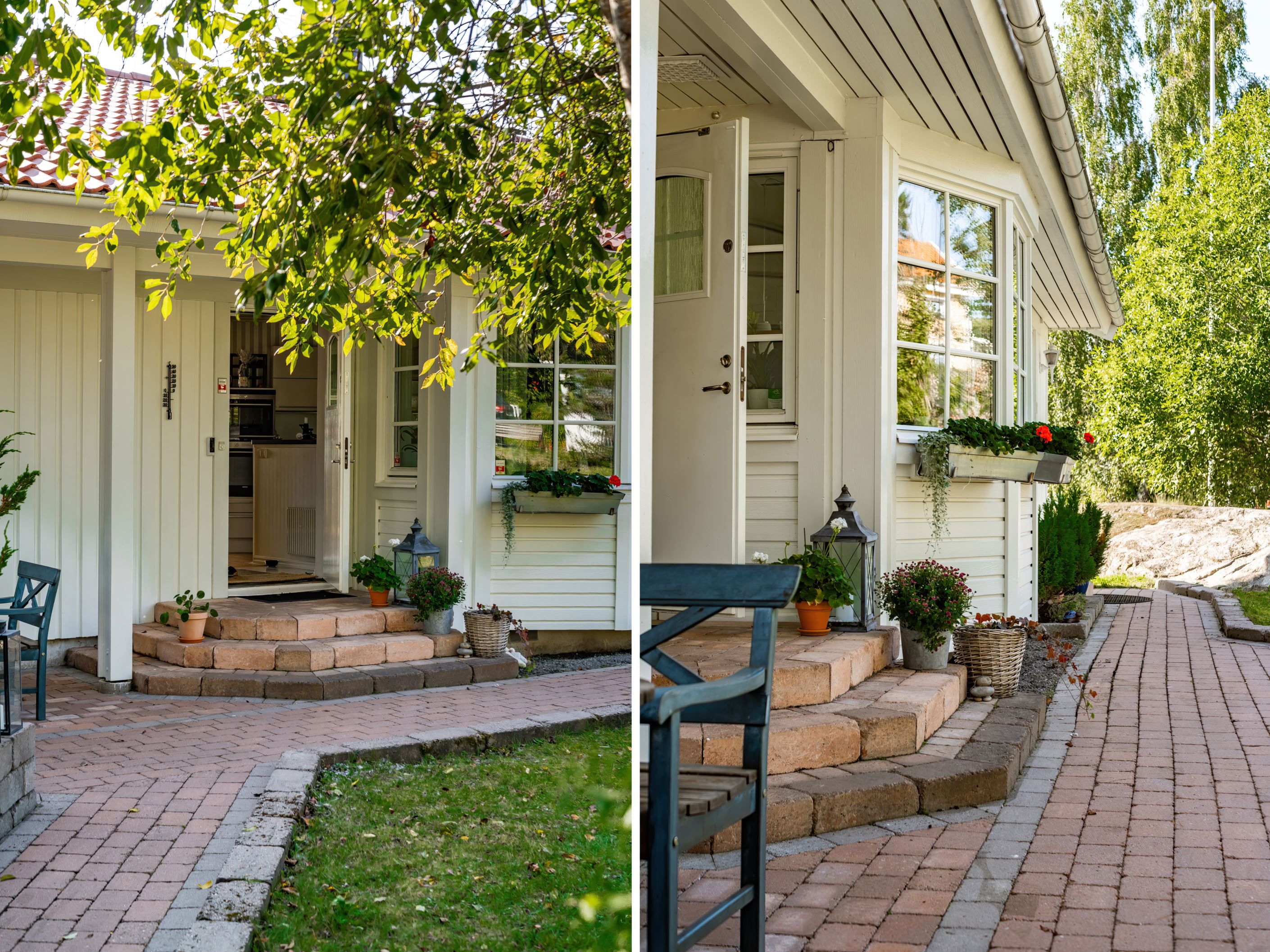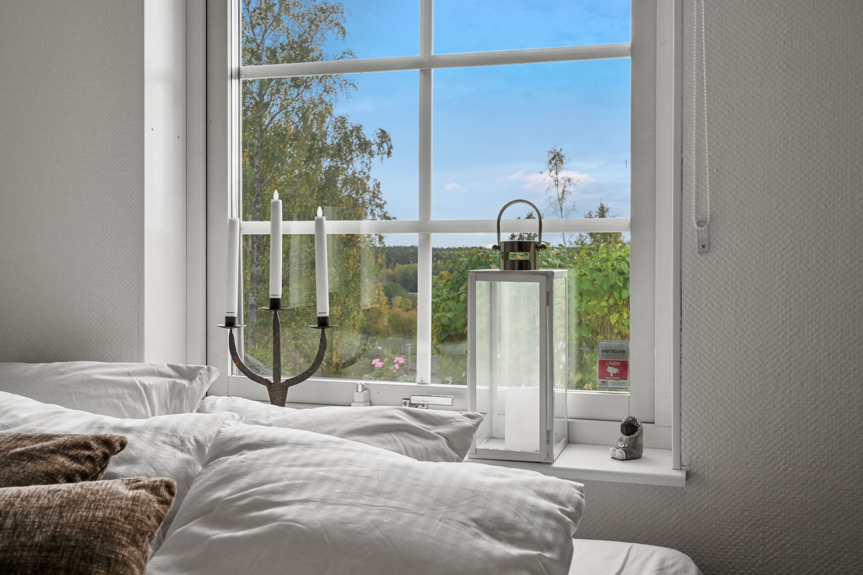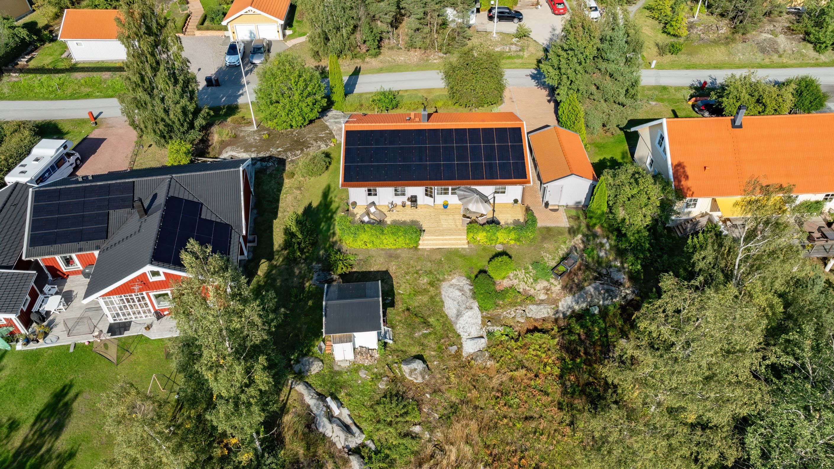 Här finns två badrum – ett nyrenoverat med dusch och ett med badkar – samt en nybyggd altan i soligt söderläge där du kan njuta av utsikten och härliga sommardagar. Hållbara energilösningar med solceller håller driftskostnaderna nere. På tomten finns även carport, stor uppfart och en fristående gäststuga som med fördel kan användas som kontor.