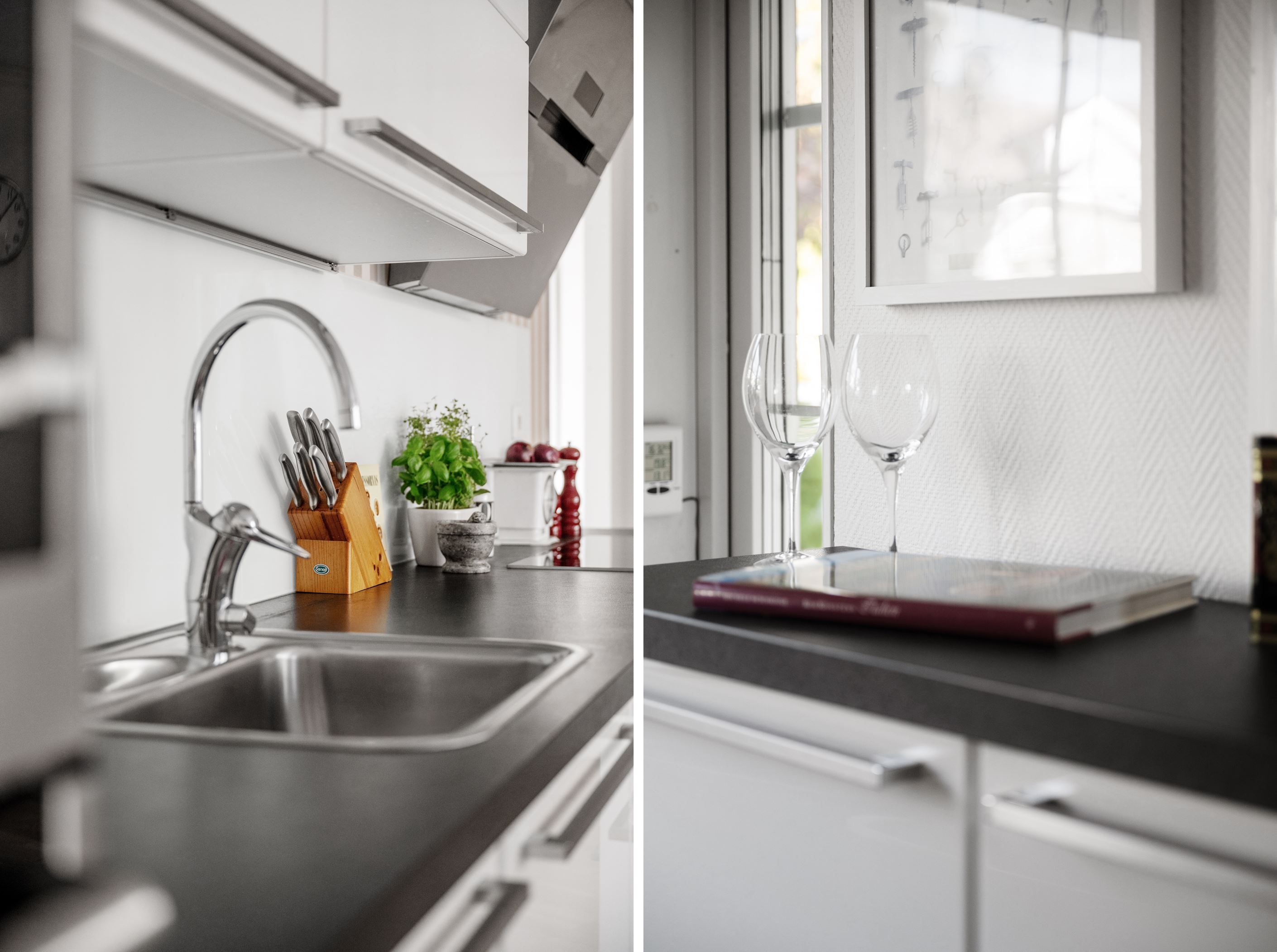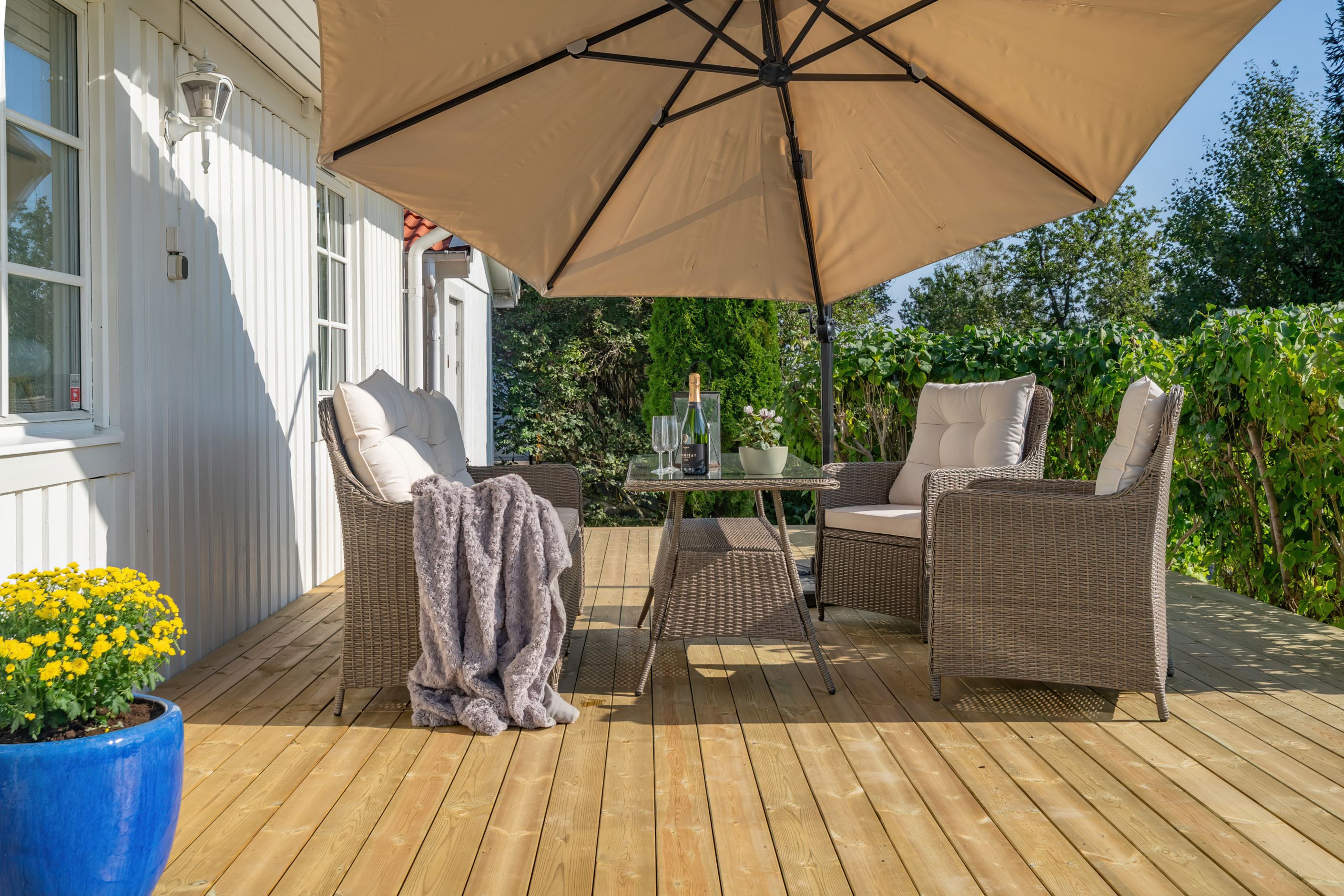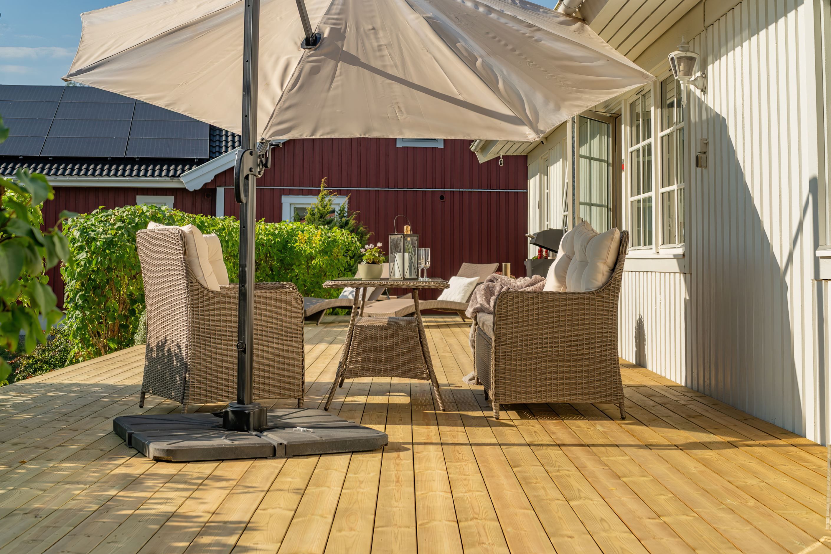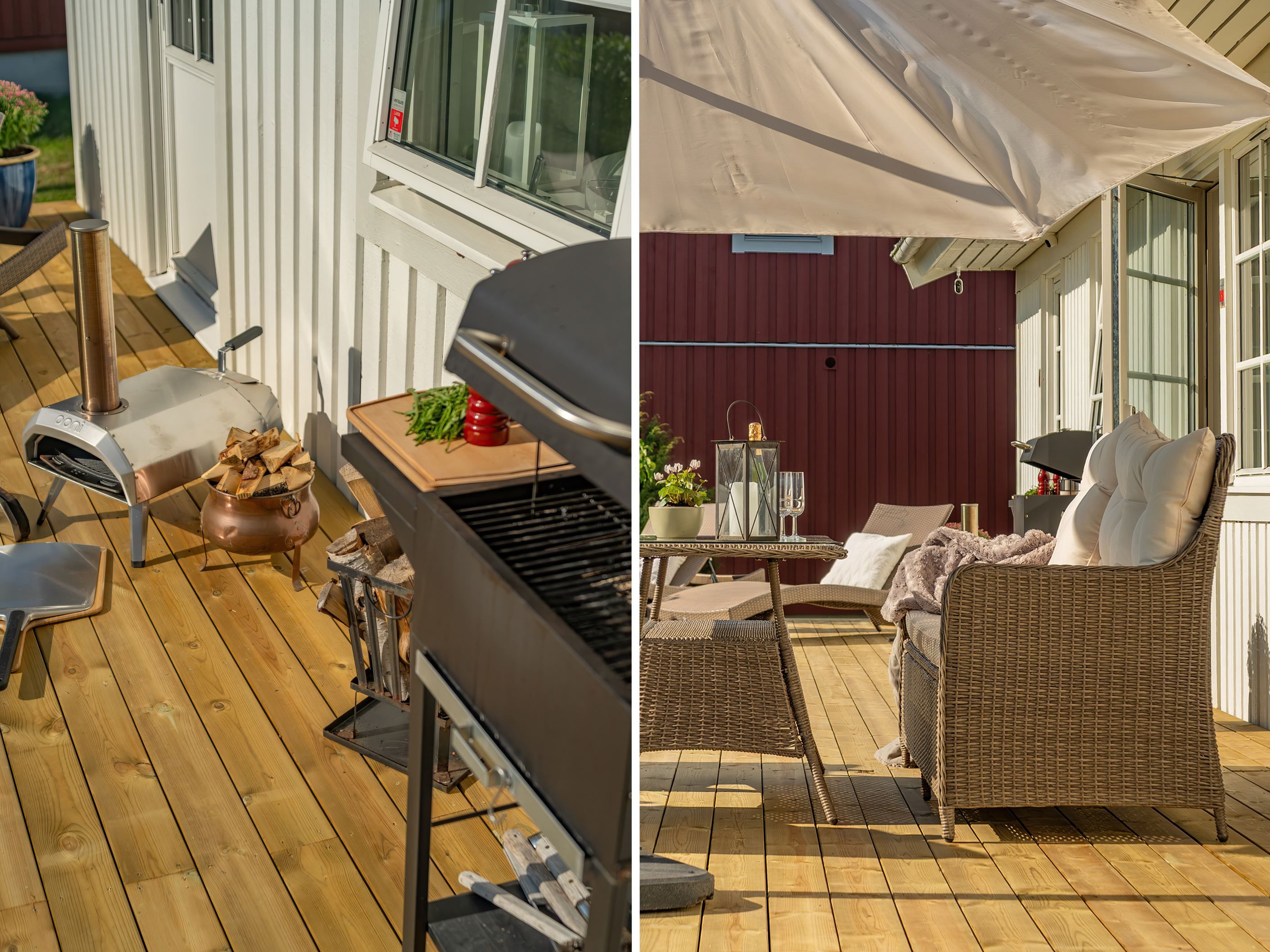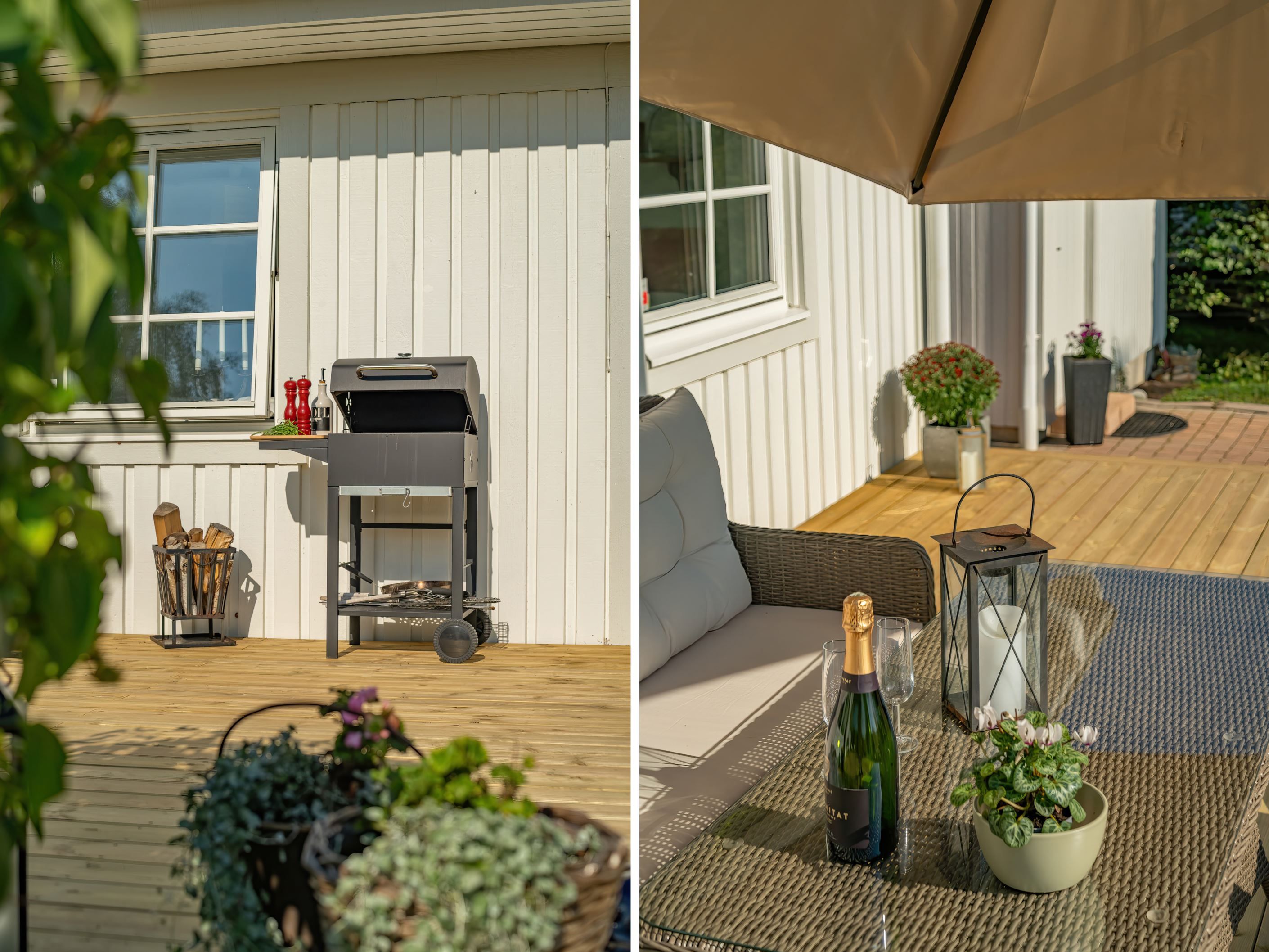 Här finns två badrum – ett nyrenoverat med dusch och ett med badkar – samt en nybyggd altan i soligt söderläge där du kan njuta av utsikten och härliga sommardagar. Hållbara energilösningar med solceller håller driftskostnaderna nere. På tomten finns även carport, stor uppfart och en fristående gäststuga som med fördel kan användas som kontor.