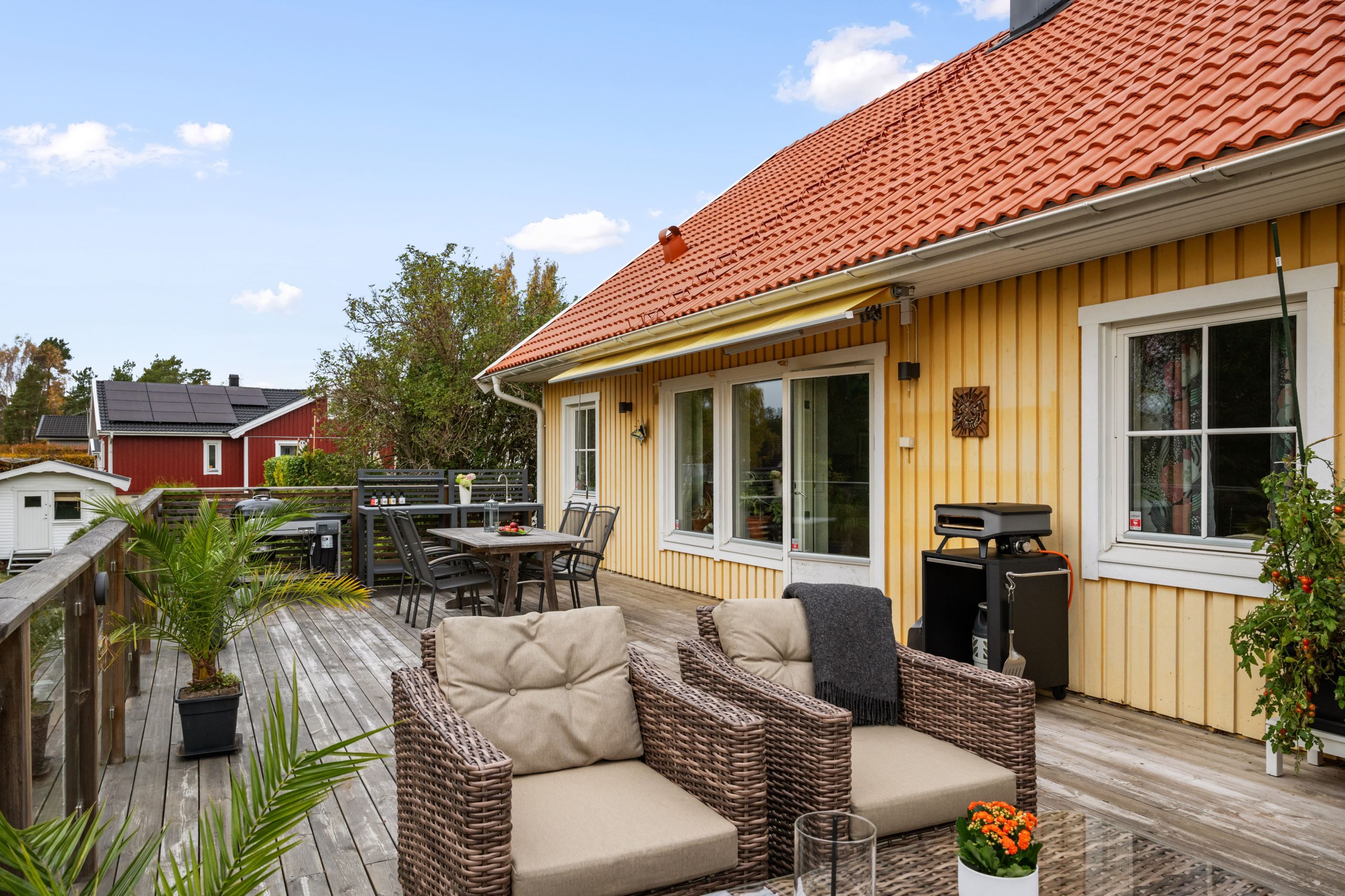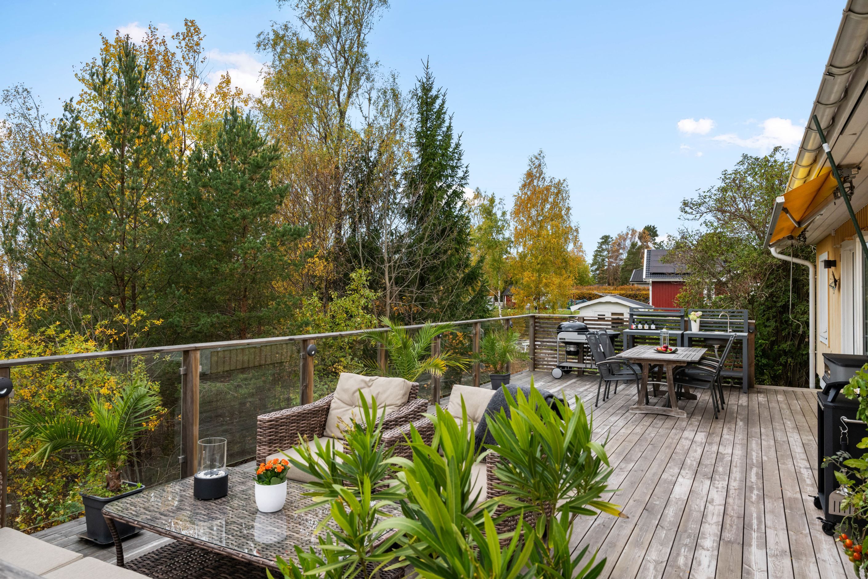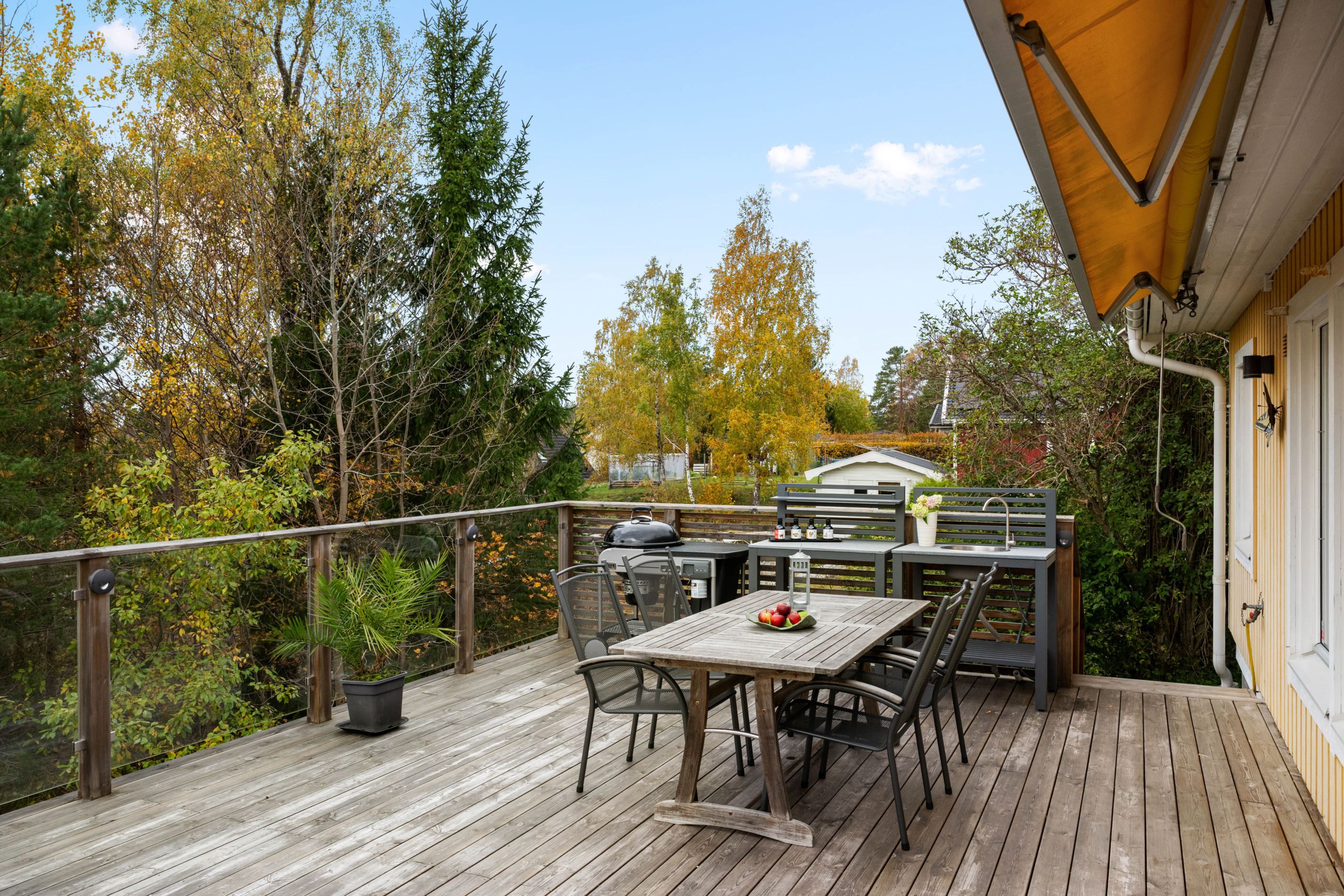 Välkommen till Översättravägen 84 – en rymlig och välskött familjevilla på lugn återvändsgata i populära Skärgårdsstad. Här bor du med ett av områdets finaste lägen – högt placerat, insynsskyddat och med fri utsikt från både bostad och terrass. Den stora, trädäckade terrassen om ca 50 kvm i bästa sydvästläge bjuder på sol hela dagen och är sommartid en naturlig plats för både avkoppling och sociala tillställningar. Intill huset breder en välskött trädgårdstomt ut sig och på uppfarten finns dessutom ett rymligt garage med tillhörande vindsutrymme. För den båtintresserade finns möjlighet till båtplats (klass2) i Skärgårdsstads marina – bara några minuter bort.