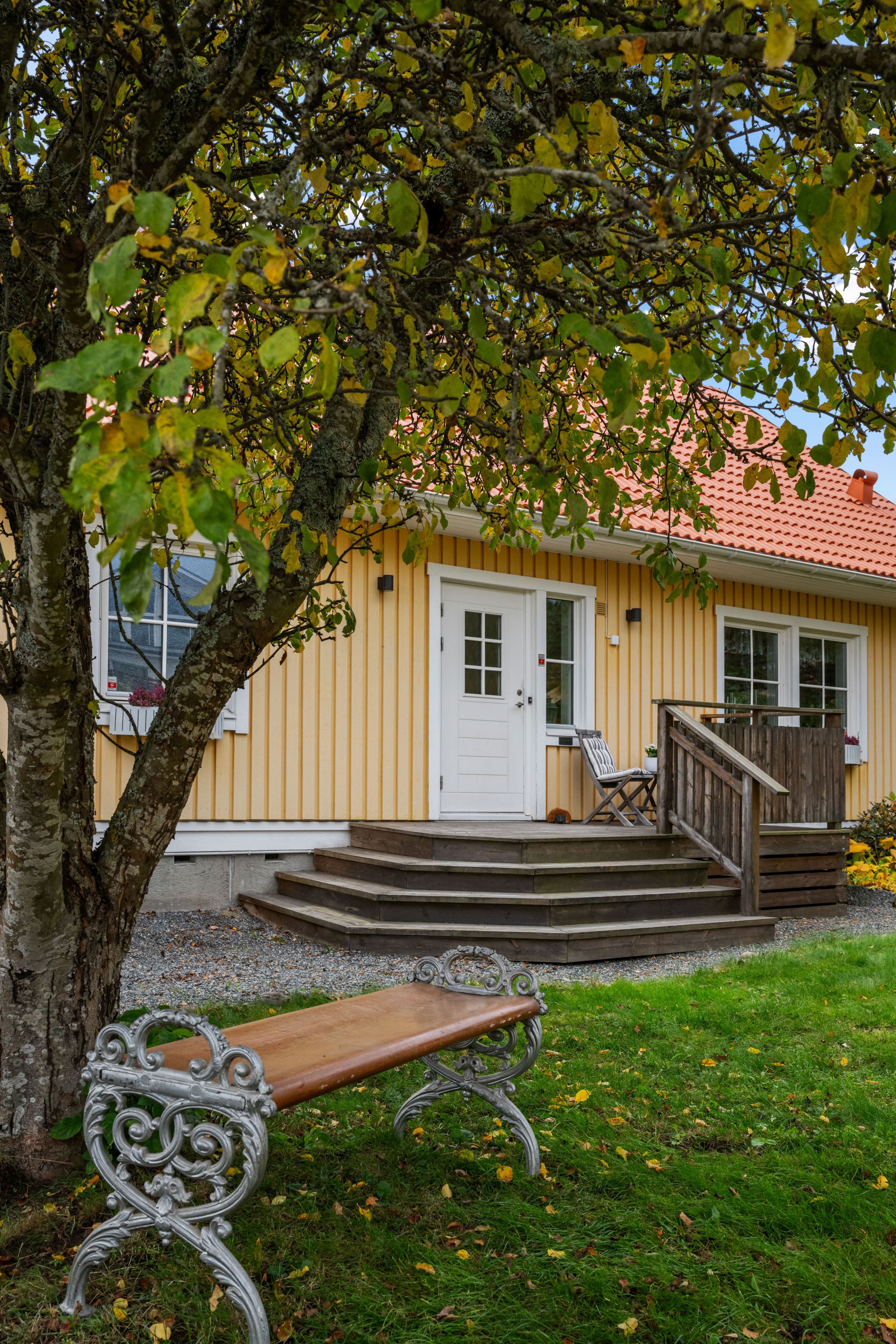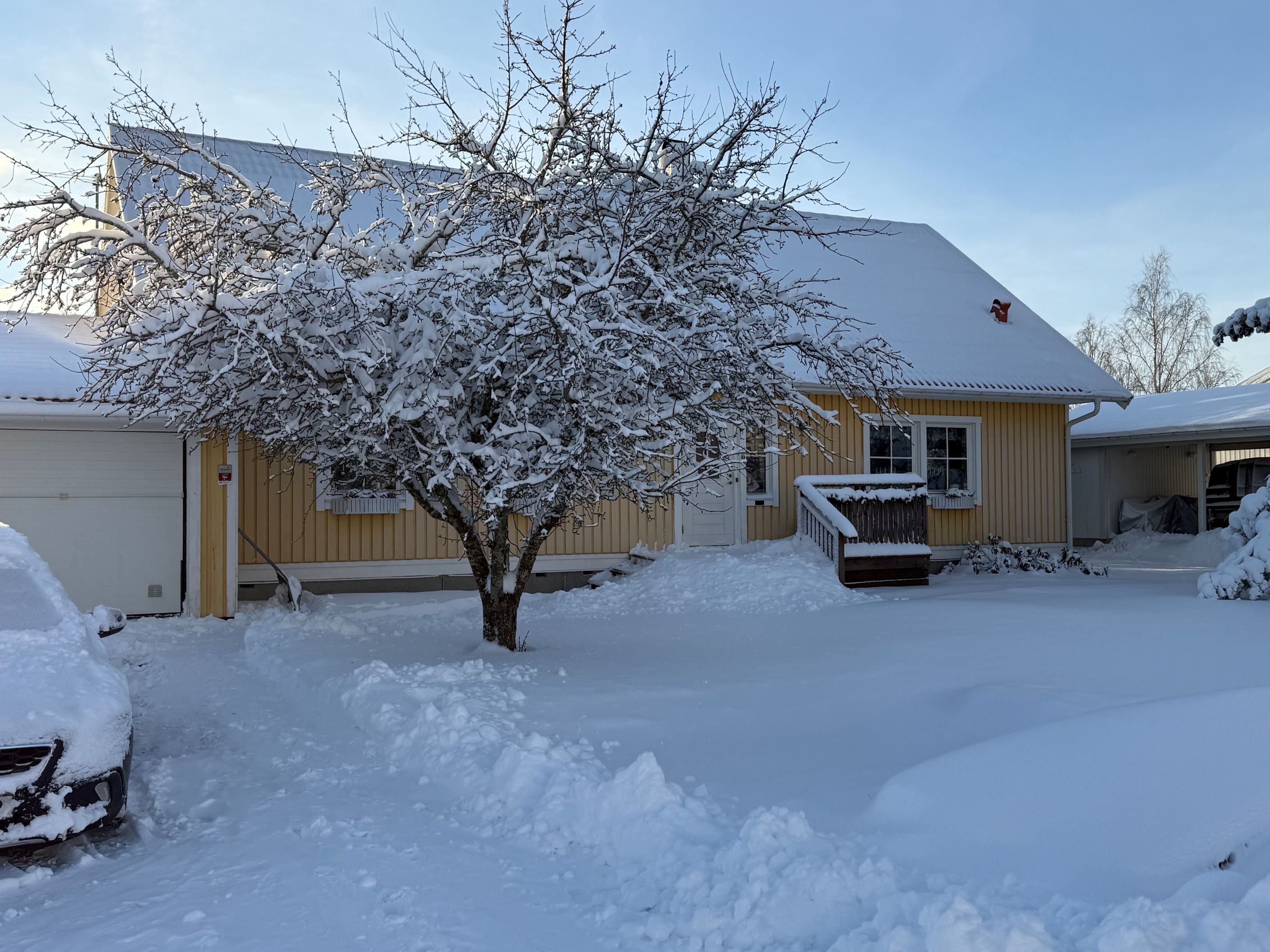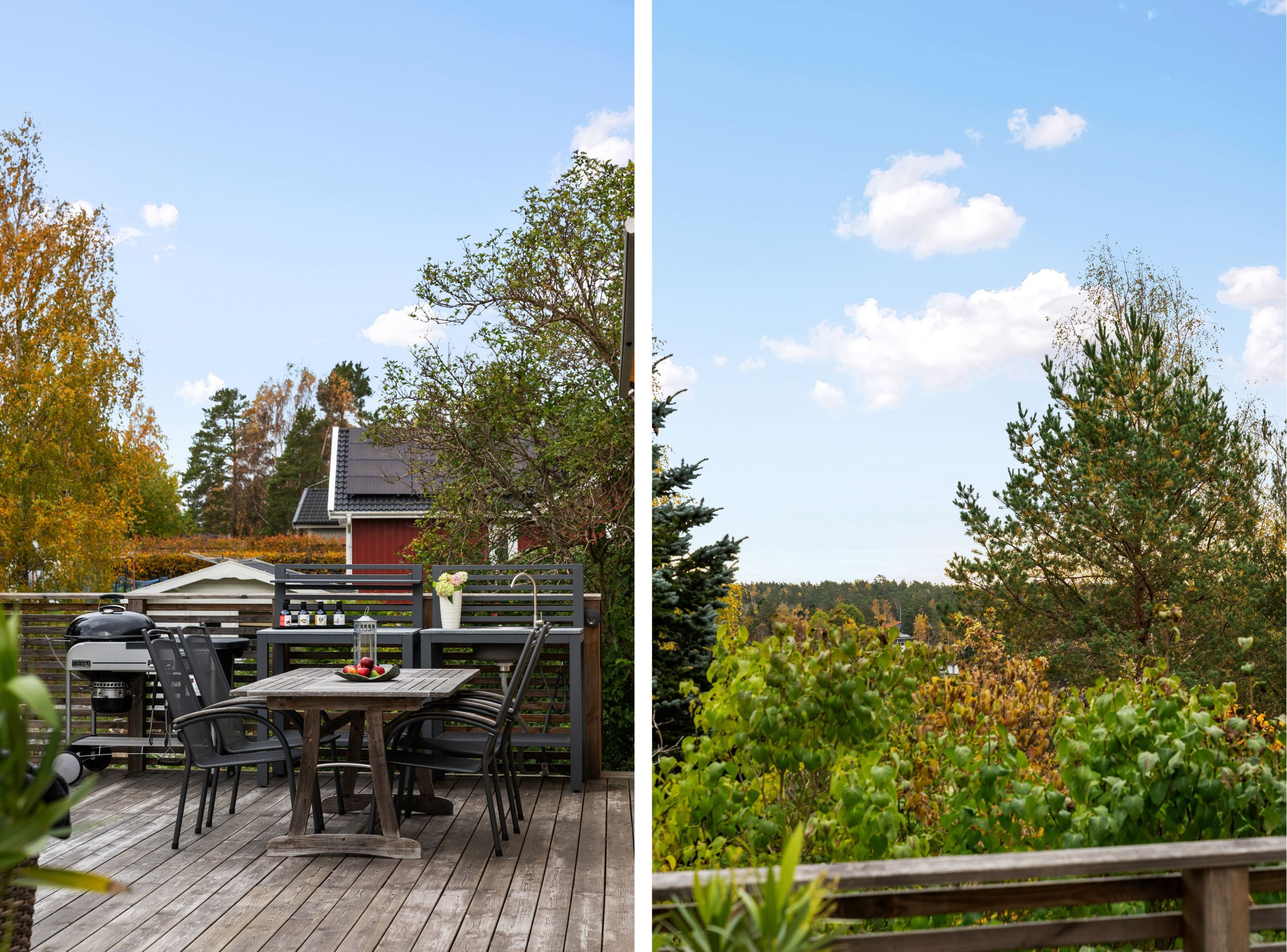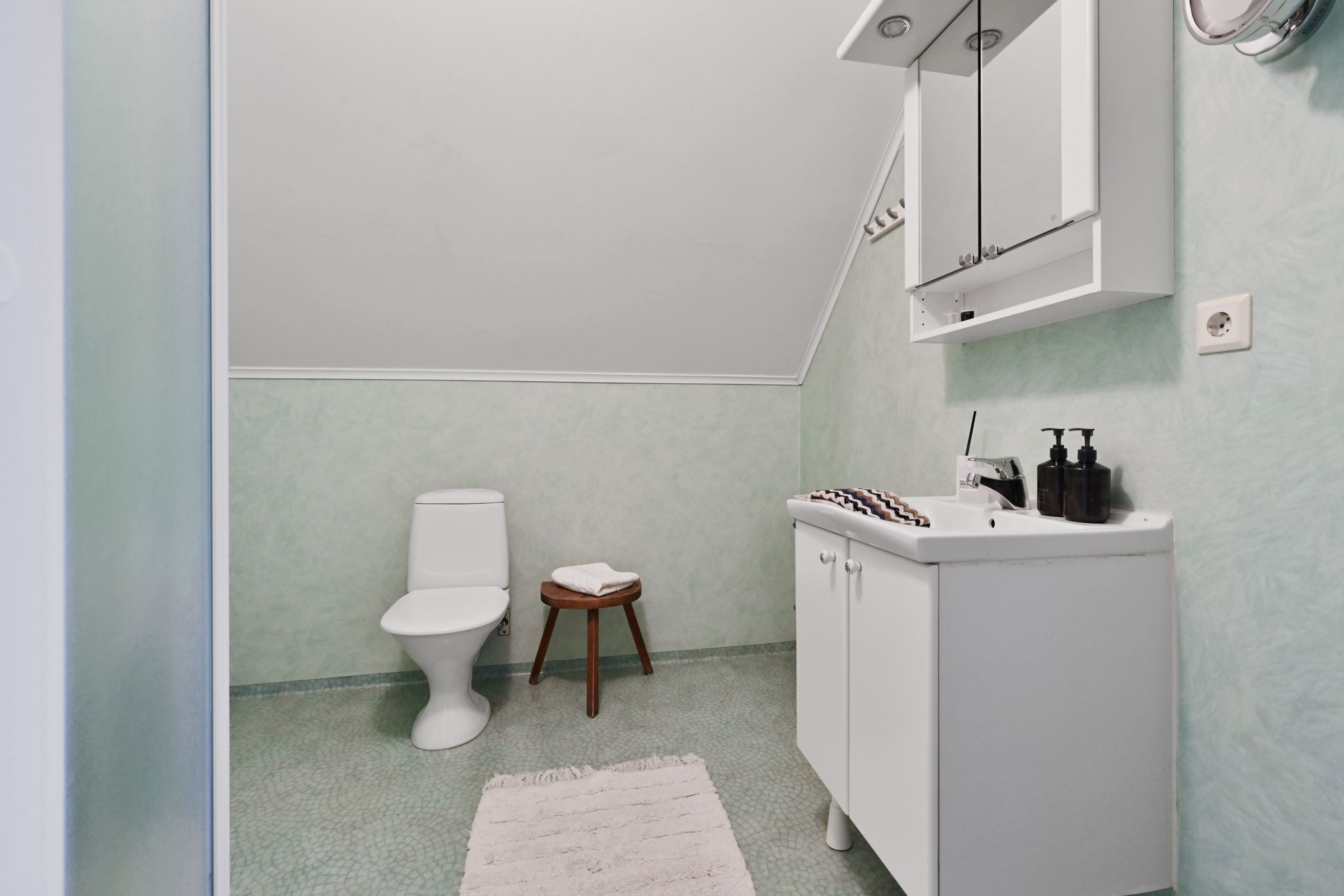 En trappa upp möts du av ett rymligt och möblerbart allrum – perfekt som tv-rum, lekyta eller arbetsplats. På övervåningen ytterligare tre sovrum, varav ett med klädkammare bakom spegelskjutdörrar. Övervåningen rymmer också ett andra badrum med duschhörna samt två praktiska förråd och en vindslucka som leder till ett spångförsett vindsutrymme för extra förvaring.