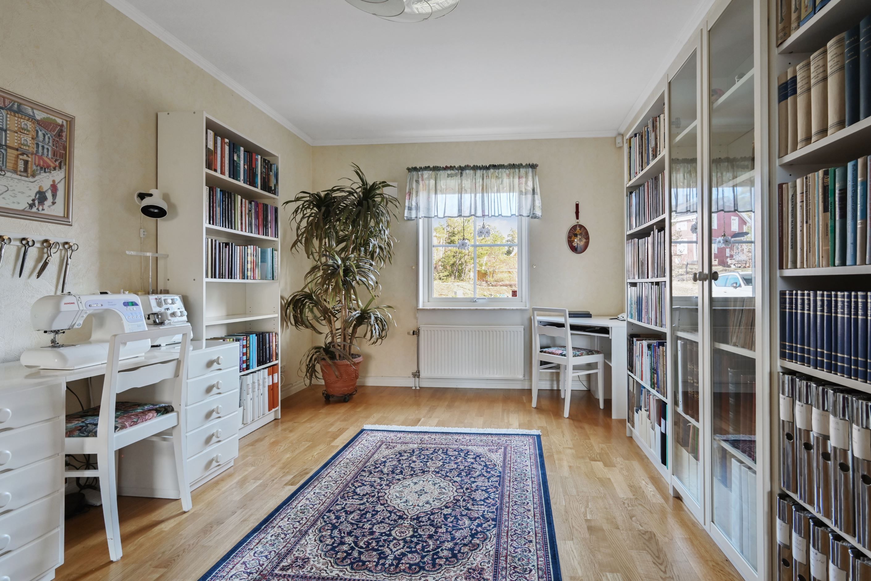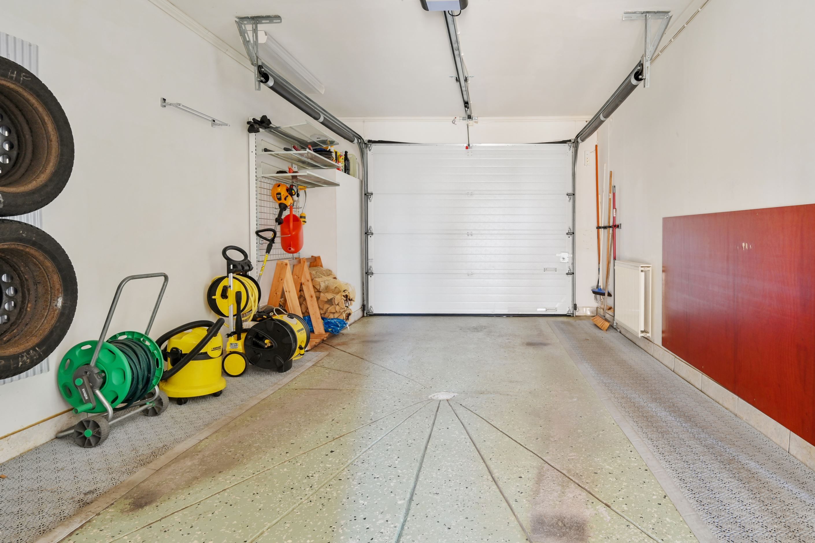 Från huset nås det rymliga, isolerade garaget med fjärrstyrd port. I anslutning finns ett separat arbetsrum med egen ingång, vilket ger goda möjligheter för egen verksamhet, gästrum eller tonårsdel. Under huset finns dessutom ett stort isolerat utrymme som lämpar sig väl för förvaring av exempelvis möbler och trädgårdsredskap.