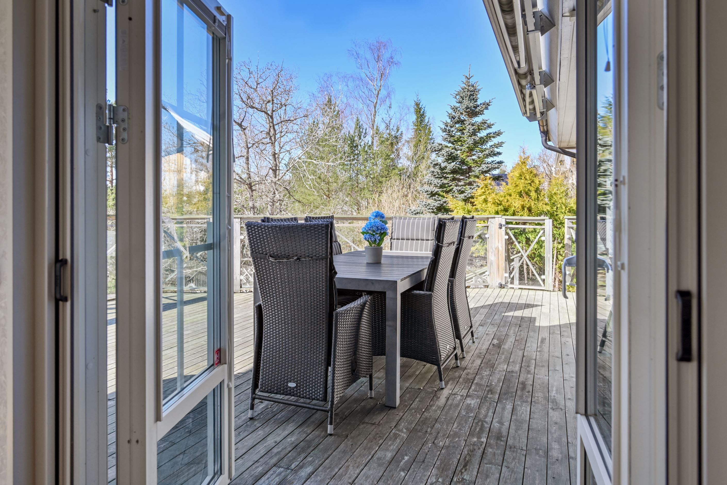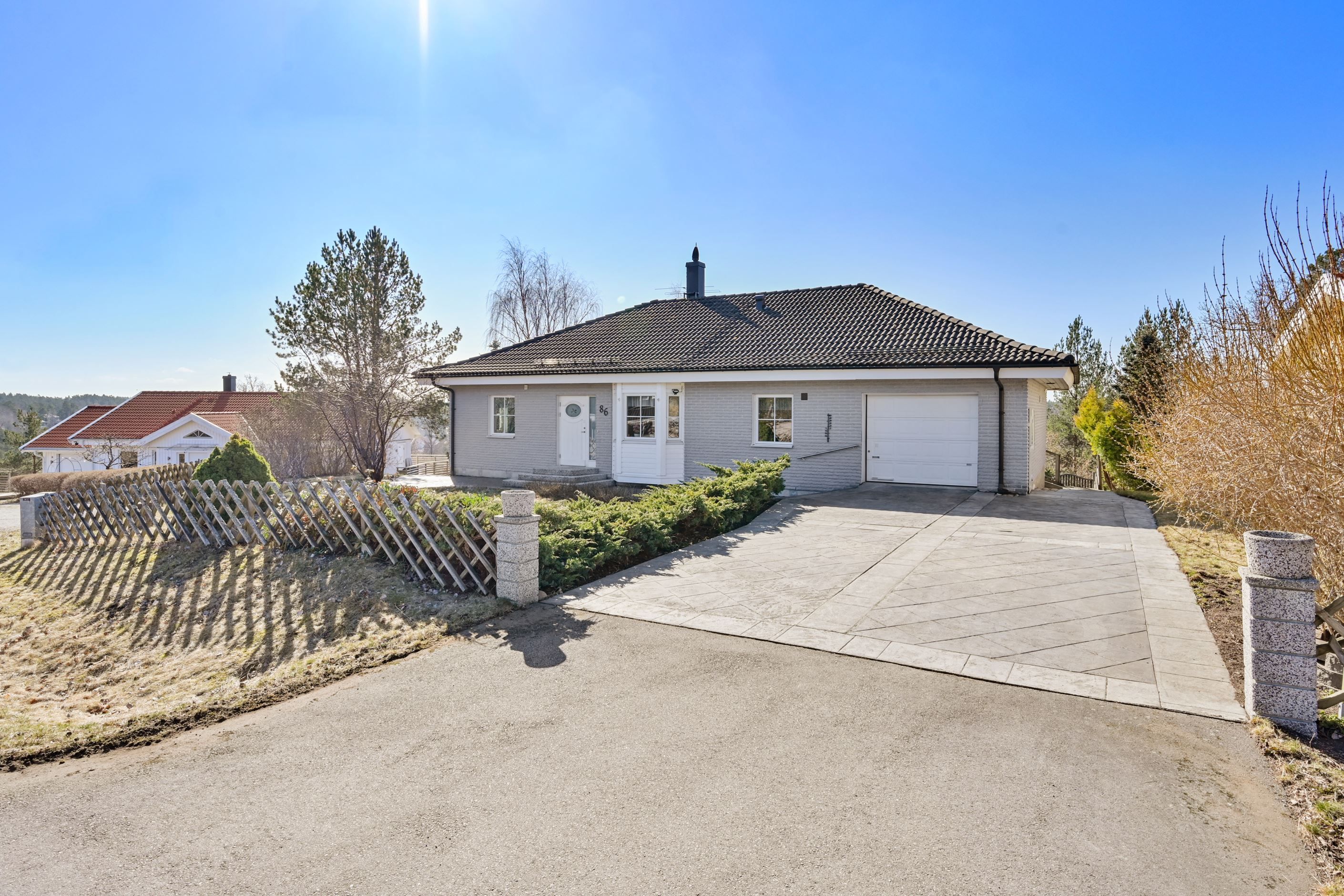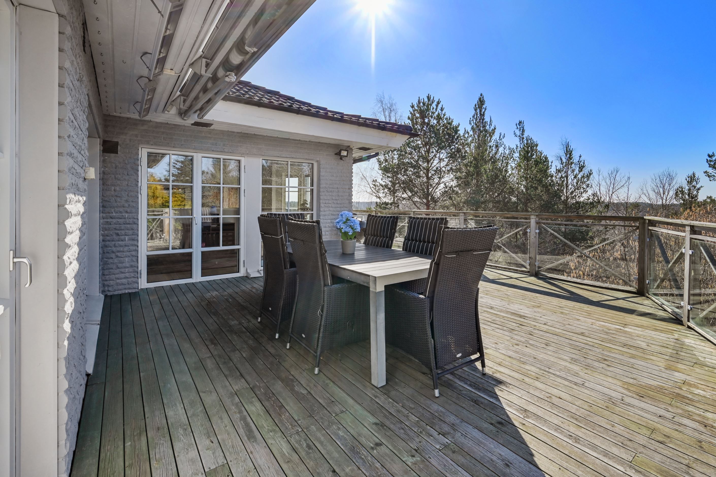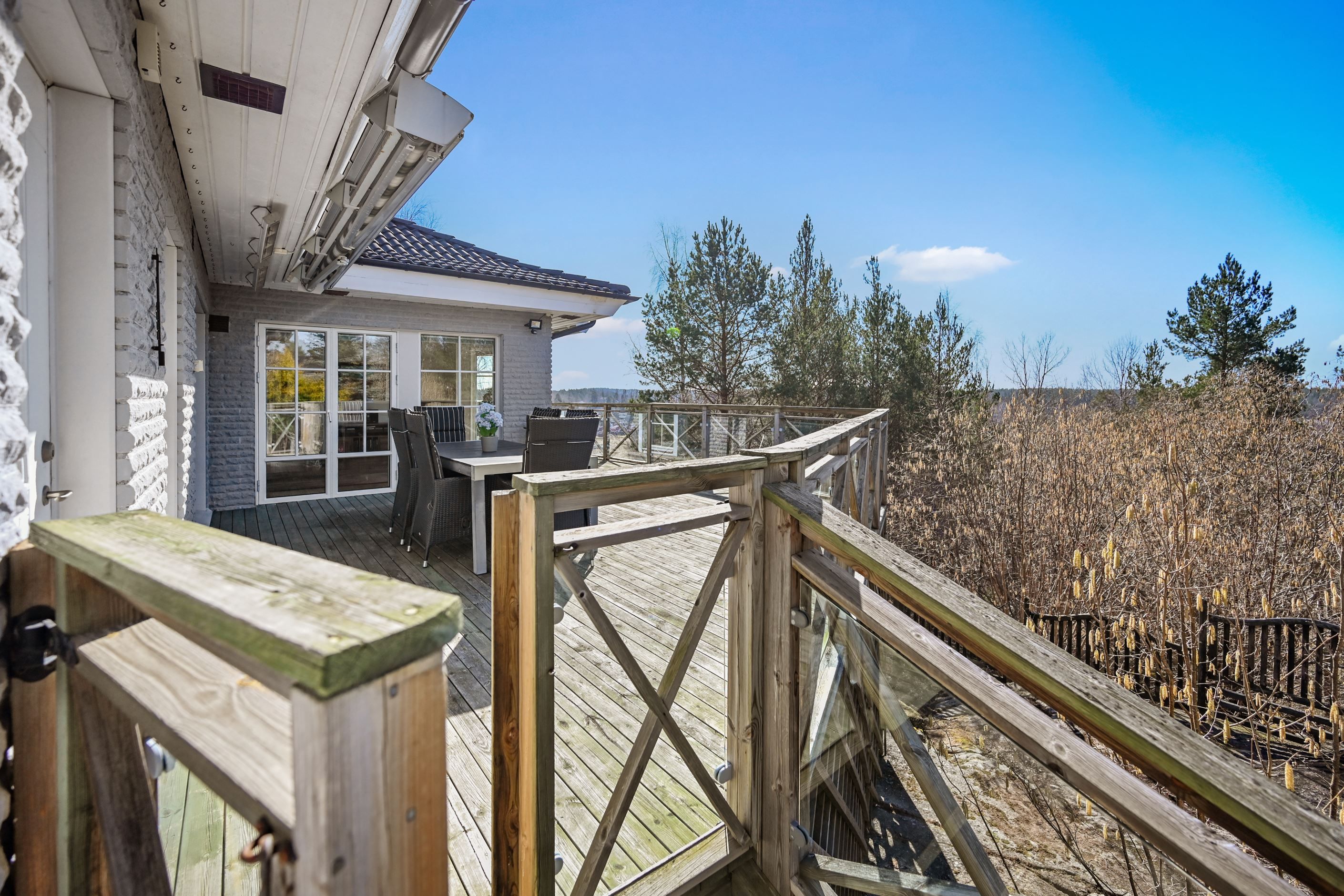 Här erbjuds en mycket tilltalande, arkitektritad enplansvilla med ett av områdets mest eftertraktade lägen. Högt och fritt placerad på en lugn återvändsgata, med en fin utsikt och ett insynsskyddat läge som skapar en privat och rofylld atmosfär. Den generösa, trädäckade terrassen i sydvästläge löper längs huset och bjuder på sol från förmiddag till kväll – en naturlig samlingsplats under årets varmare månader, lika väl lämpad för lugna stunder som för umgänge med familj och vänner. Trädgårdstomten är välskött och varierad, med en fin kombination av plan gräsyta och mer naturpräglade inslag som ger karaktär och liv åt omgivningen. På tomten finns även ett rymligt, isolerat garage samt en stenlagd uppfart med plats för flera bilar. För den båtintresserade finns dessutom möjlighet att separat förvärva en båtplats (klass 3) i Skärgårdsstads marina, endast några minuter bort.