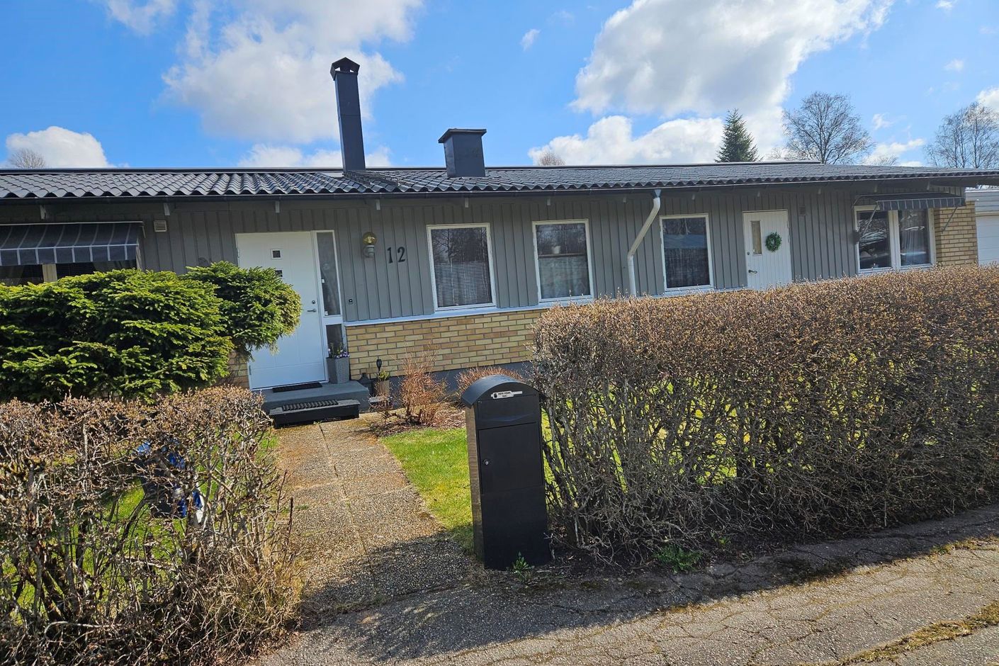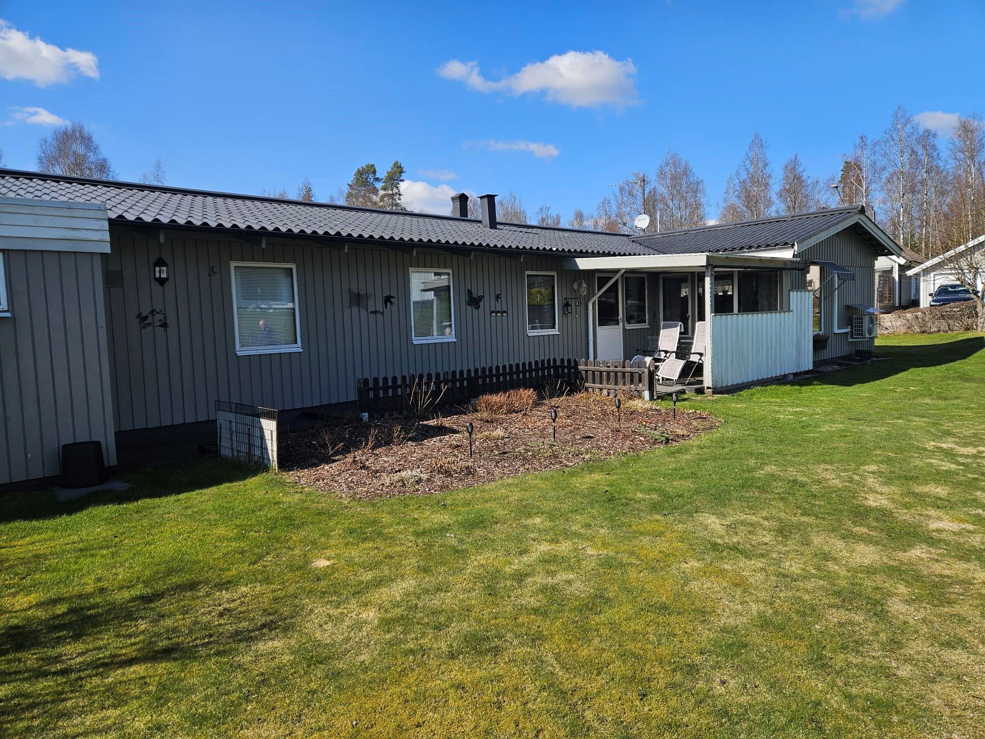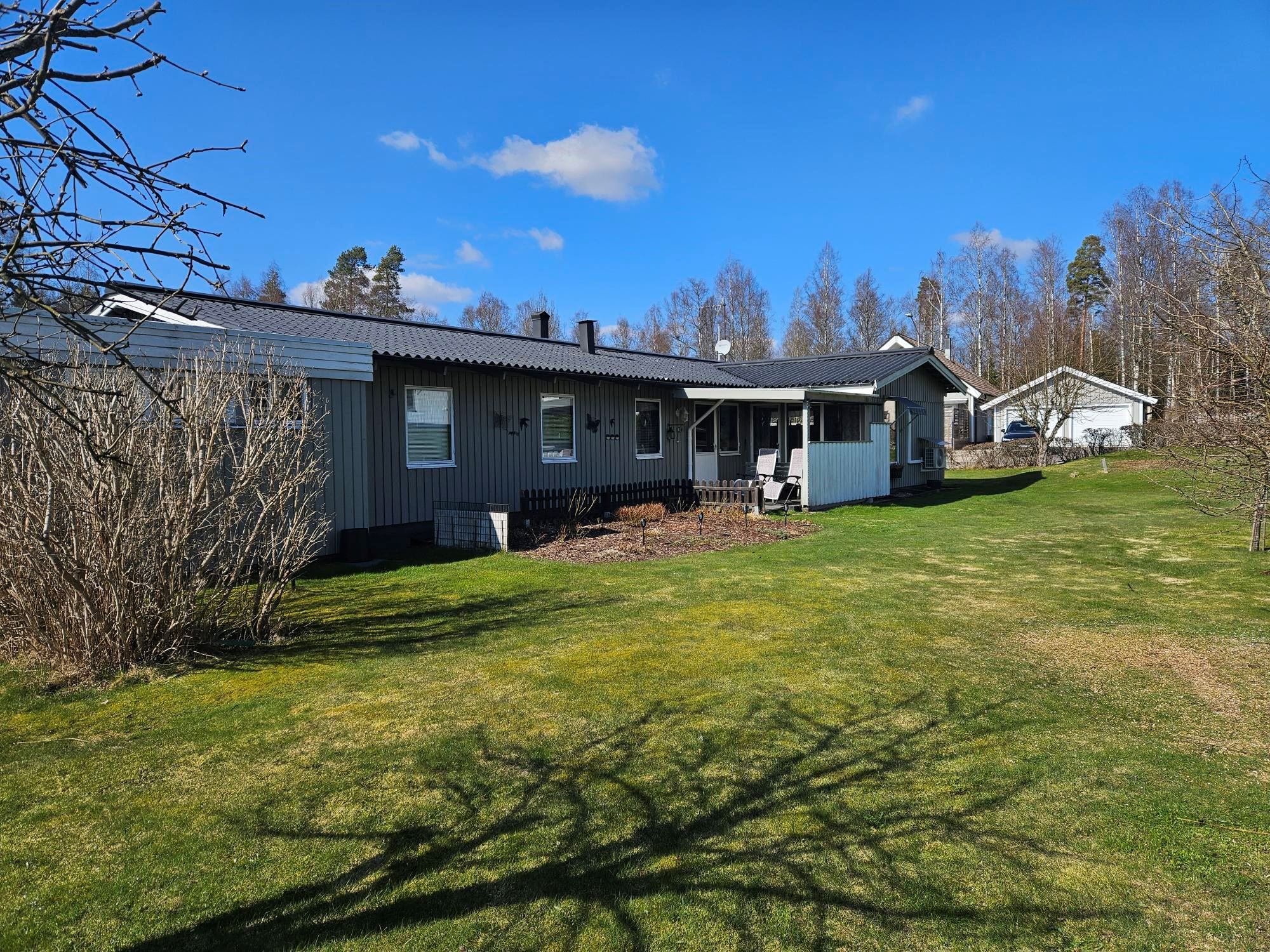 Oxelgatan 12 beläget på hörntomt, lättskött trädgård uteplats på baksidan.