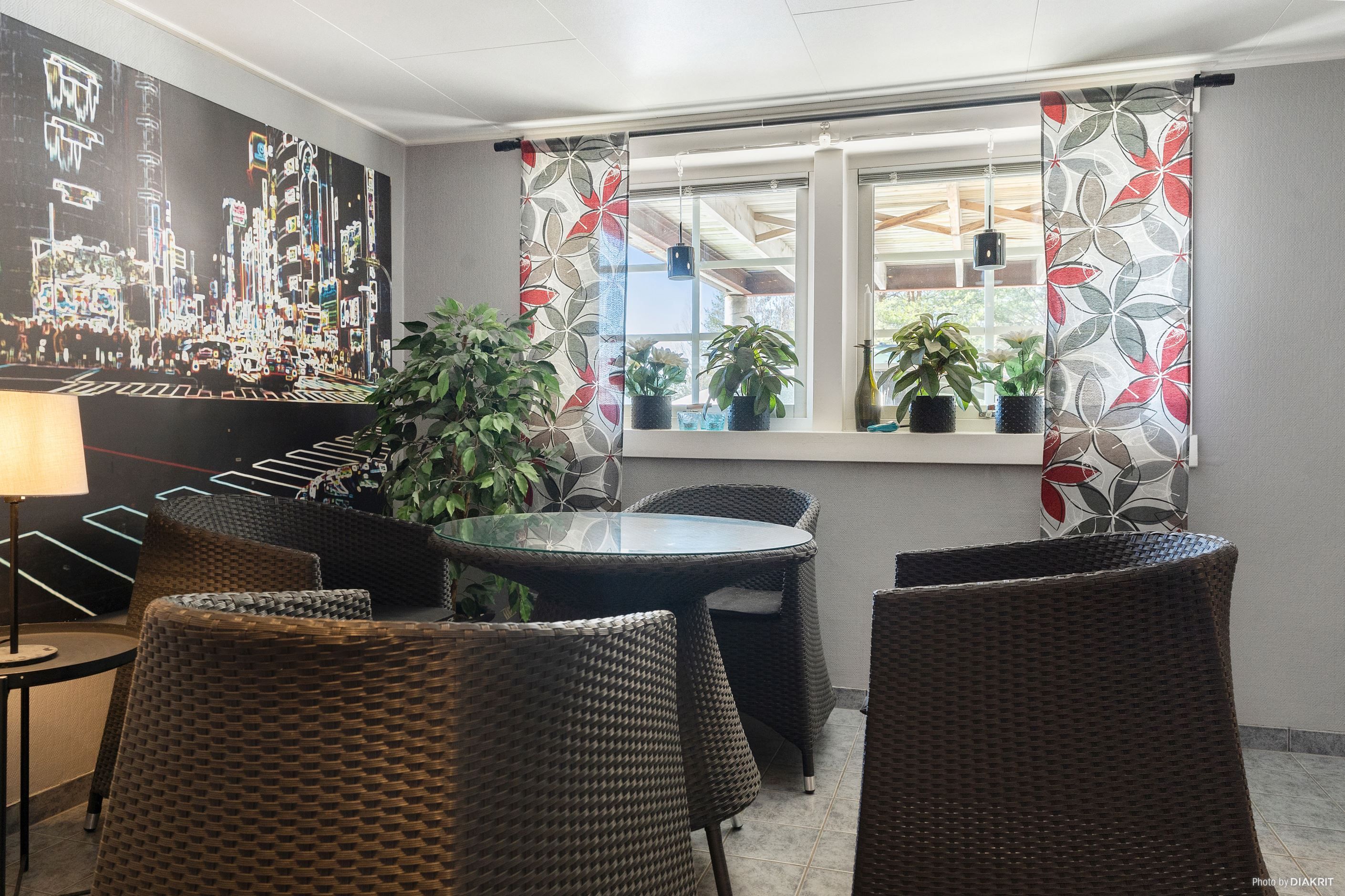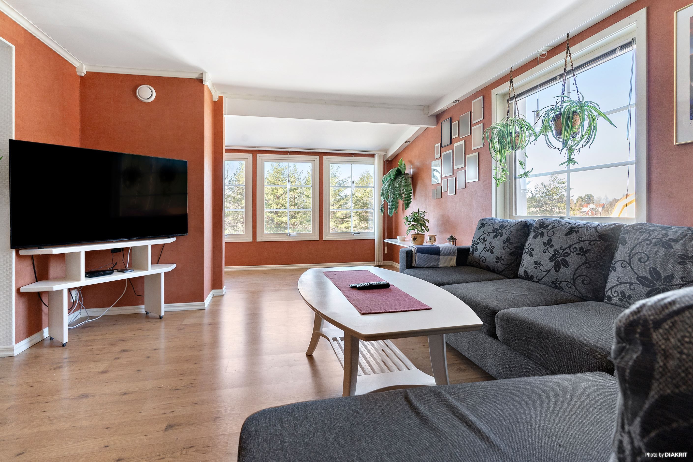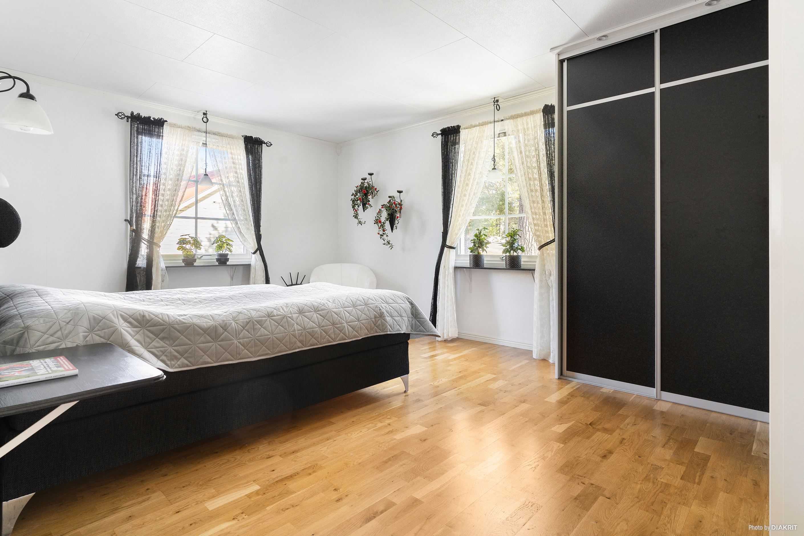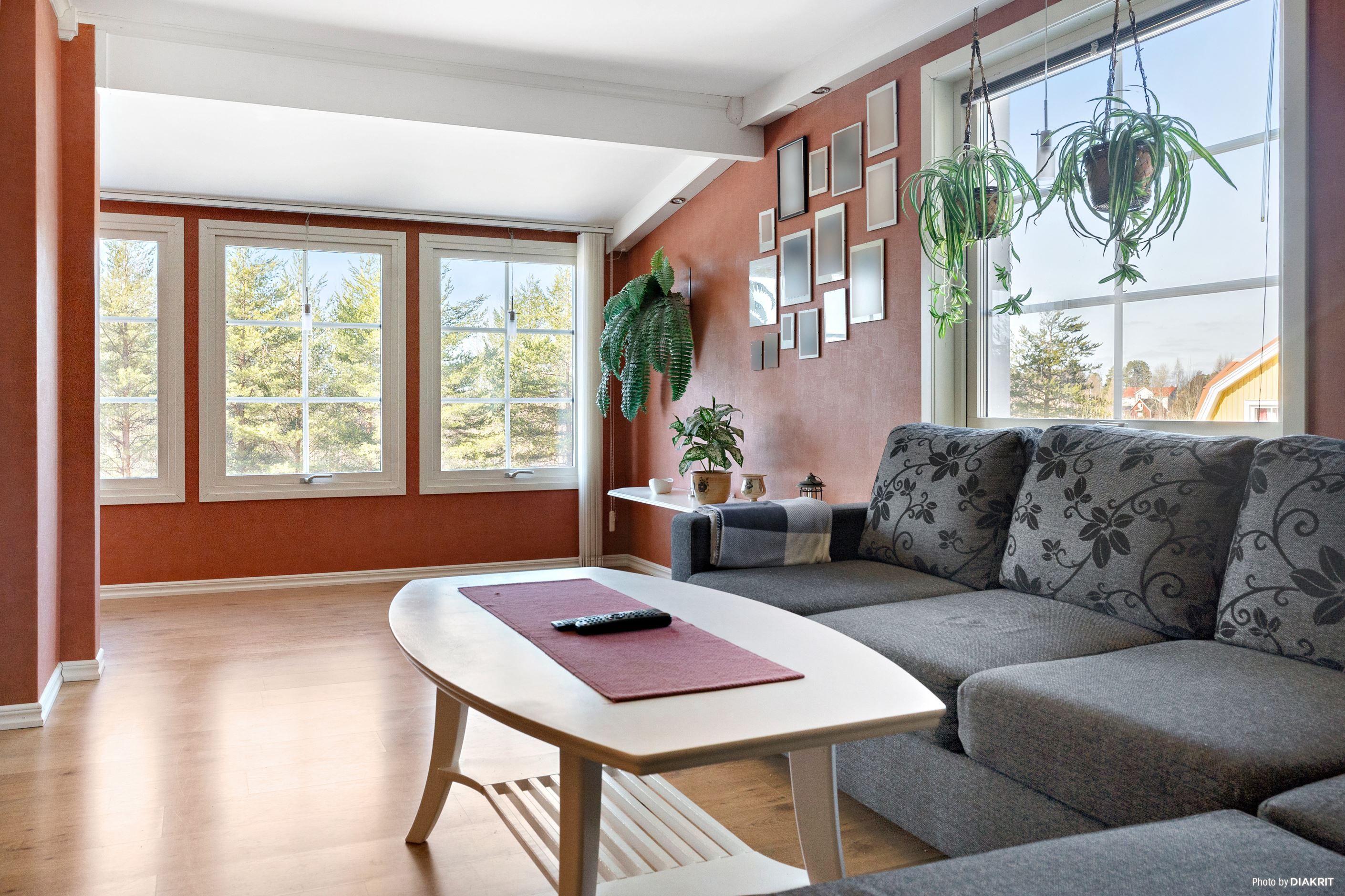 På övre plan ligger vardagsrummet som har fönster i två riktningar vilka bidrar med fina ljusinsläpp. Intill ligger även sovrum 2, som är rymligt och har två kattvindor med förvaringsutrymme.