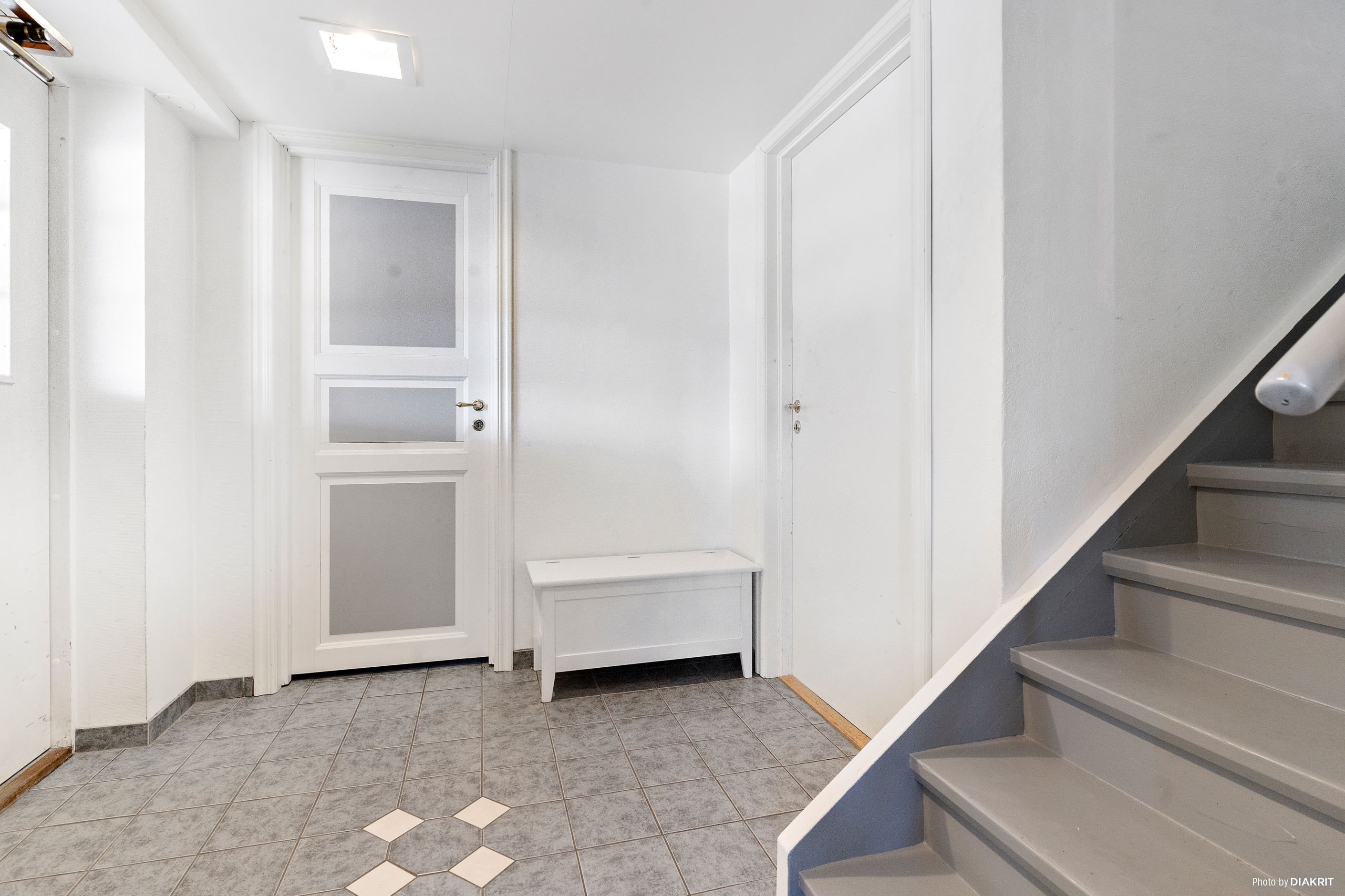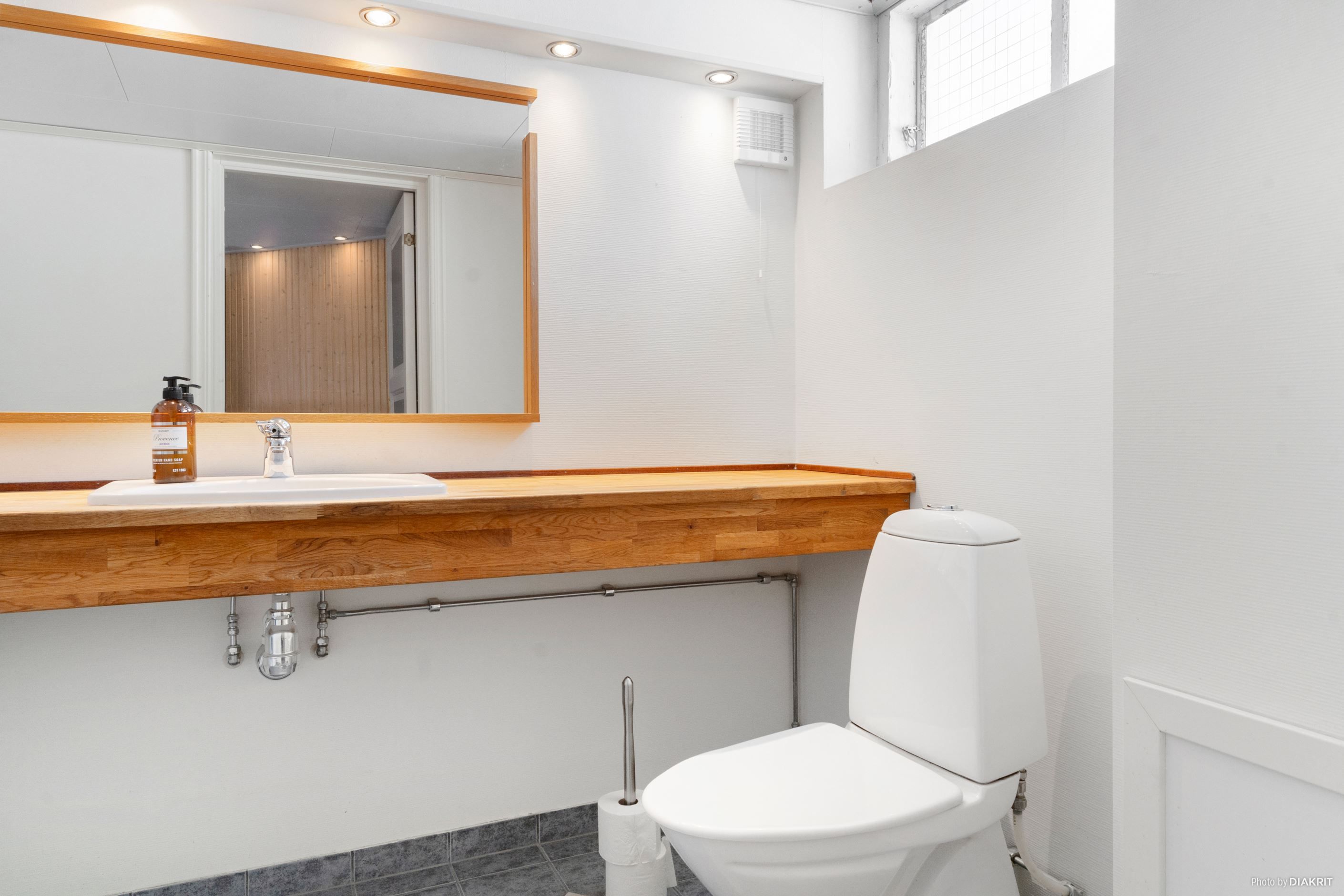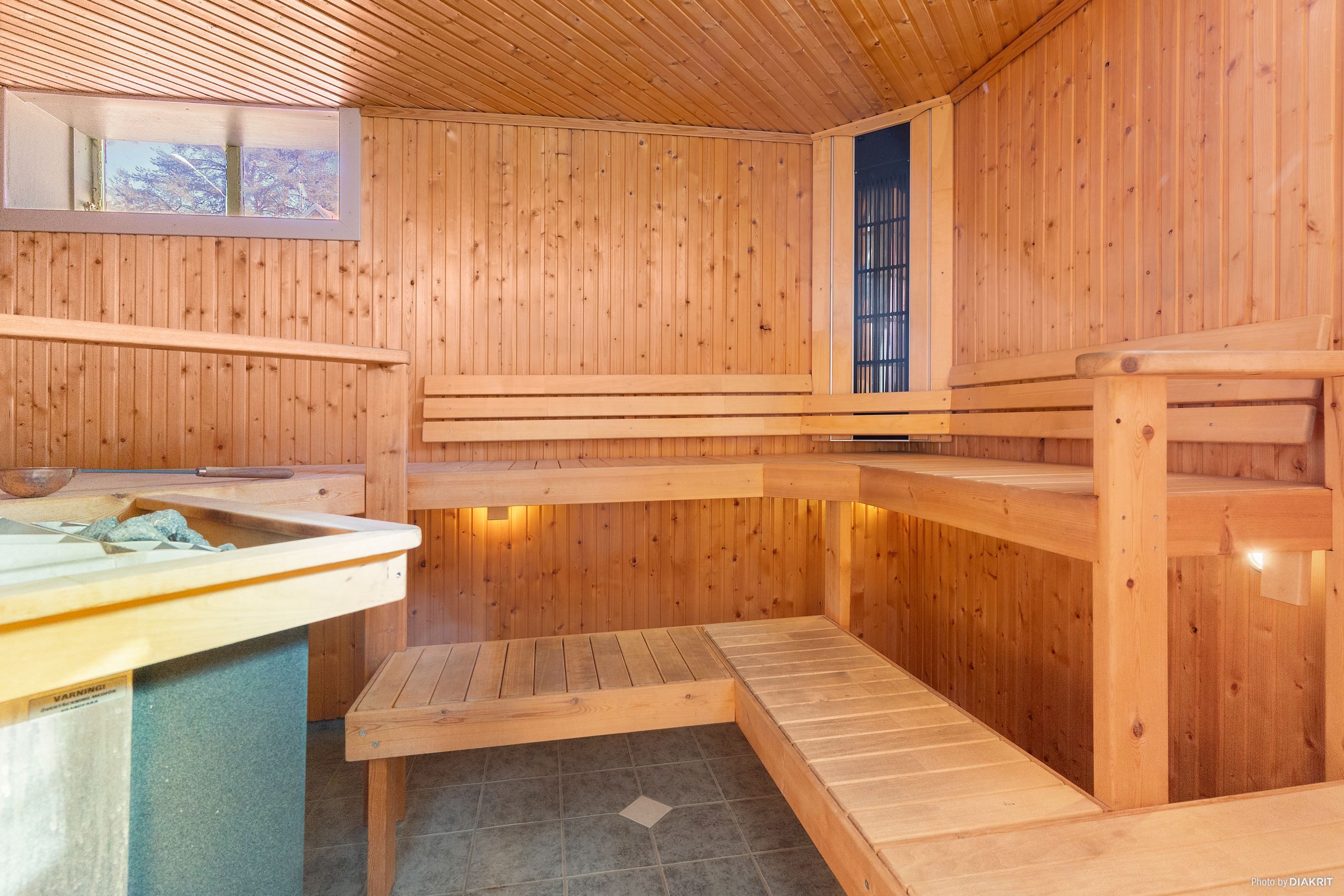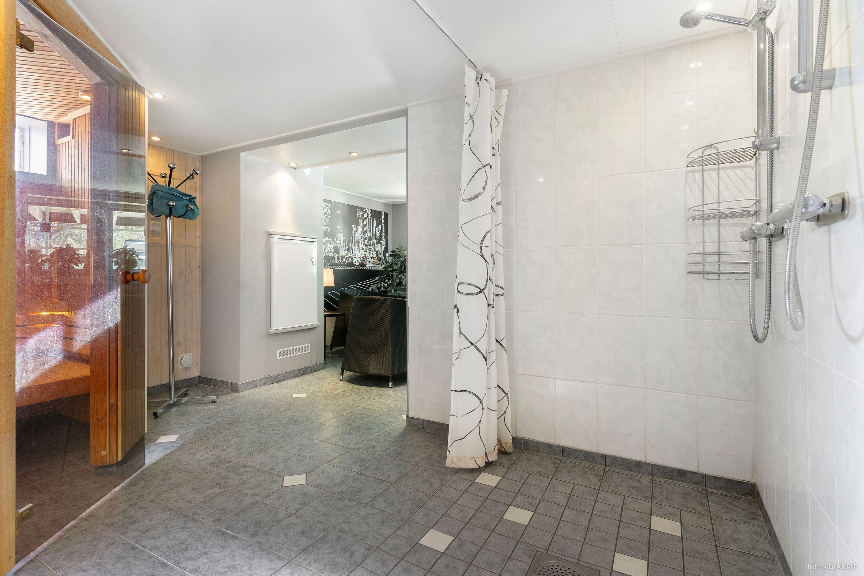 I nedre plan finns en groventré, en tvättstuga, verkstad och en avdelning med relax, bastu och dusch. Relaxen har ett klinkergolv som sträcker sig genom både bastu och dusch-del. I relaxen finns även en mindre kyl, perfekt för att förvara svalkande dryck! Bastun är stor och har gott om sittplatser och precis utanför finner man dubbla duschar. I anslutning ligger även en WC.