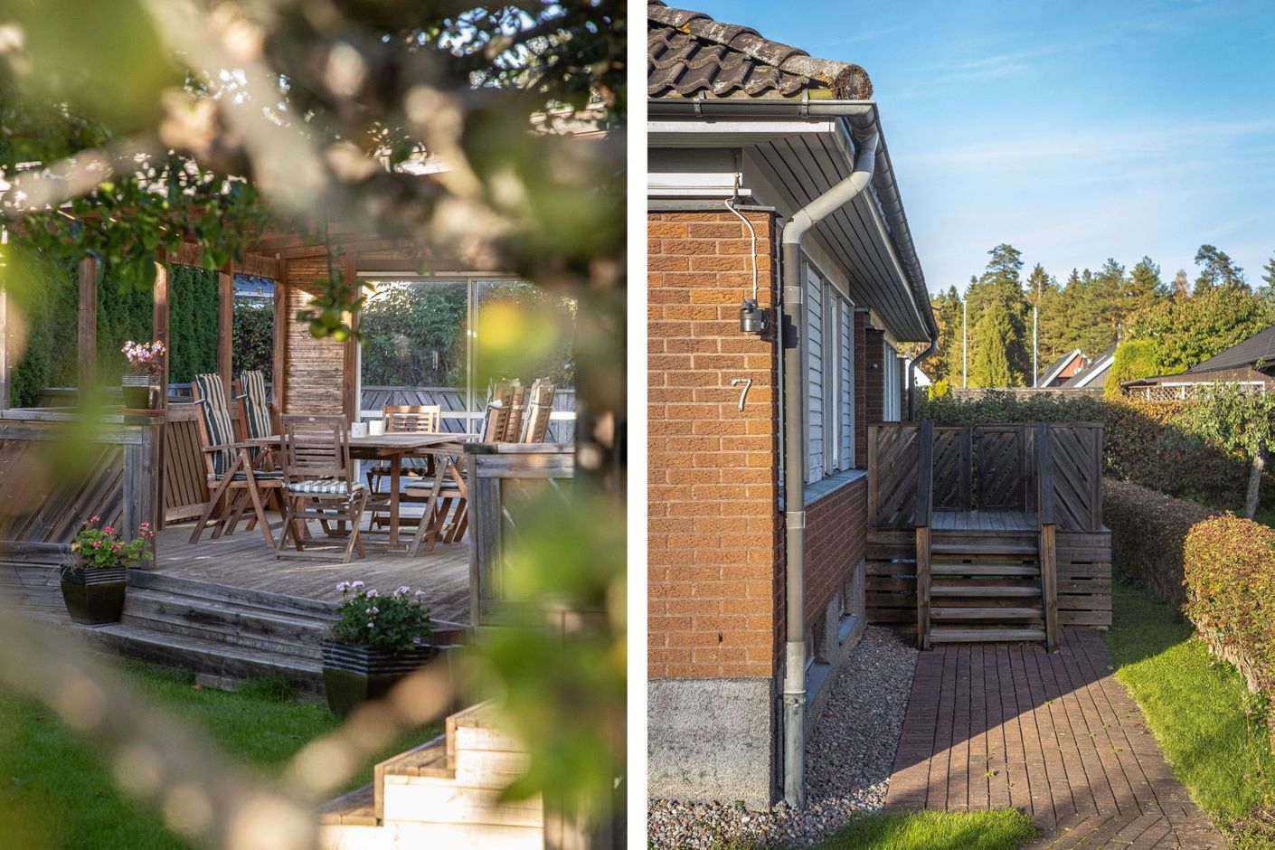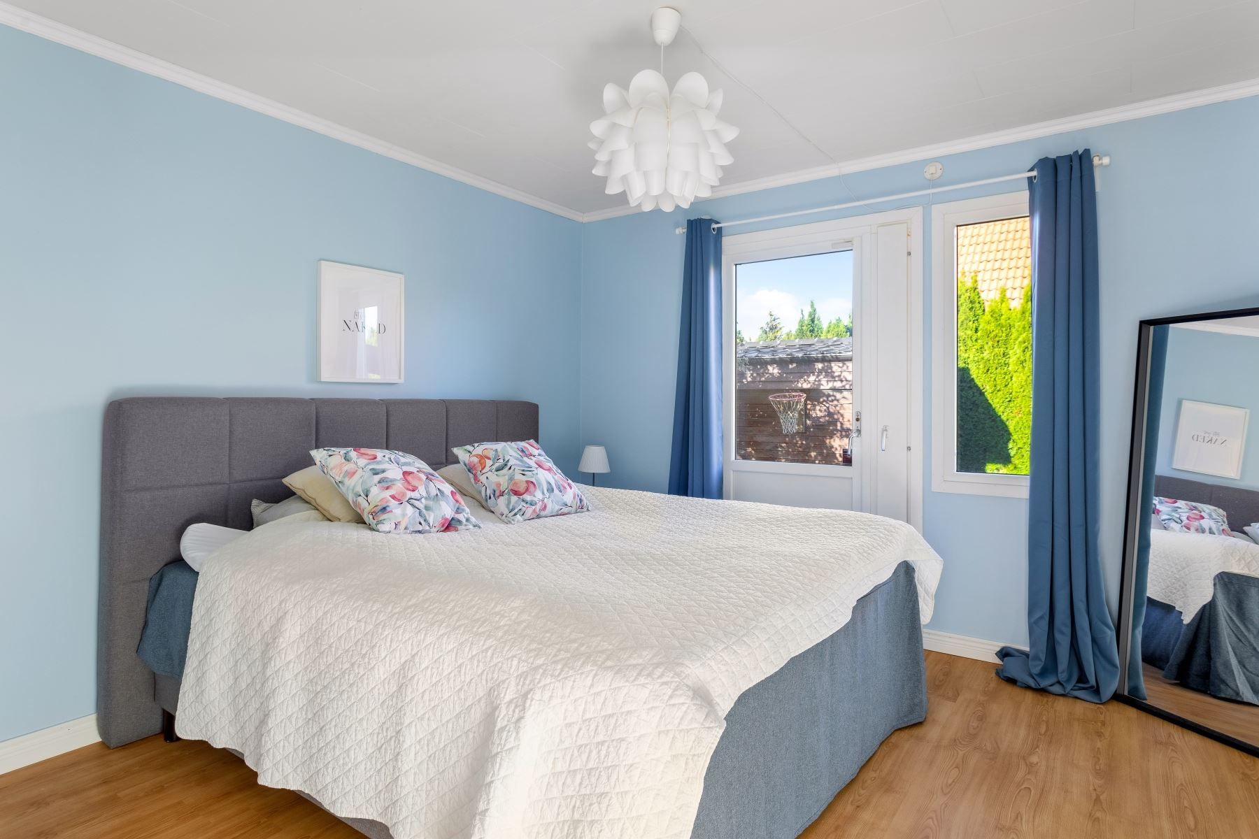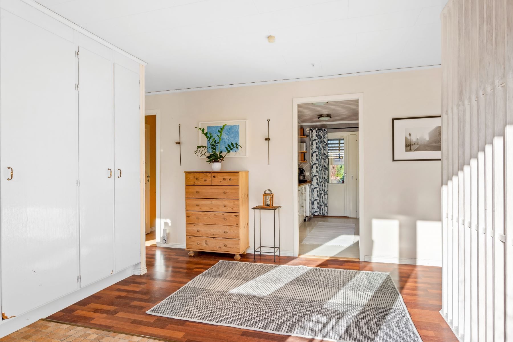 Huset erbjuder tre sovrum på entréplan, med möjlighet att enkelt skapa ett fjärde vid behov. Alla fönster och altandörrar är bytta, vilket ger både energivärden och ett modernt intryck.