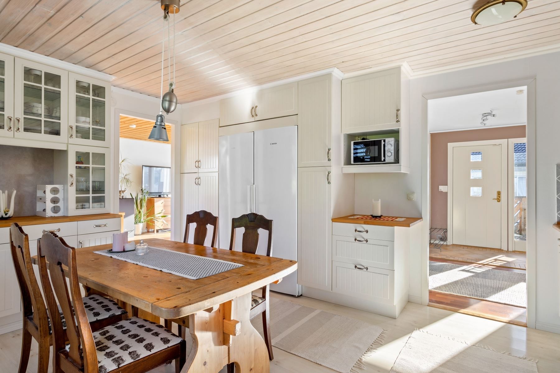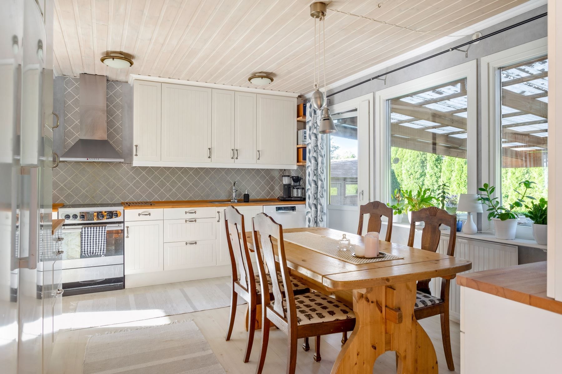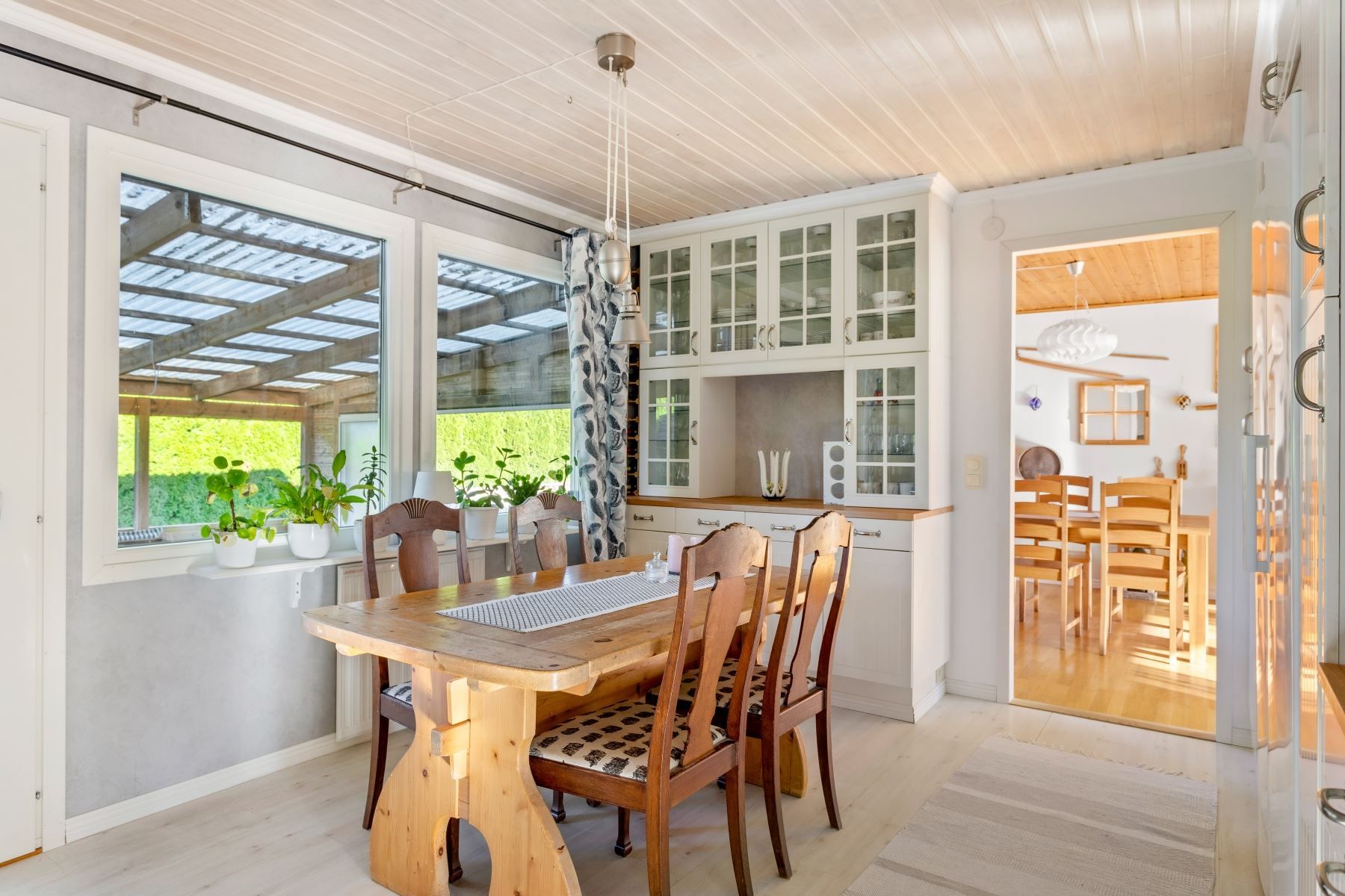 Huset erbjuder tre sovrum på entréplan, med möjlighet att enkelt skapa ett fjärde vid behov. Alla fönster och altandörrar är bytta, vilket ger både energivärden och ett modernt intryck.
