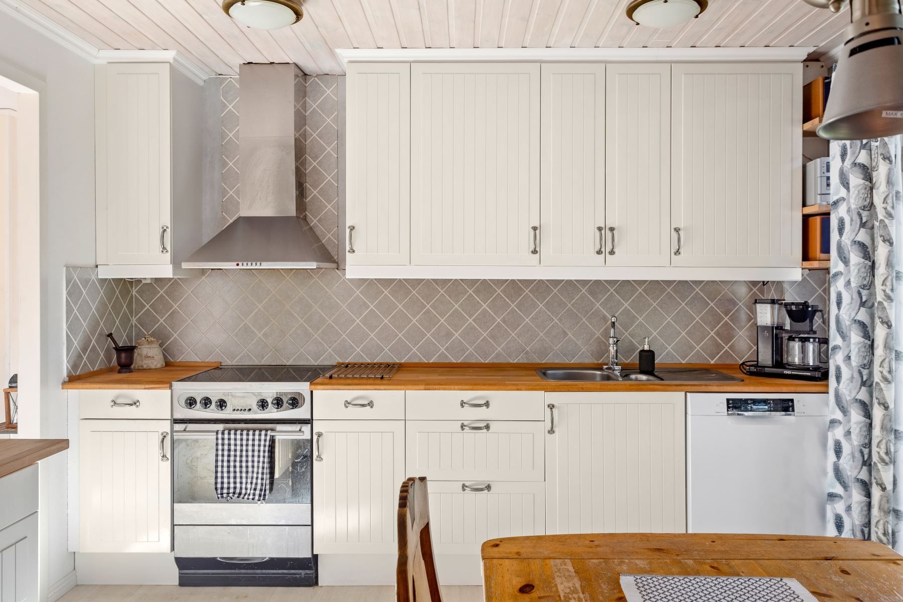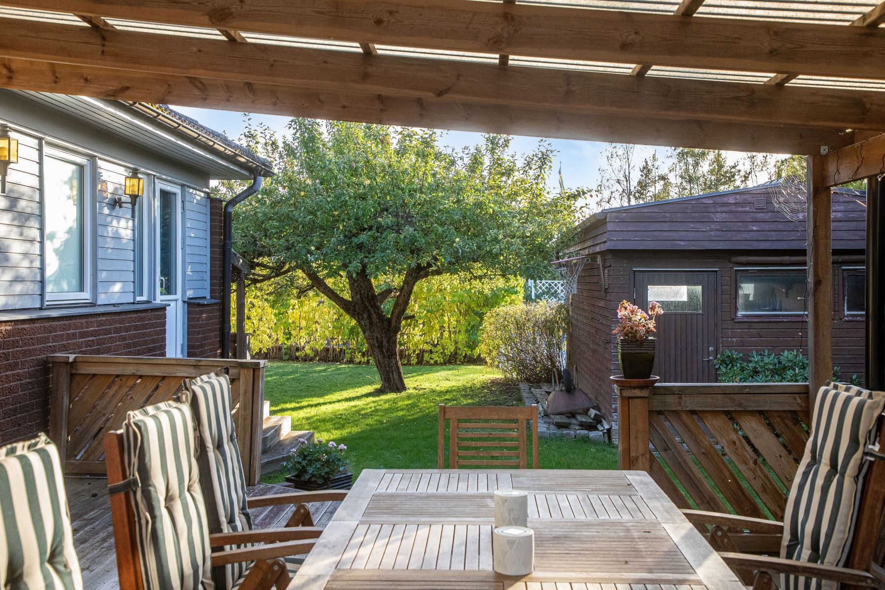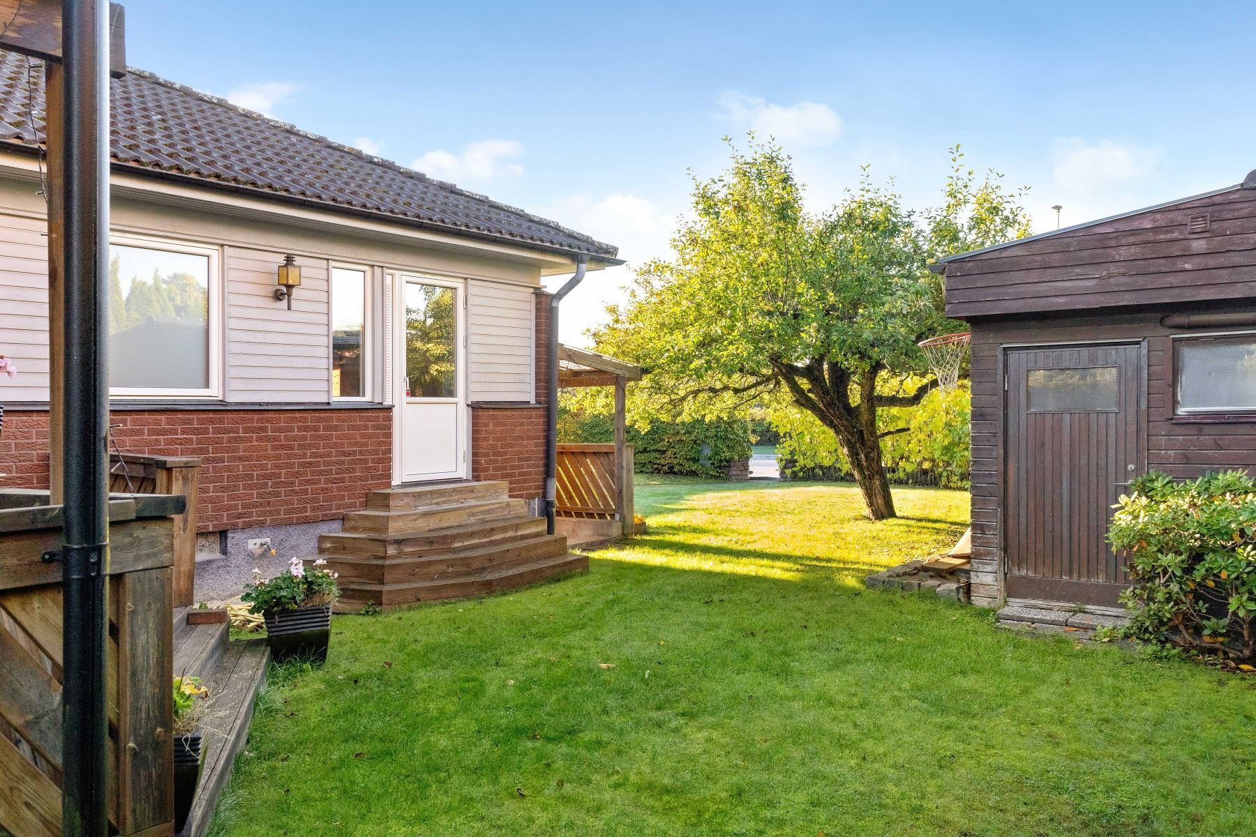 Utanför finns ett garage samt plats för ytterligare två bilar på uppfarten. Tomten är plan, lättskött och insynsskyddad - en idealisk miljö för barnens lek eller avkoppling i solen.