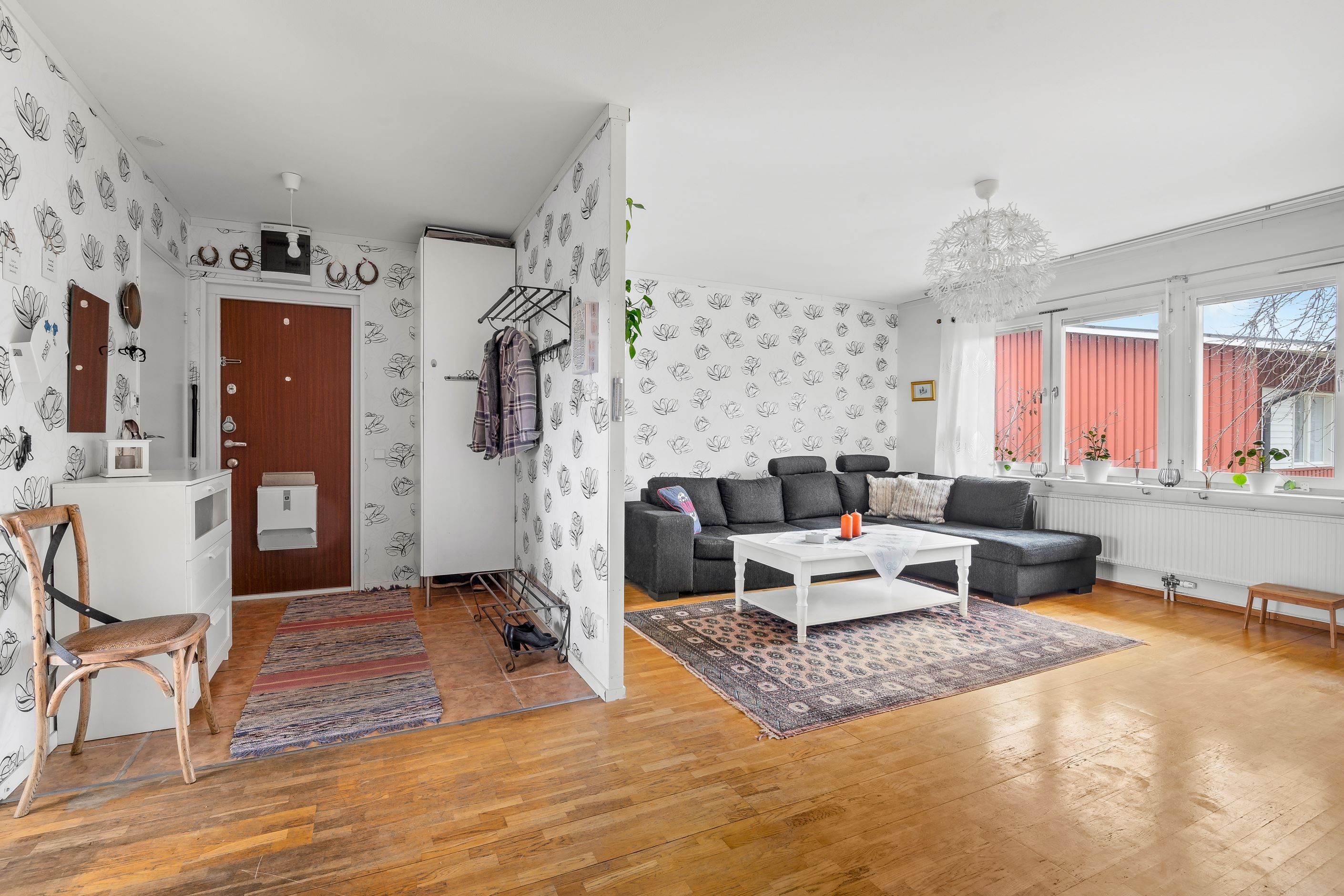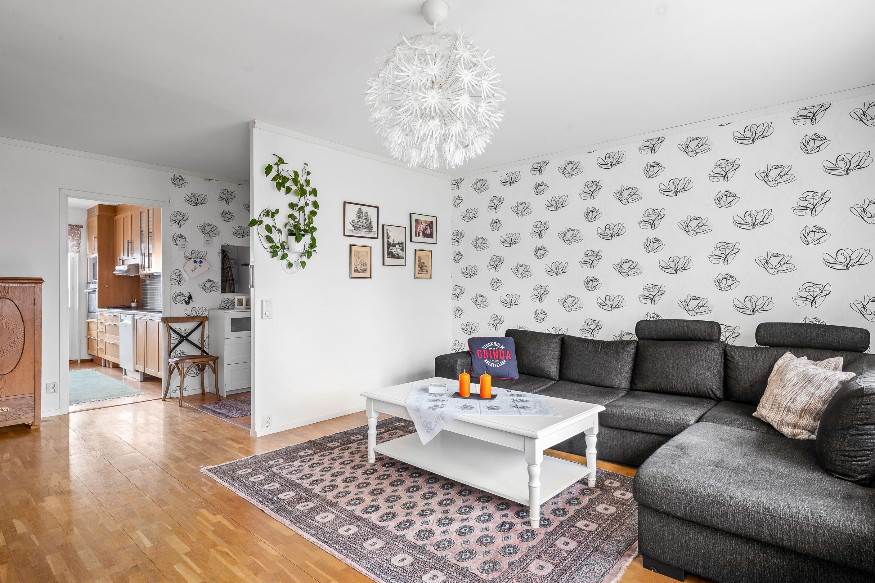 - Vardagsrummet är bostadens givna samlingspunkt. Här kan man möblera efter egna preferenser.