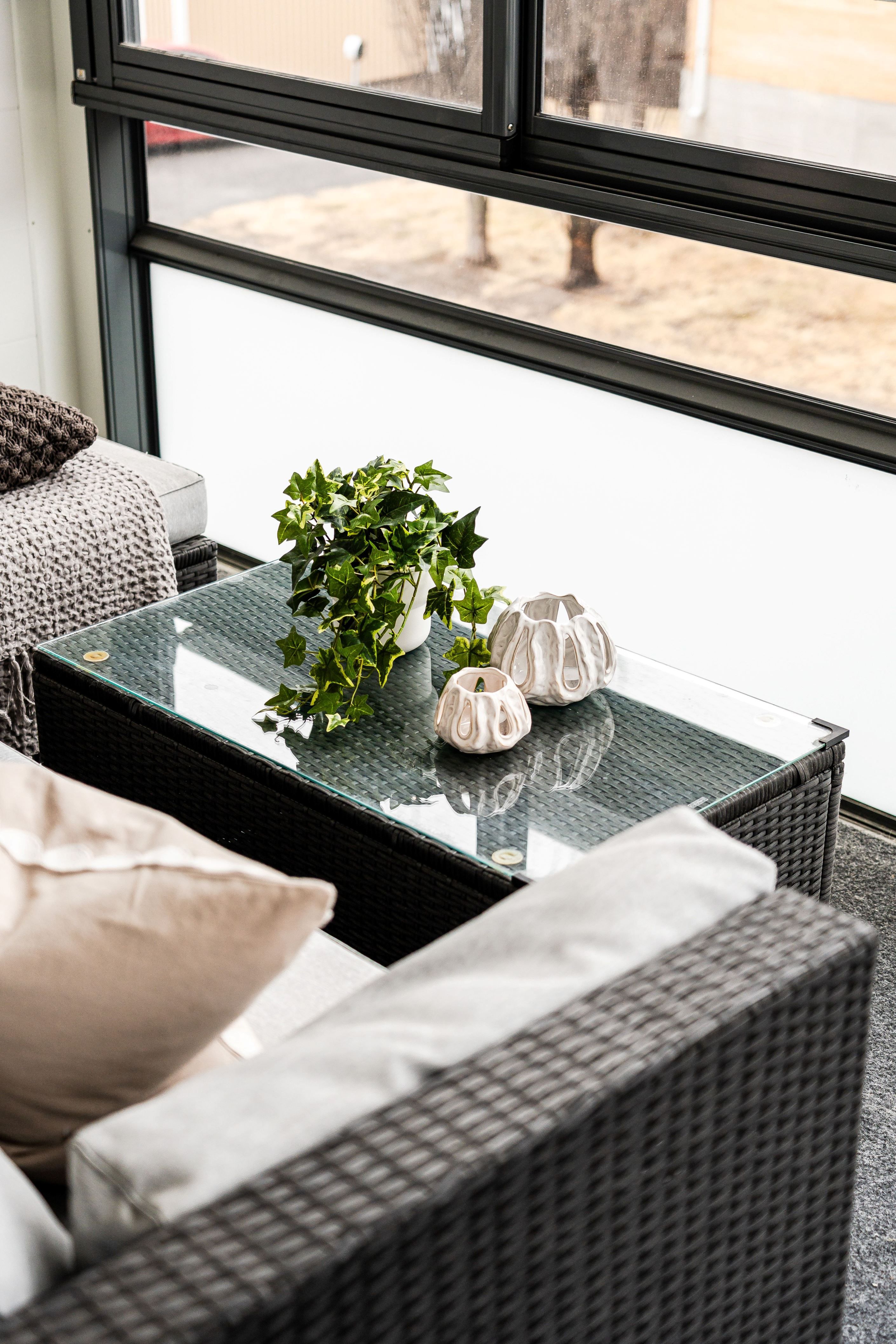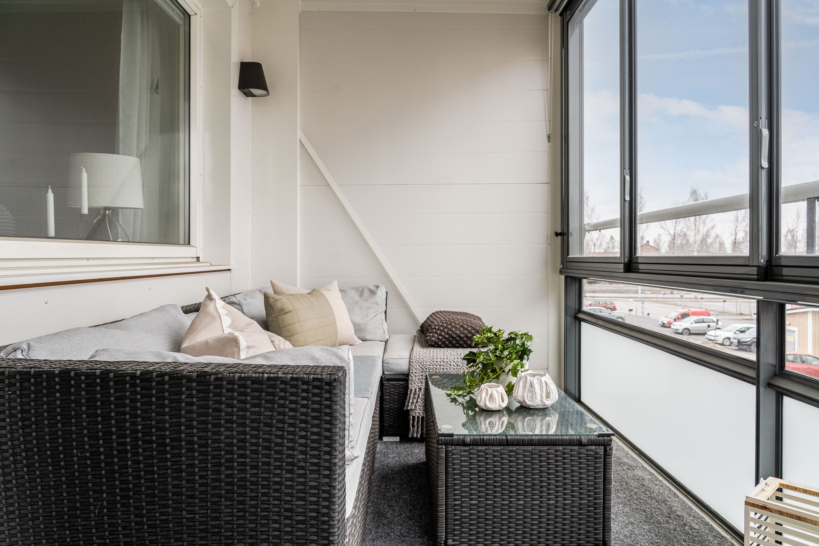 Inglasad balkong.