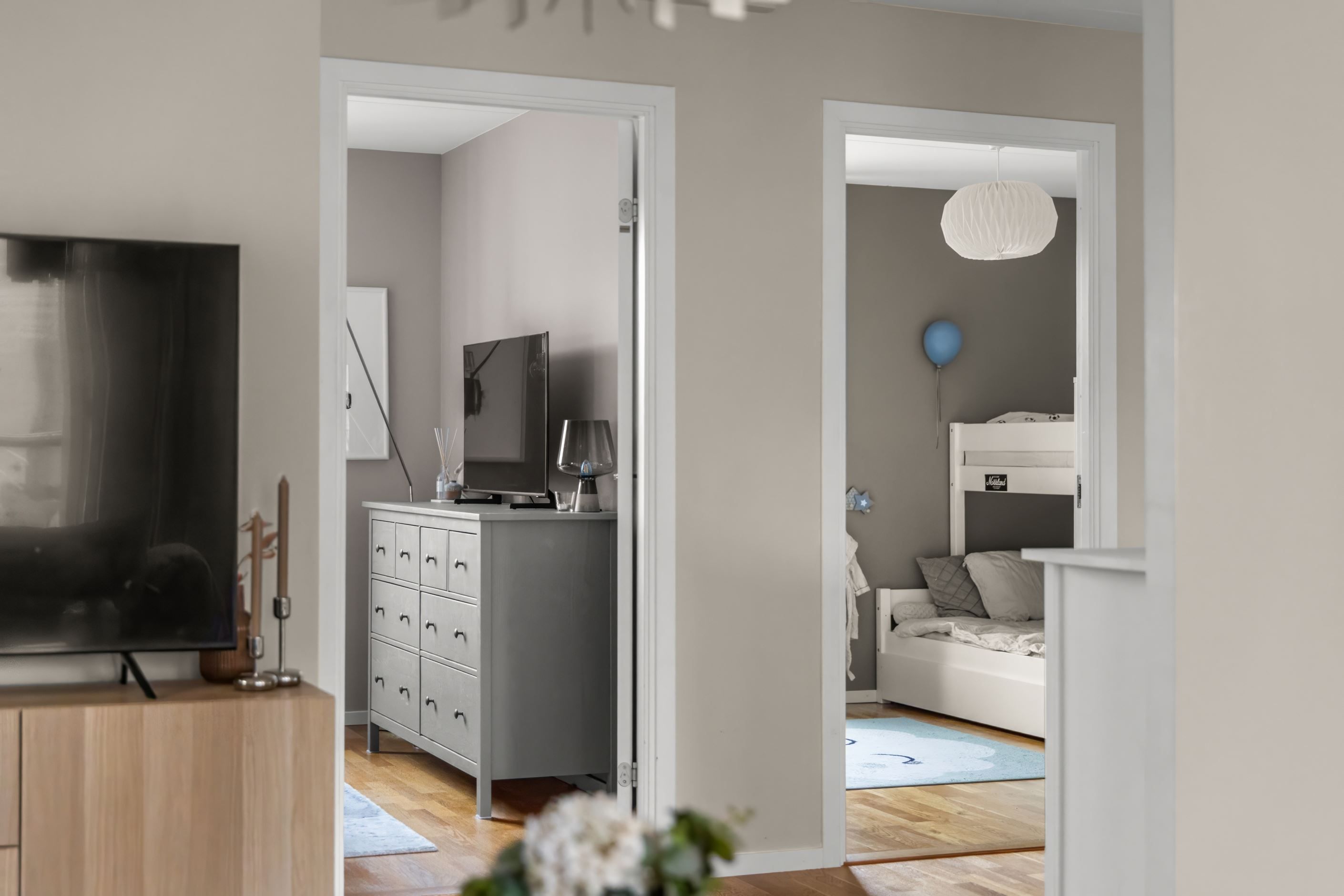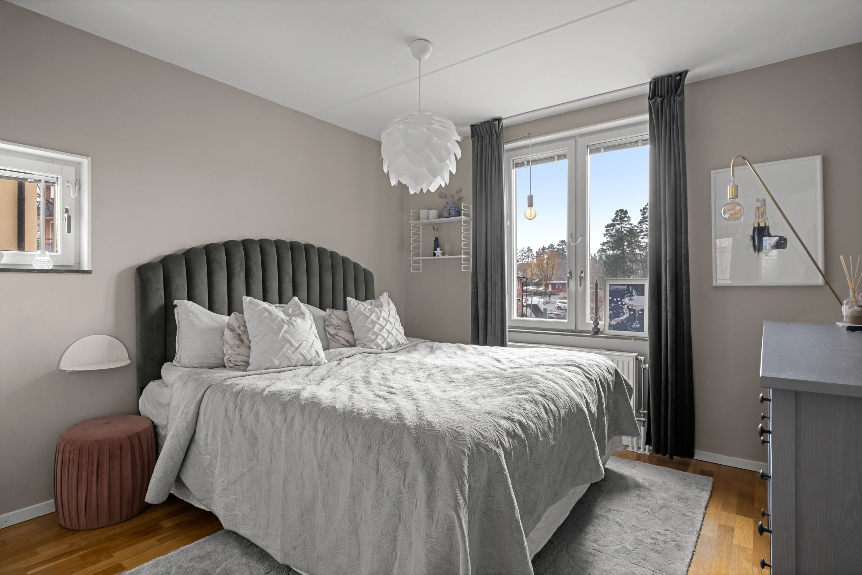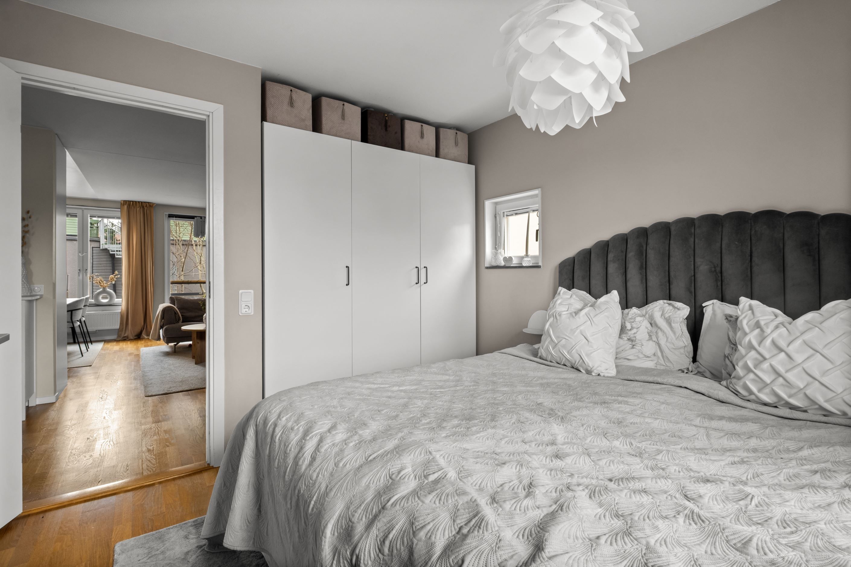 Bostaden erbjuder två rymliga sovrum med bra förvaring i garderober.