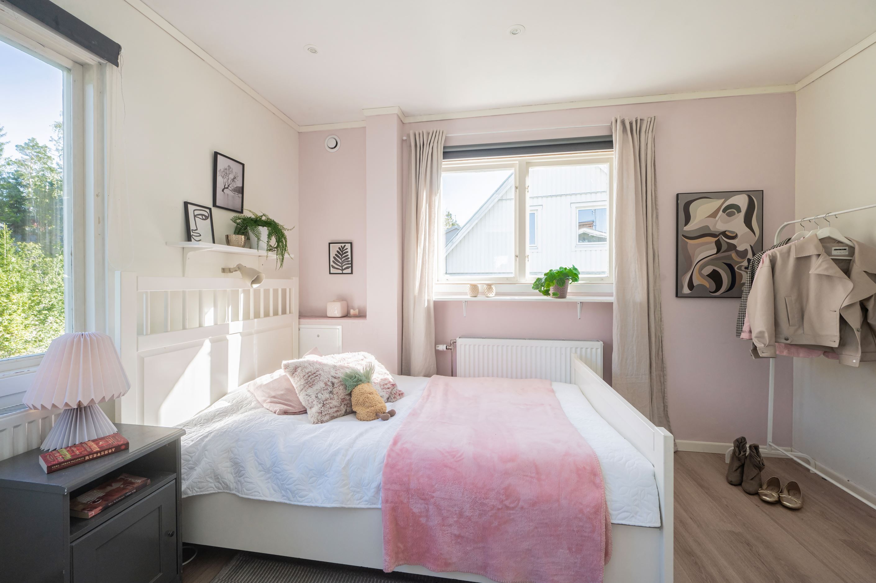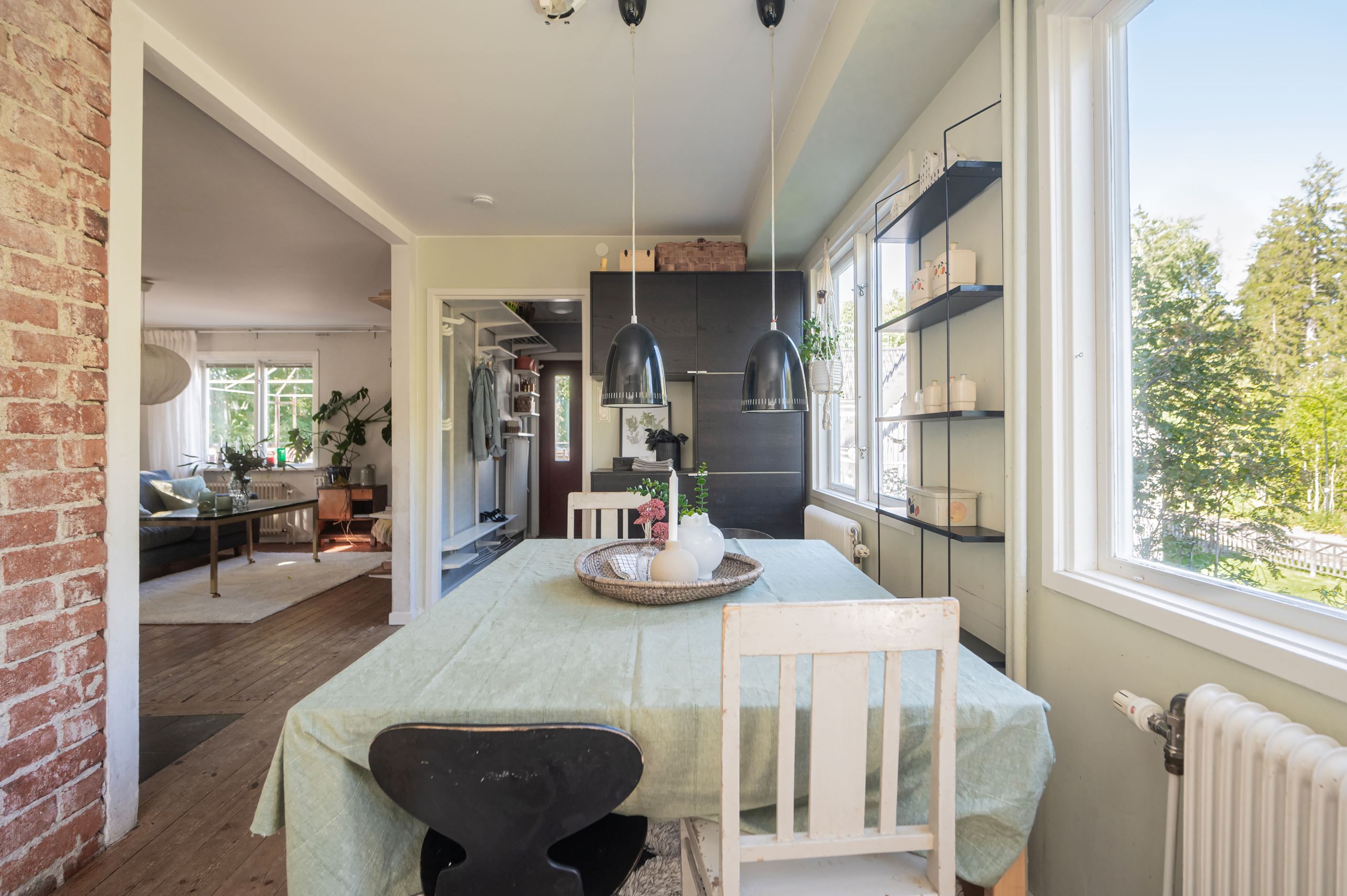 Huset har en välplanerad planlösning med entréplan i öppen och social stil där kök och vardagsrum möts i en härlig kombination med fint ljusinsläpp från stora fönsterpartier. Genomgående fina trägolv. På detta plan finns även ett sovrum. Övre plan rymmer tre sovrum med vackra trägolv och gott om utrymme för hela familjen. Här finns även ett badrum renoverat 2022. Nedre plan erbjuder praktiska ytor med stor tvättstuga och generösa förvaringsmöjligheter. Vattenburen uppvärmning i hela huset via luft-vattenvärmepump.