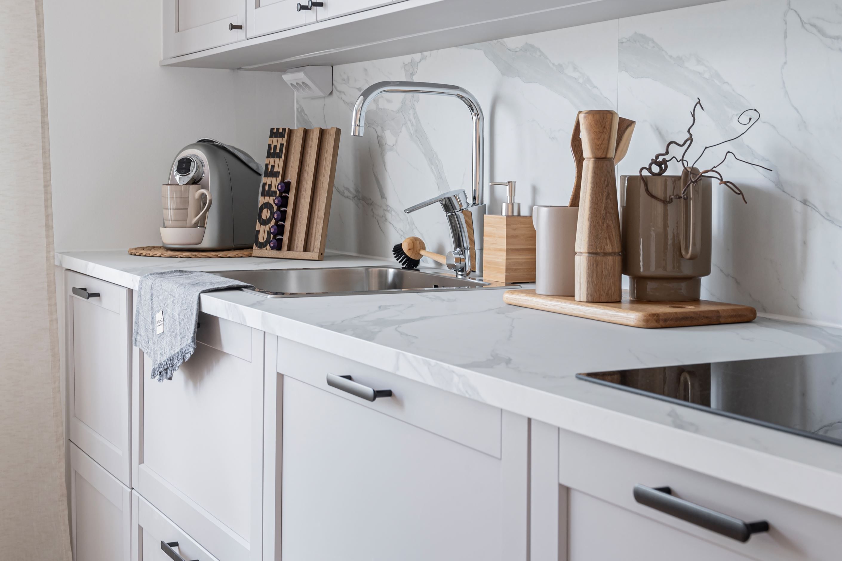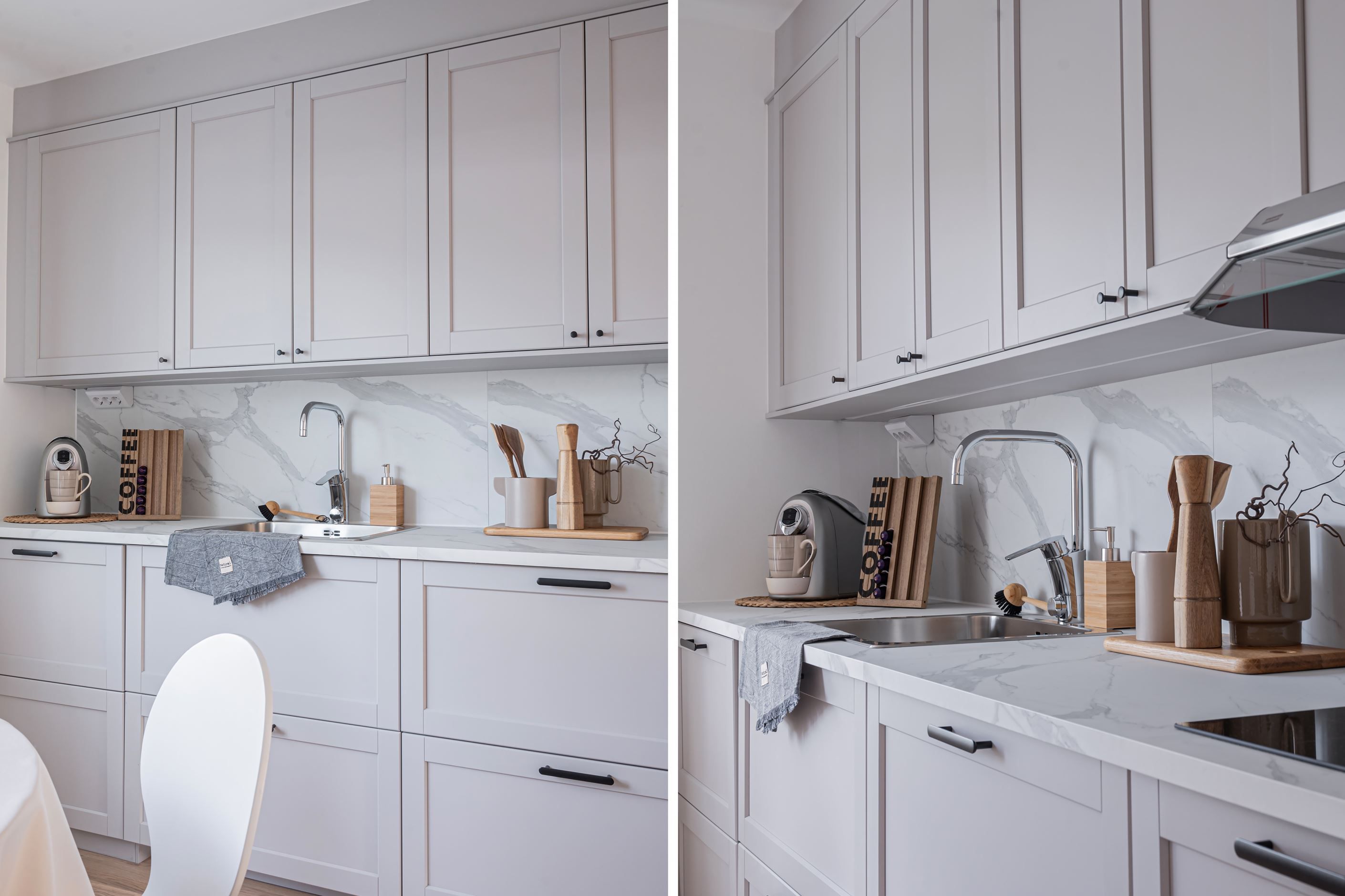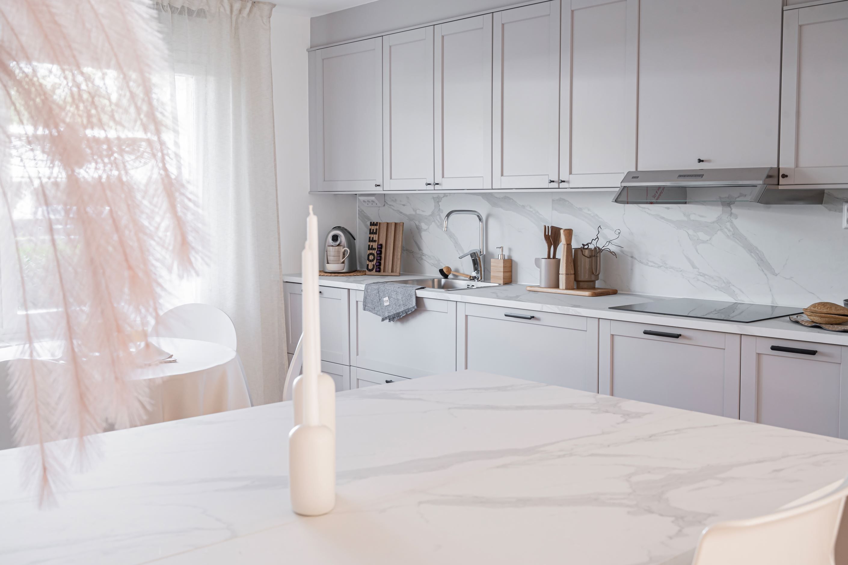 Kök – smakfullt renoverat i stilren skandinavisk design med praktisk köksö, gott om förvaring och en trivsam matplats.