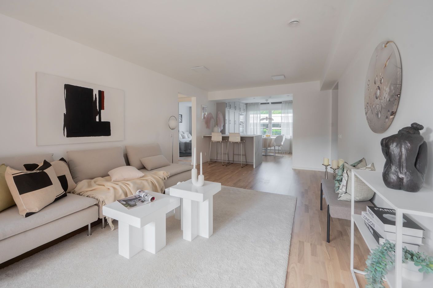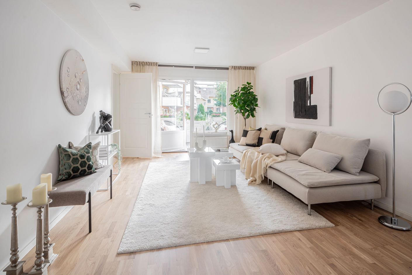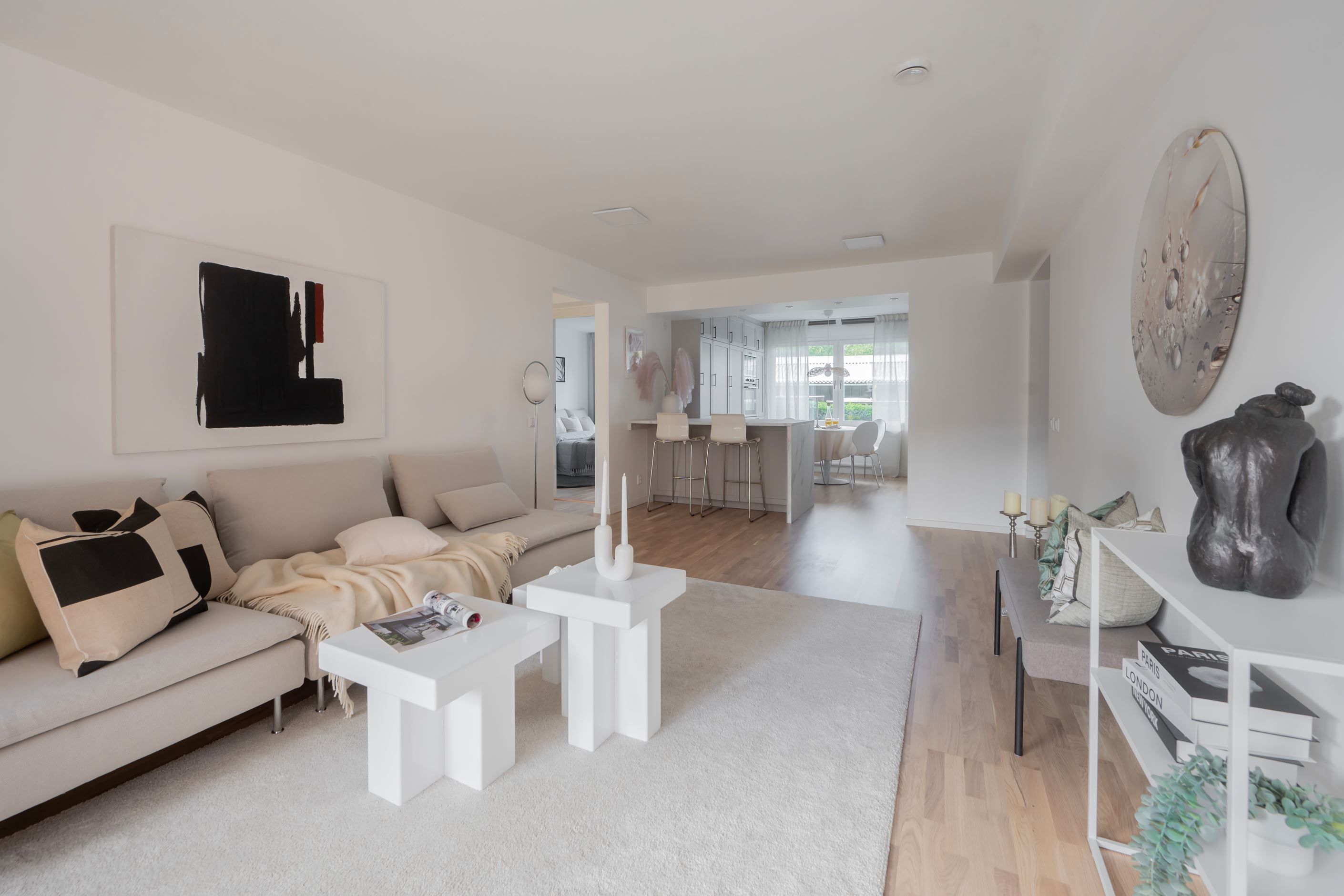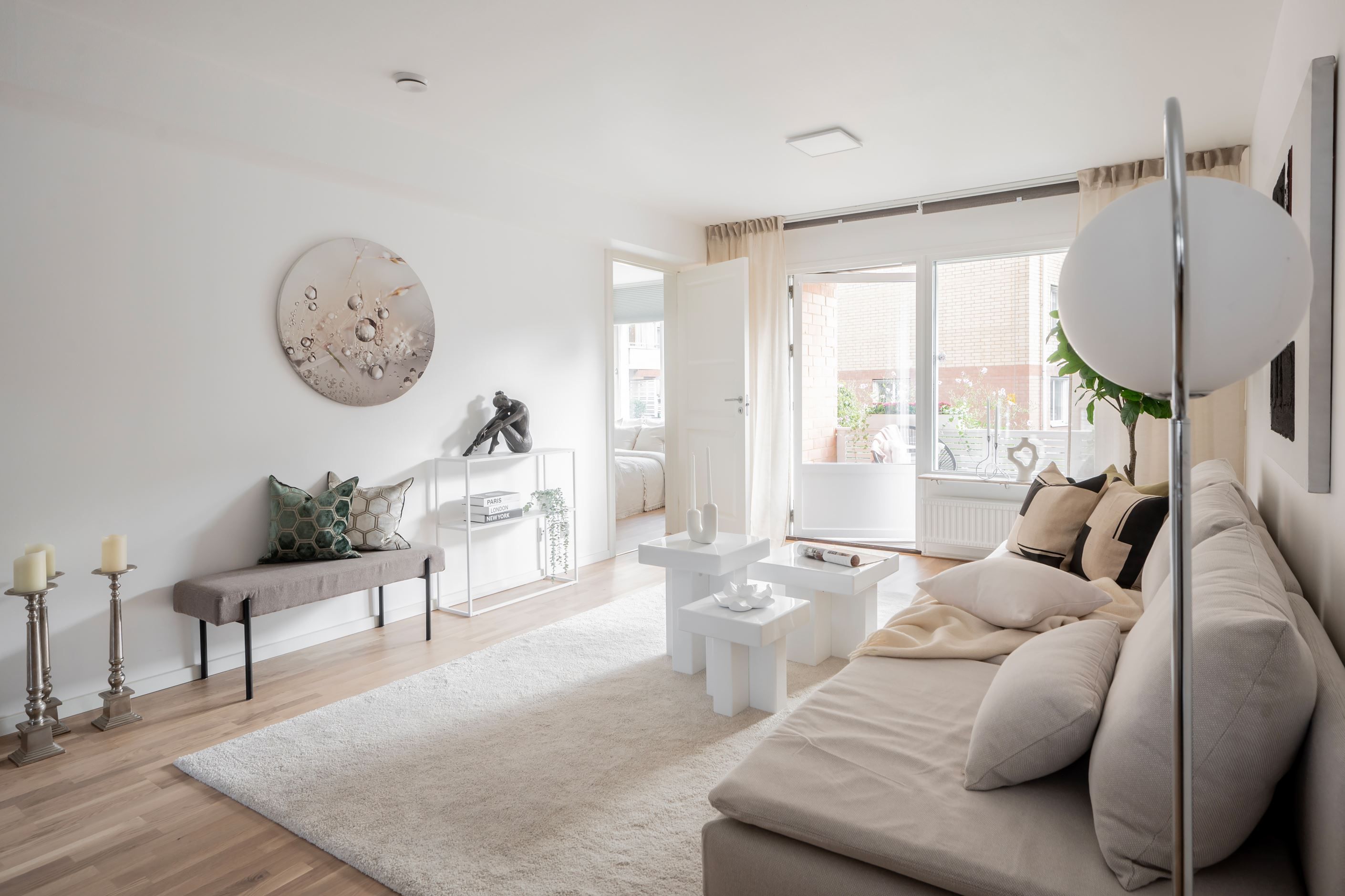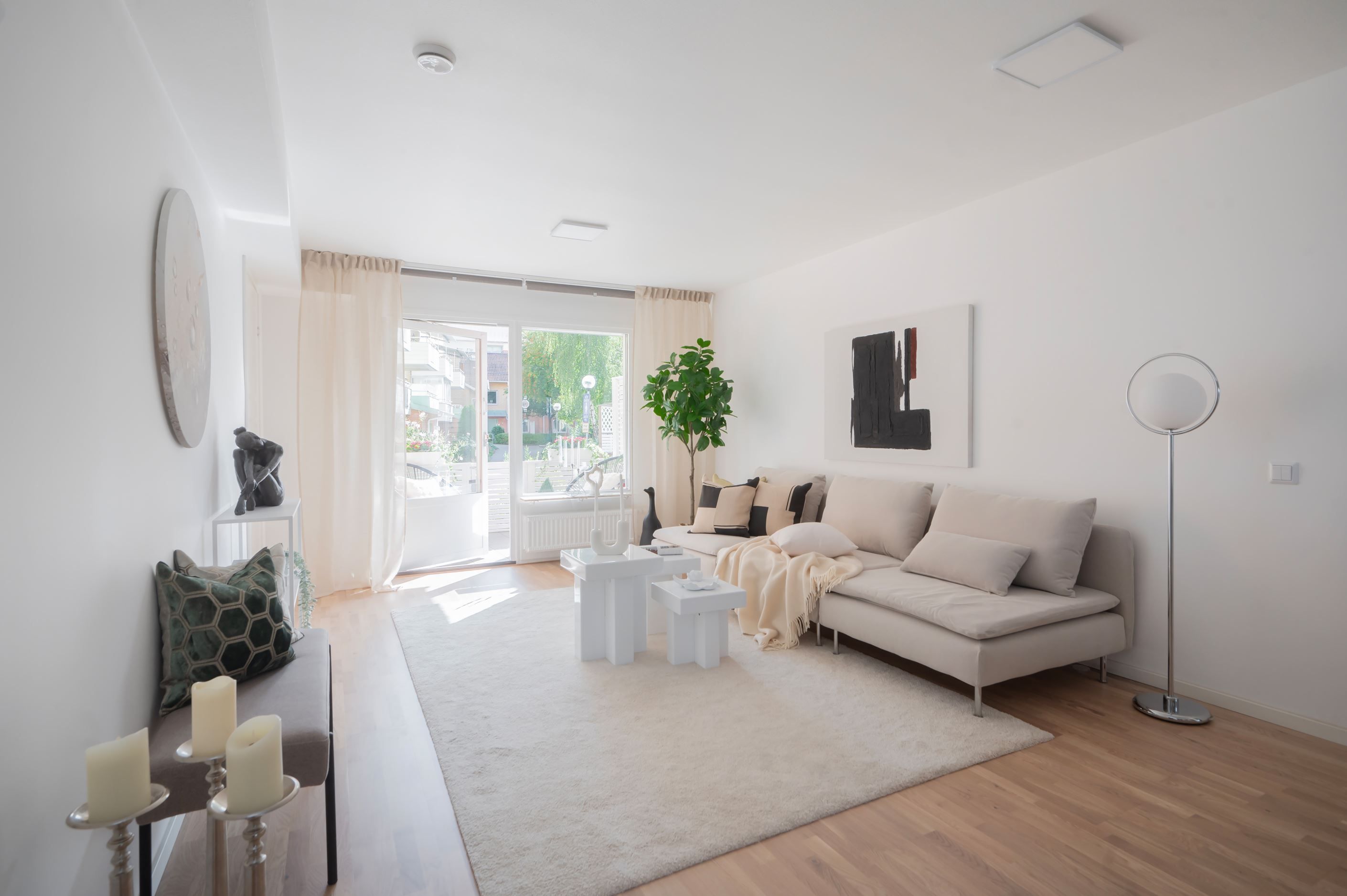 Välkomna till denna optimalt planerade och totalrenoverade lägenhet (2025) med exklusiva materialval och moderna vitvaror. Här flödar ljuset in genom stora fönsterpartier och skapar en ljus och luftig känsla. Den öppna planlösningen, de generösa sociala ytorna och den smakfulla inredningen ger bostaden en unik karaktär. Den ljusa färgsättningen i kombination med genomgående parkettgolv förstärker känslan av harmoni och hemtrevnad. Lägenheten erbjuder dessutom en mysig uteplats mot den trivsamma innergården, perfekt för umgänge och sena middagar.
