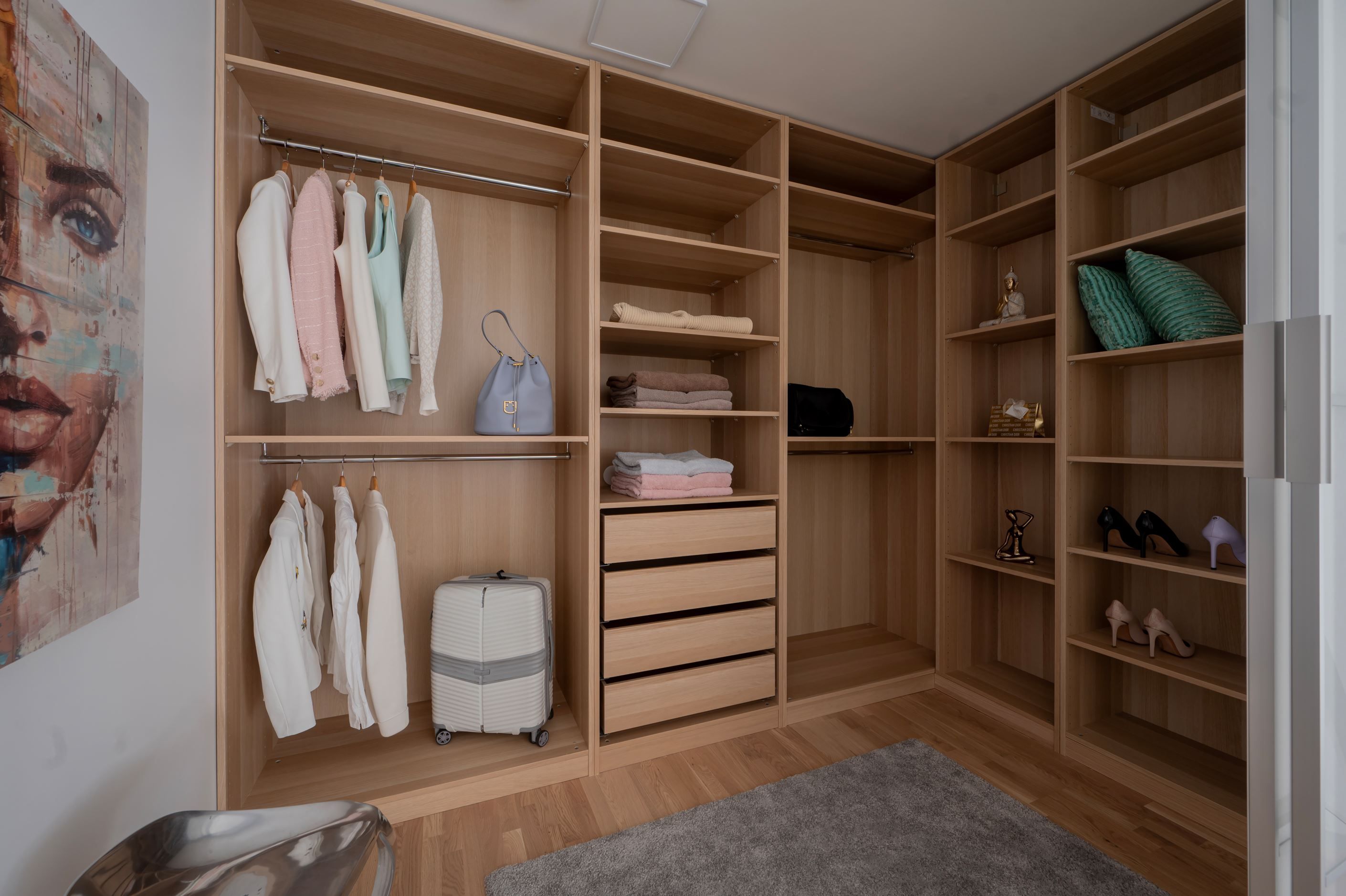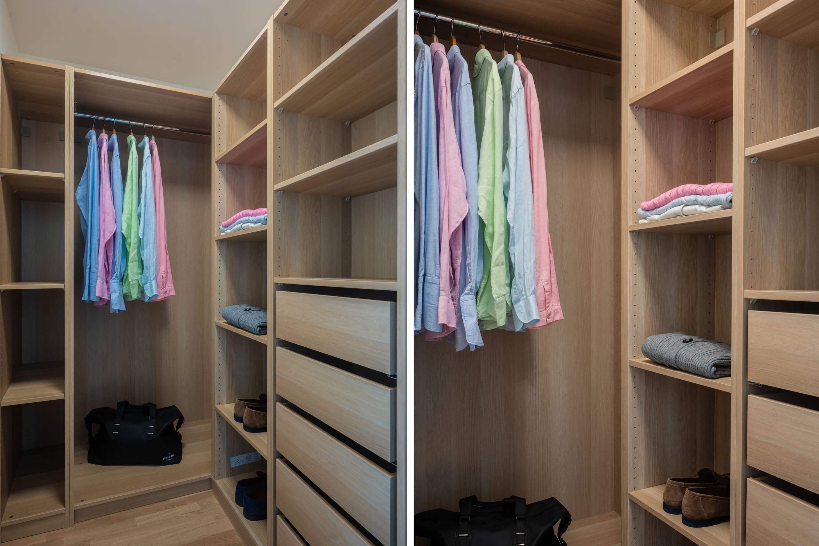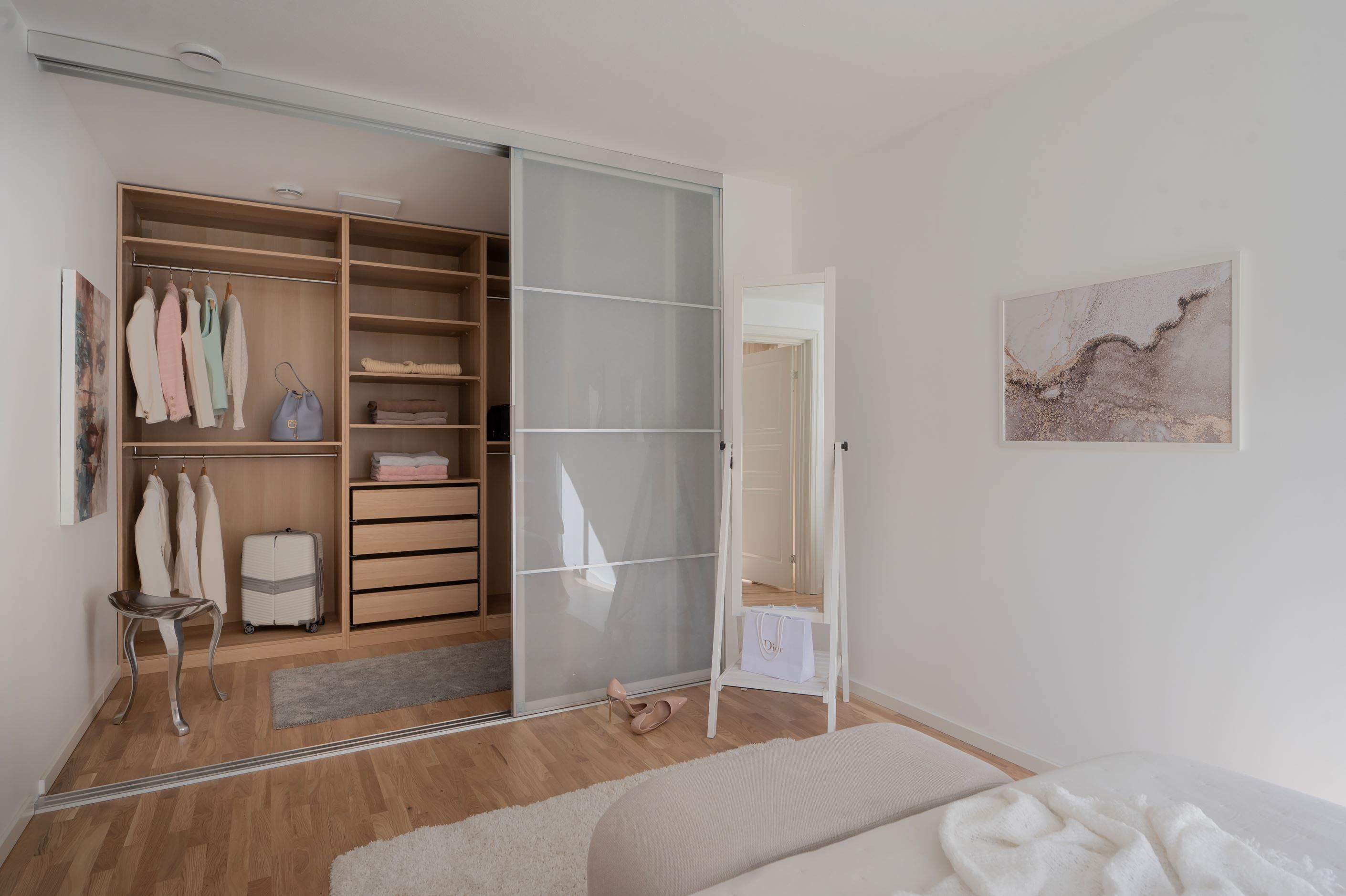 Master bedroom – stort sovrum med exklusiv walk-in closet (som även kan användas som kontor eller extra rum). Här ryms en dubbelsäng och arbetsplats.