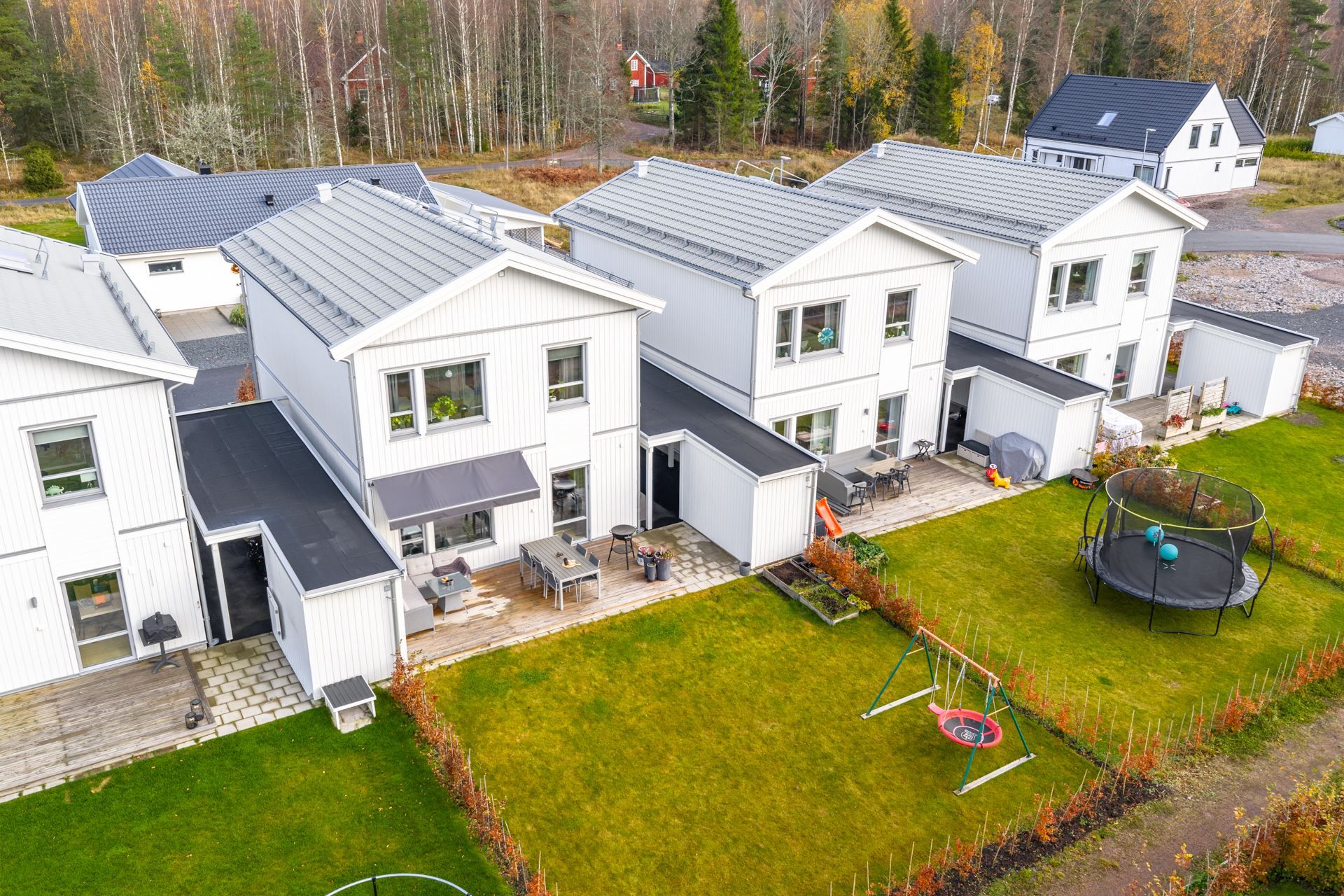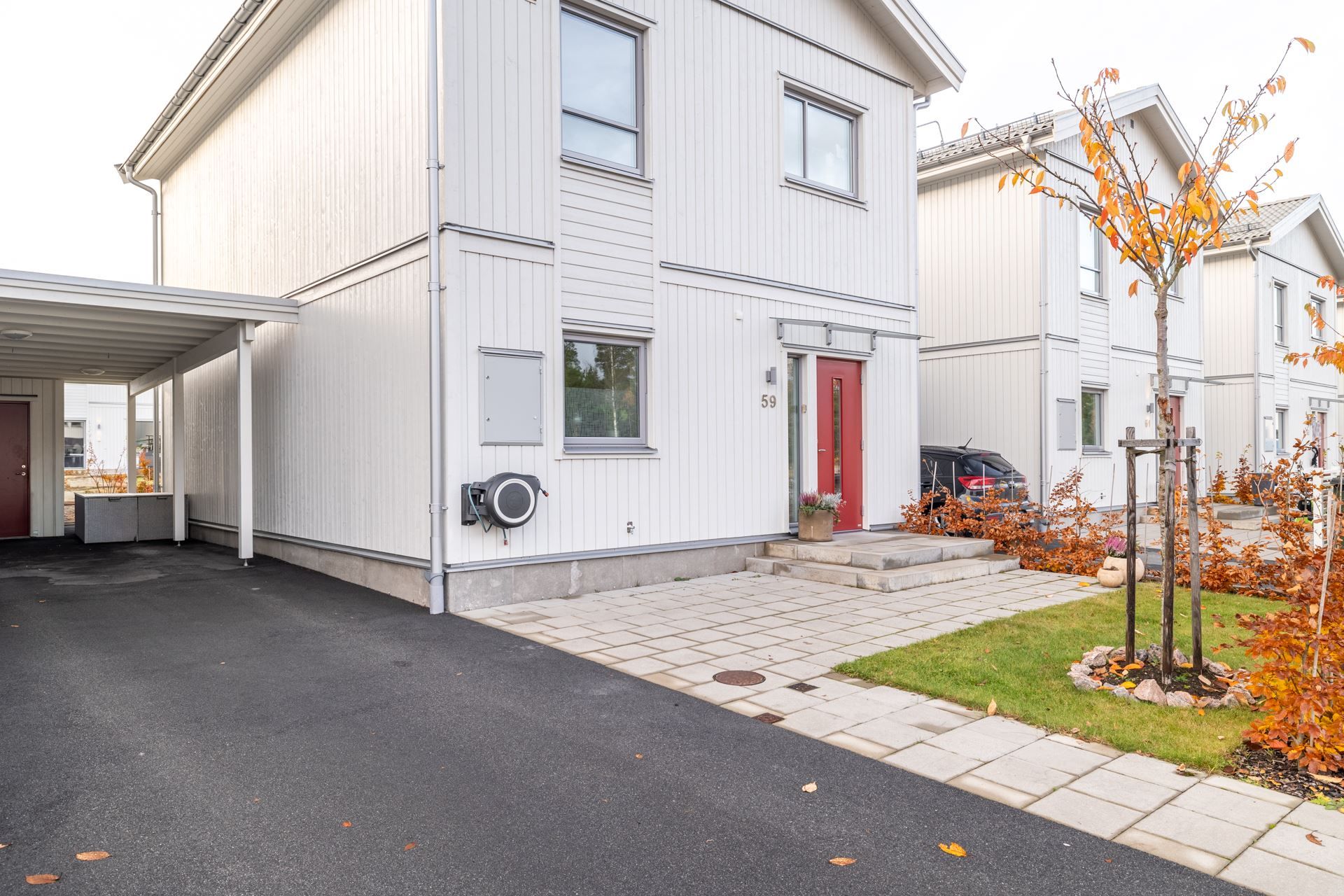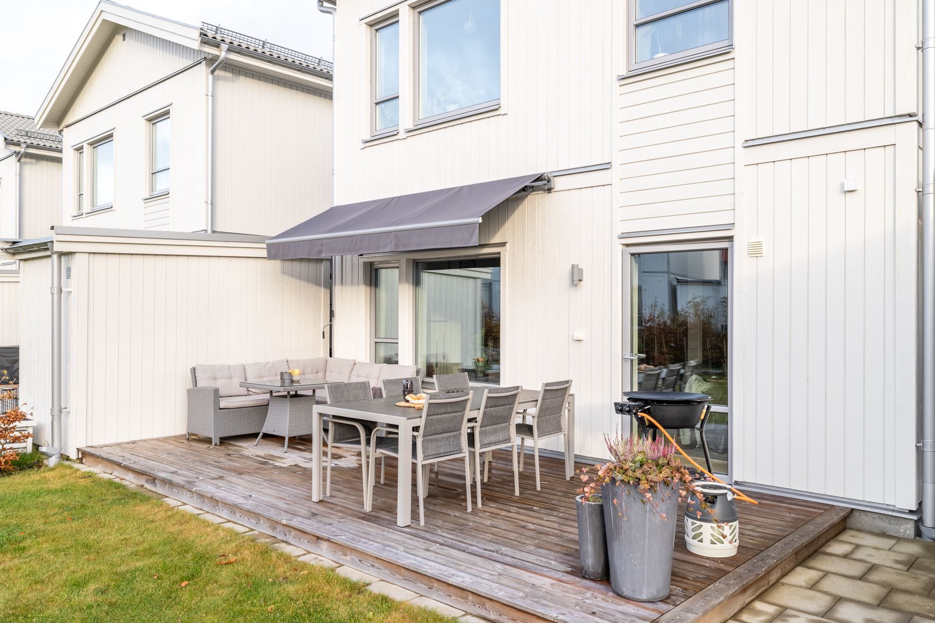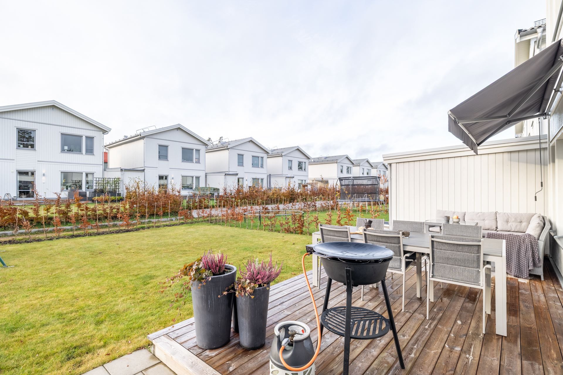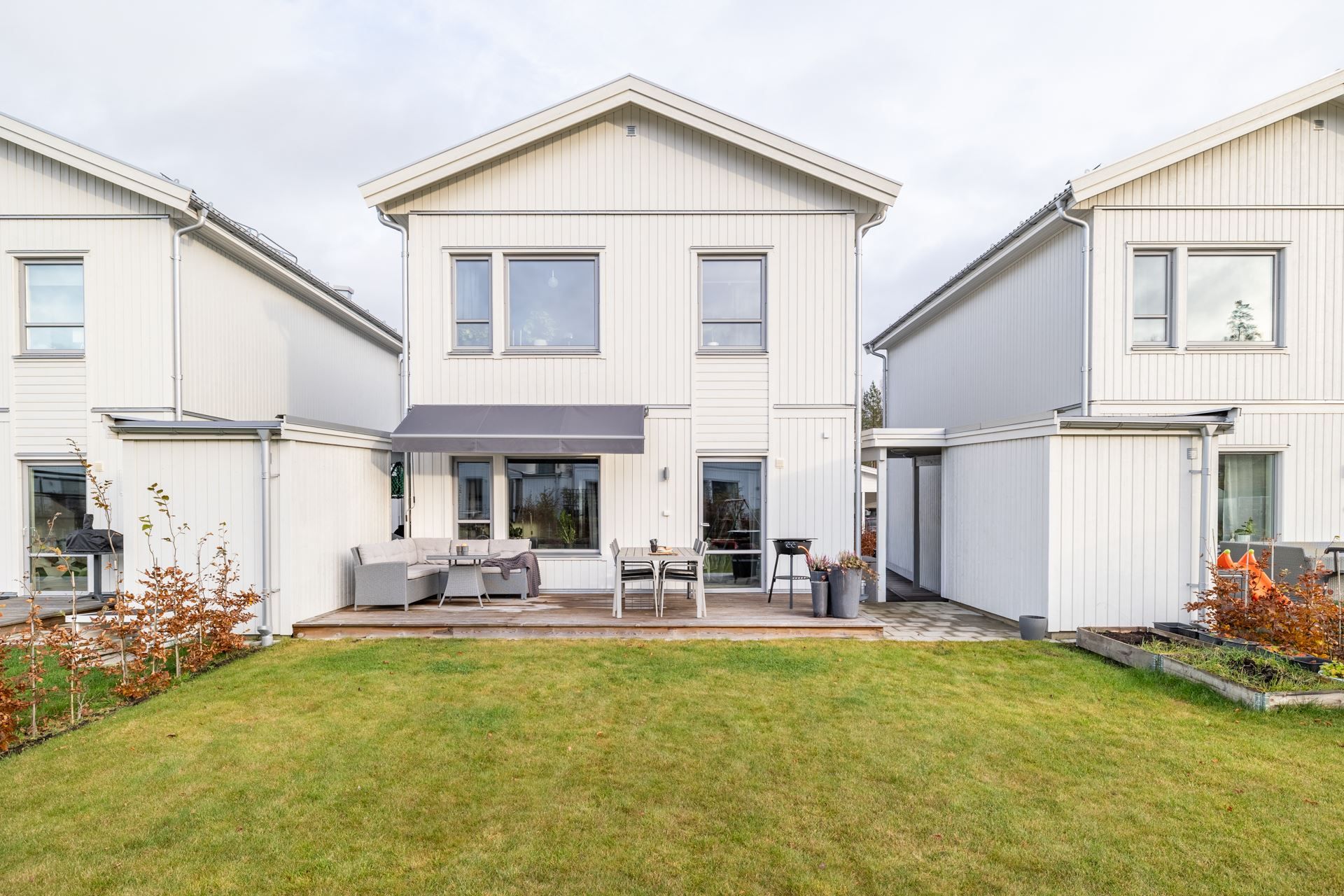 Välkommen till detta underbara kedjehus i bostadsrättsform, ett hem där modern design och fräsch känsla möter en planlösning som verkligen maximerar varje kvadratmeter. Här erbjuds ett boende som inte bara är vackert och genomtänkt, utan också färdigt att flytta in i direkt – inga renoveringar eller uppdateringar behövs, allt är redan på plats för att du ska kunna trivas från första stund.