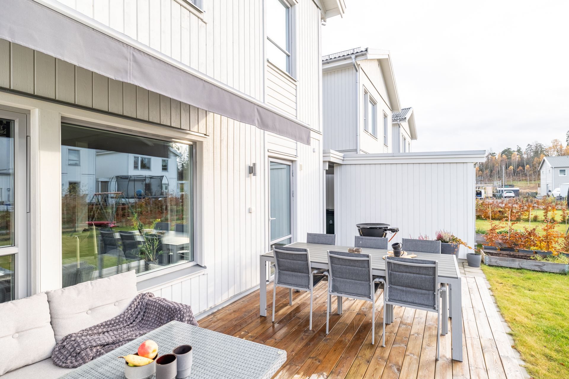 När du kliver in genom dörren möts du av en välkomnande atmosfär som genomsyrar hela bostaden. Den öppna planlösningen gör att rummen känns rymliga och luftiga, medan de stora fönsterpartierna släpper in ett fantastiskt dagsljus, vilket skapar en ljus och härlig miljö att leva i. Oavsett årstid ger de stora fönstren en nära kontakt med omgivningen och en naturlig förbindelse mellan inne och ute.