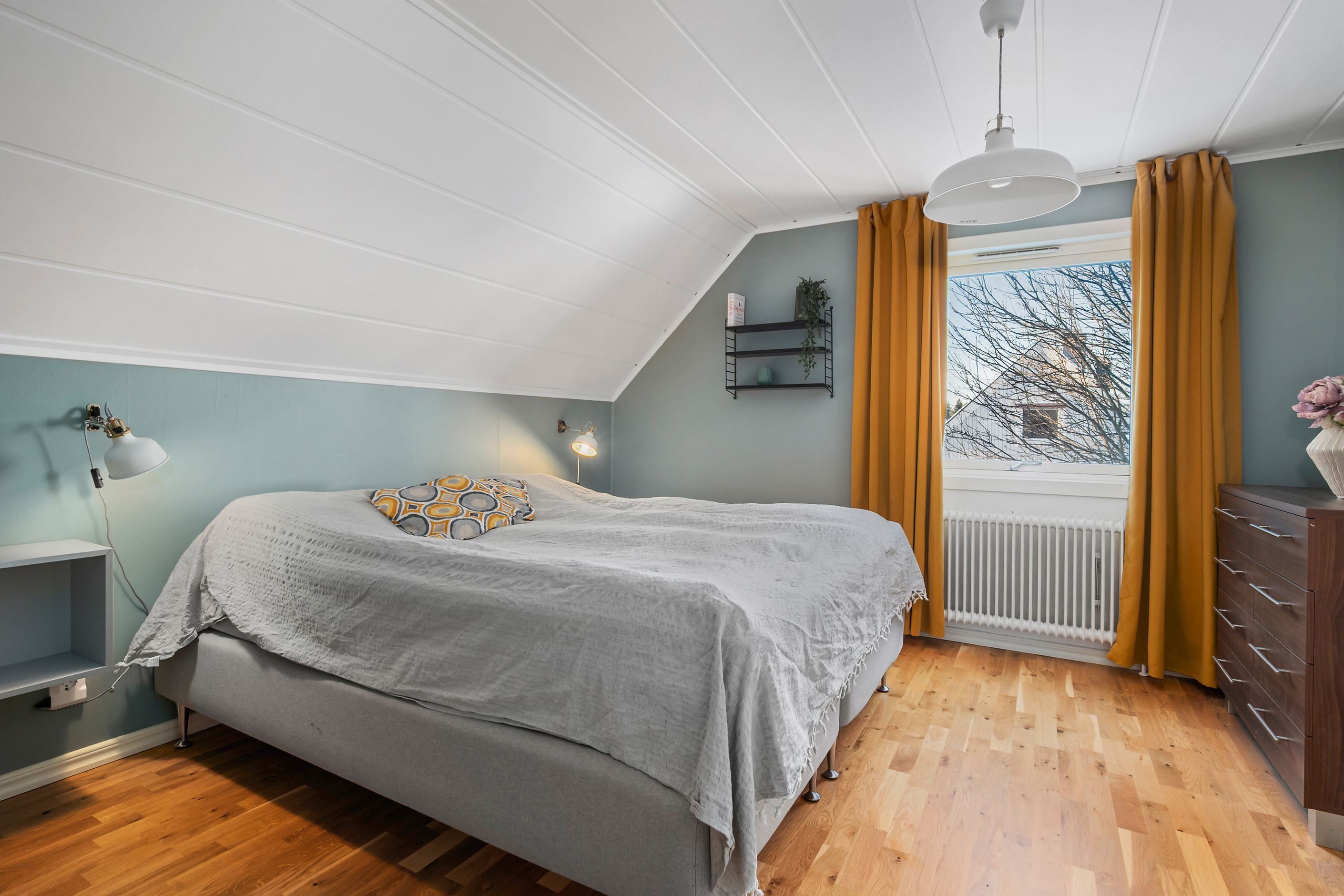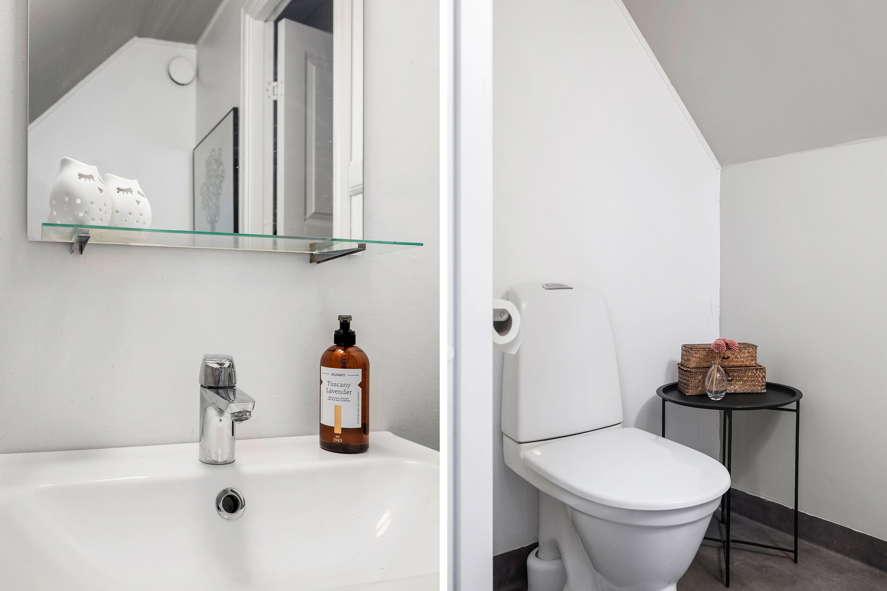 På övre plan finner ni tre rymliga sovrum och en renoverad toalett.