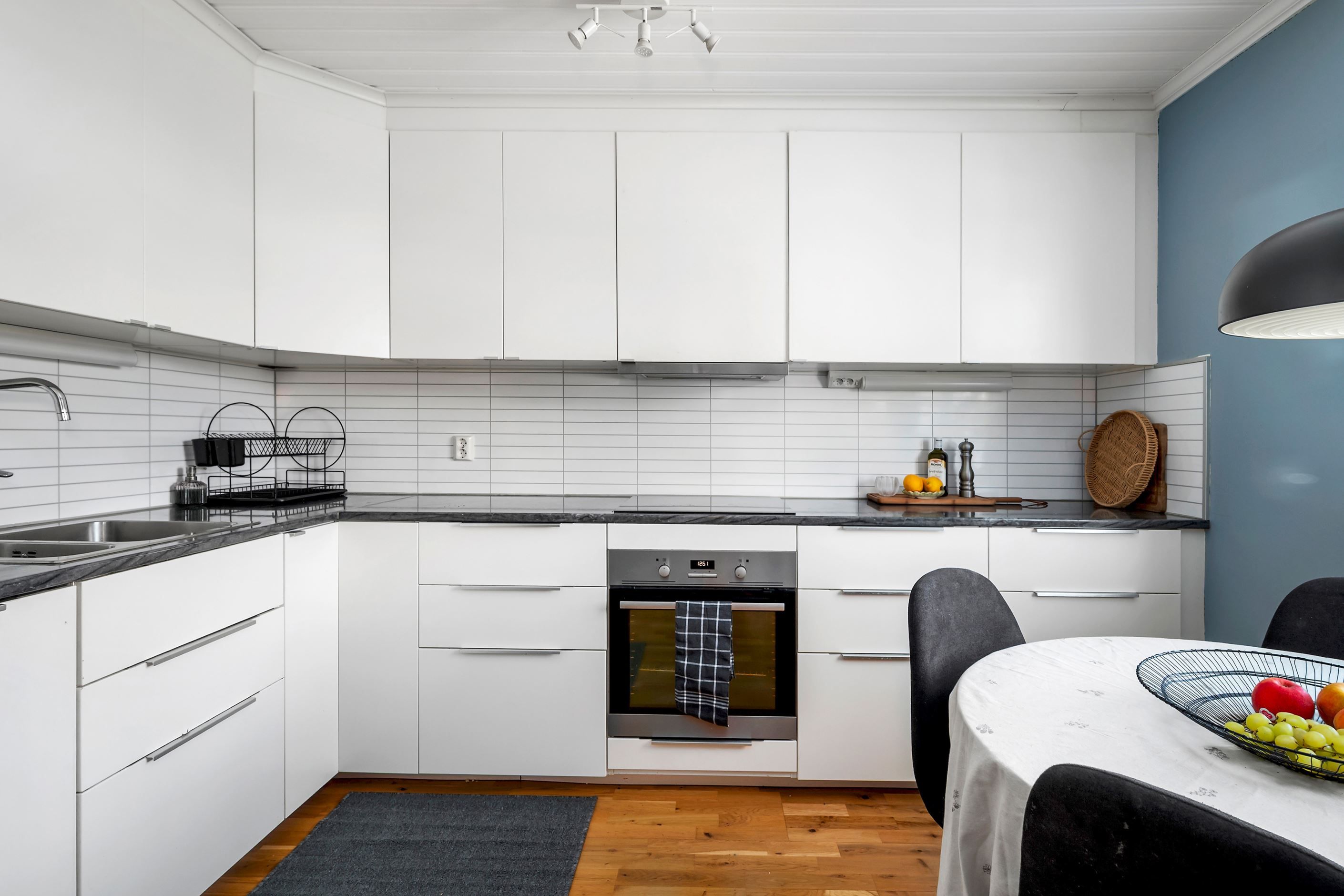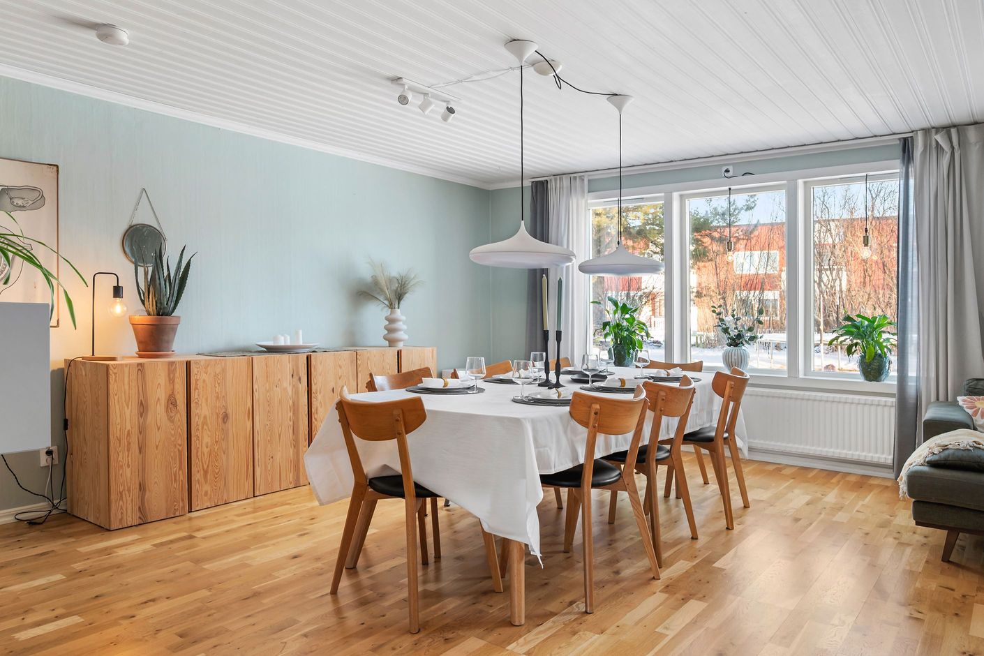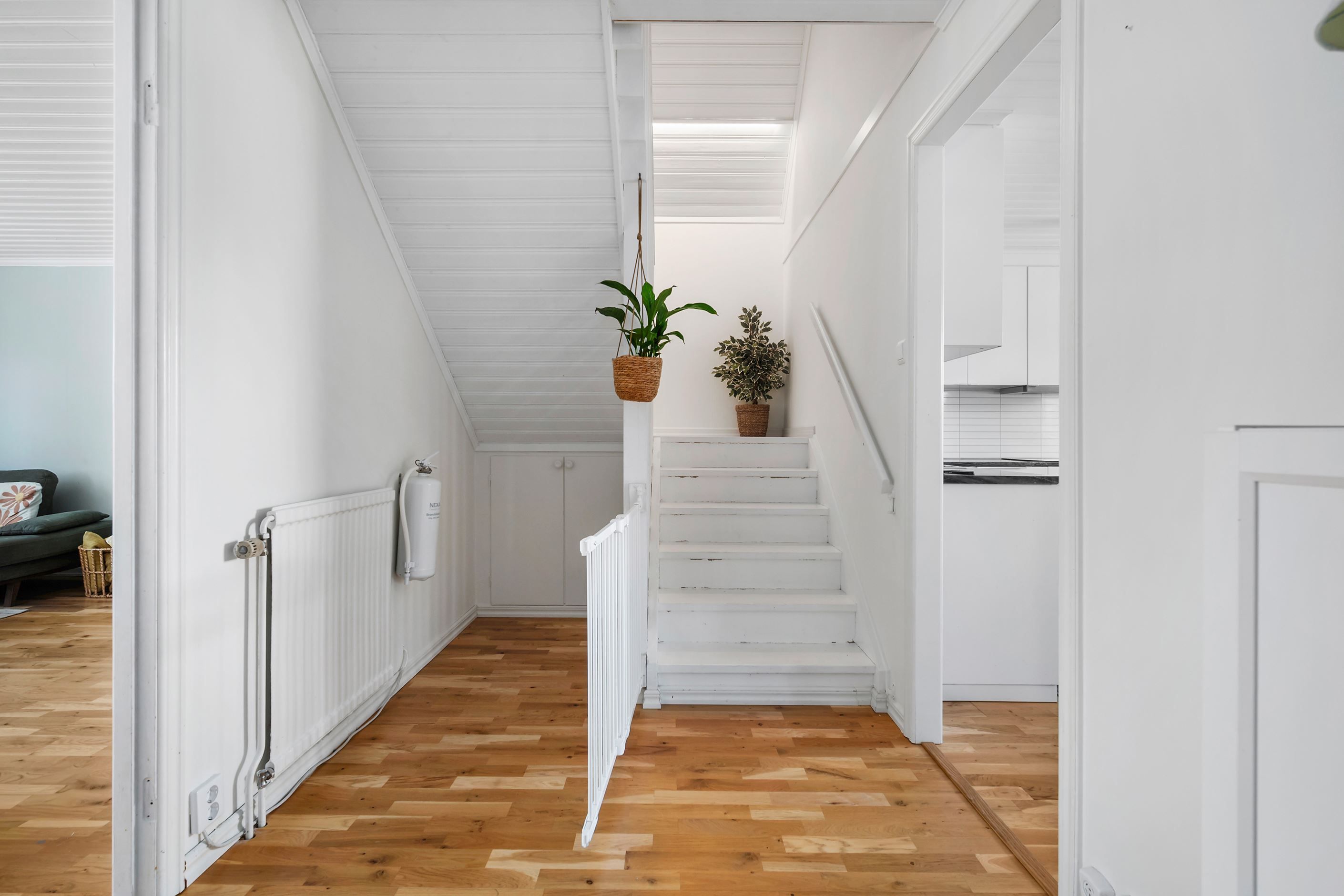 Planlösningen är inbjudande med mycket ljusinsläpp och stora sociala ytor på entréplan. Här har man under åren renoverat bland annat köket till ett stilfullt vitt kök, badrum, tvättstuga och alla ytskikt. Genomgående finner du ett fin parkettgolv förutom våtutrymmena.