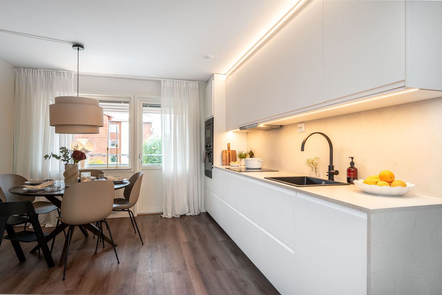 Allt – från golv, väggar och tak till el, vatten och avlopp – är nytt sedan 2022. Detta är verkligen en lägenhet utöver det vanliga, i en välskött förening med attraktivt läge i centrum.