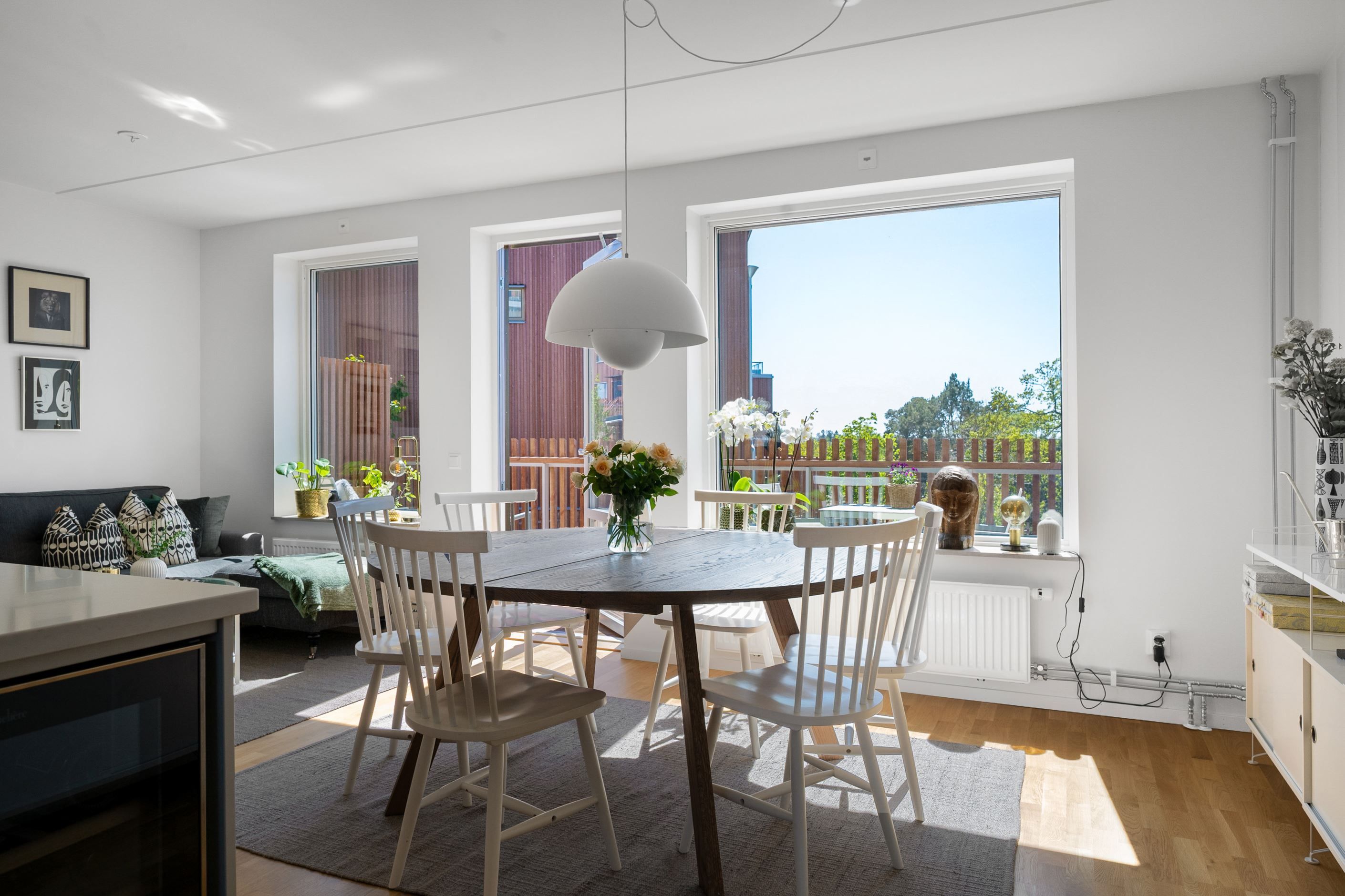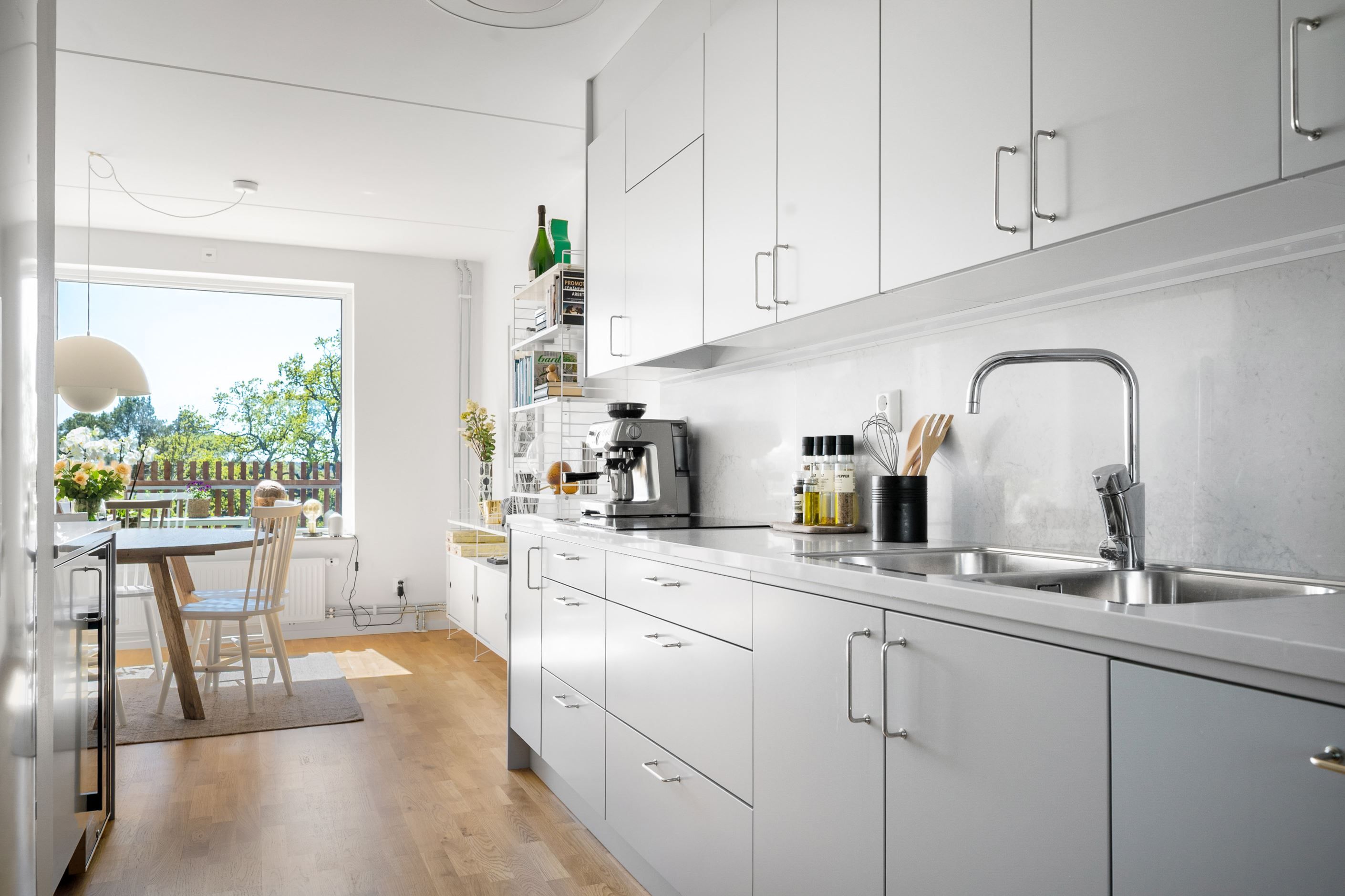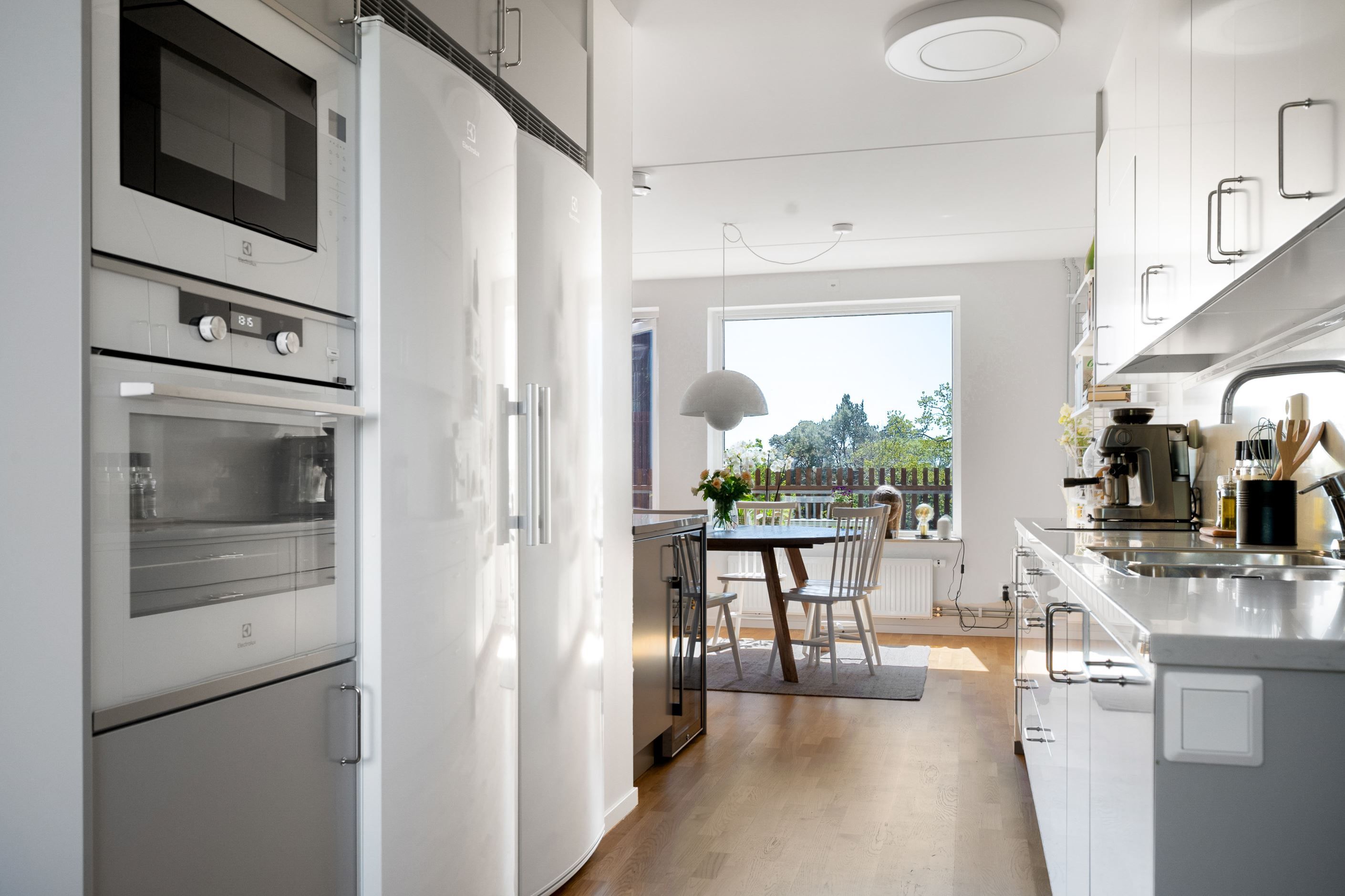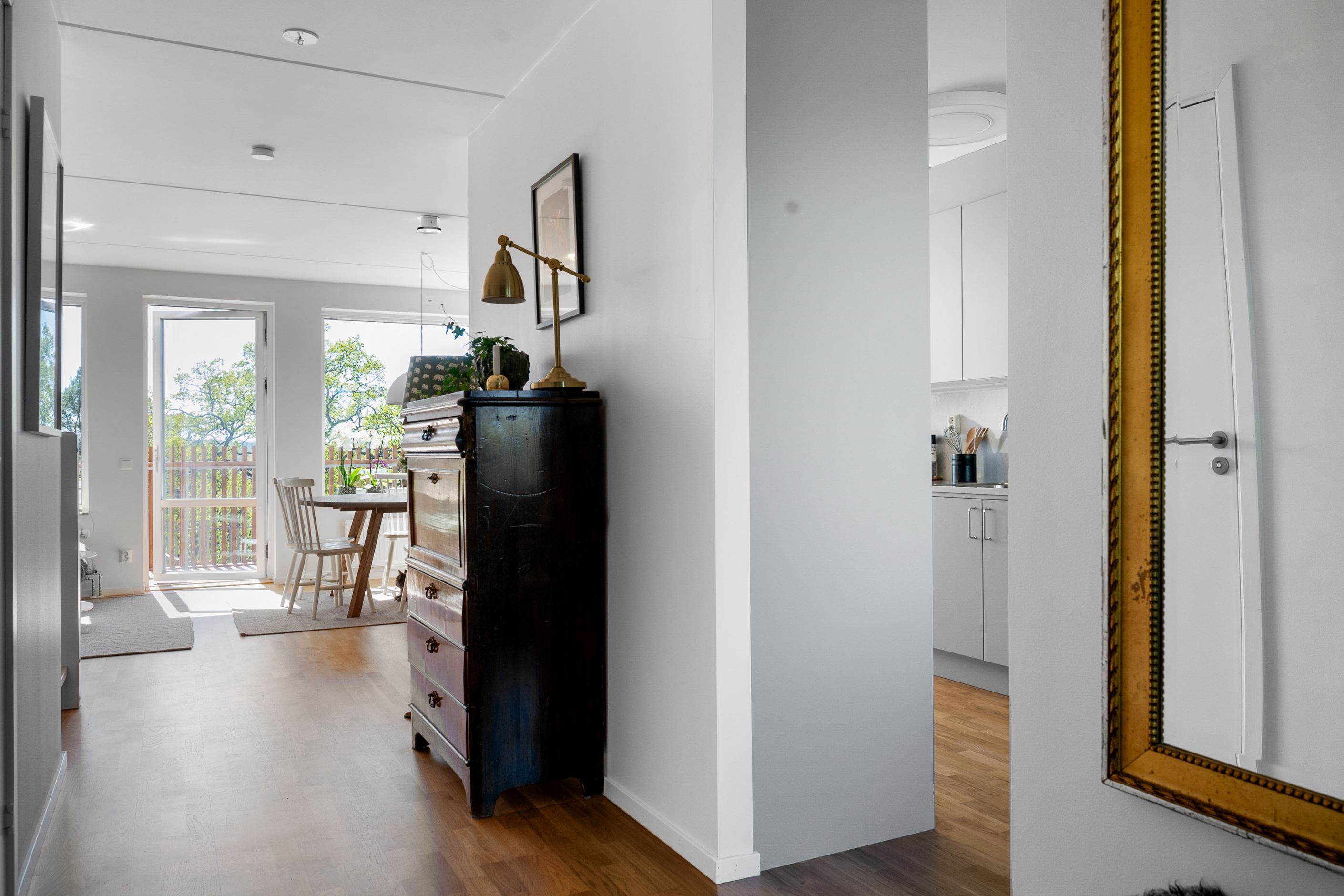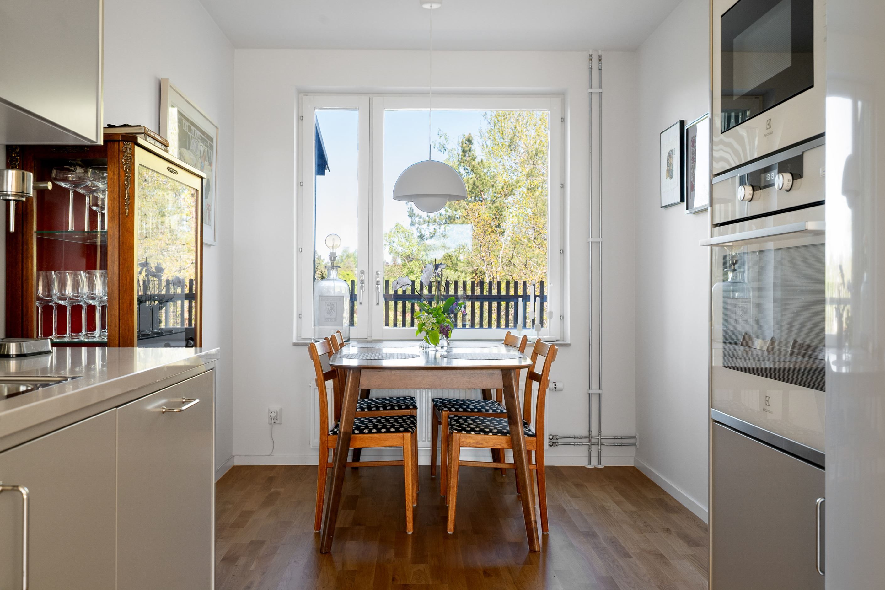 Hela bostaden har enhetliga parkettgolv.