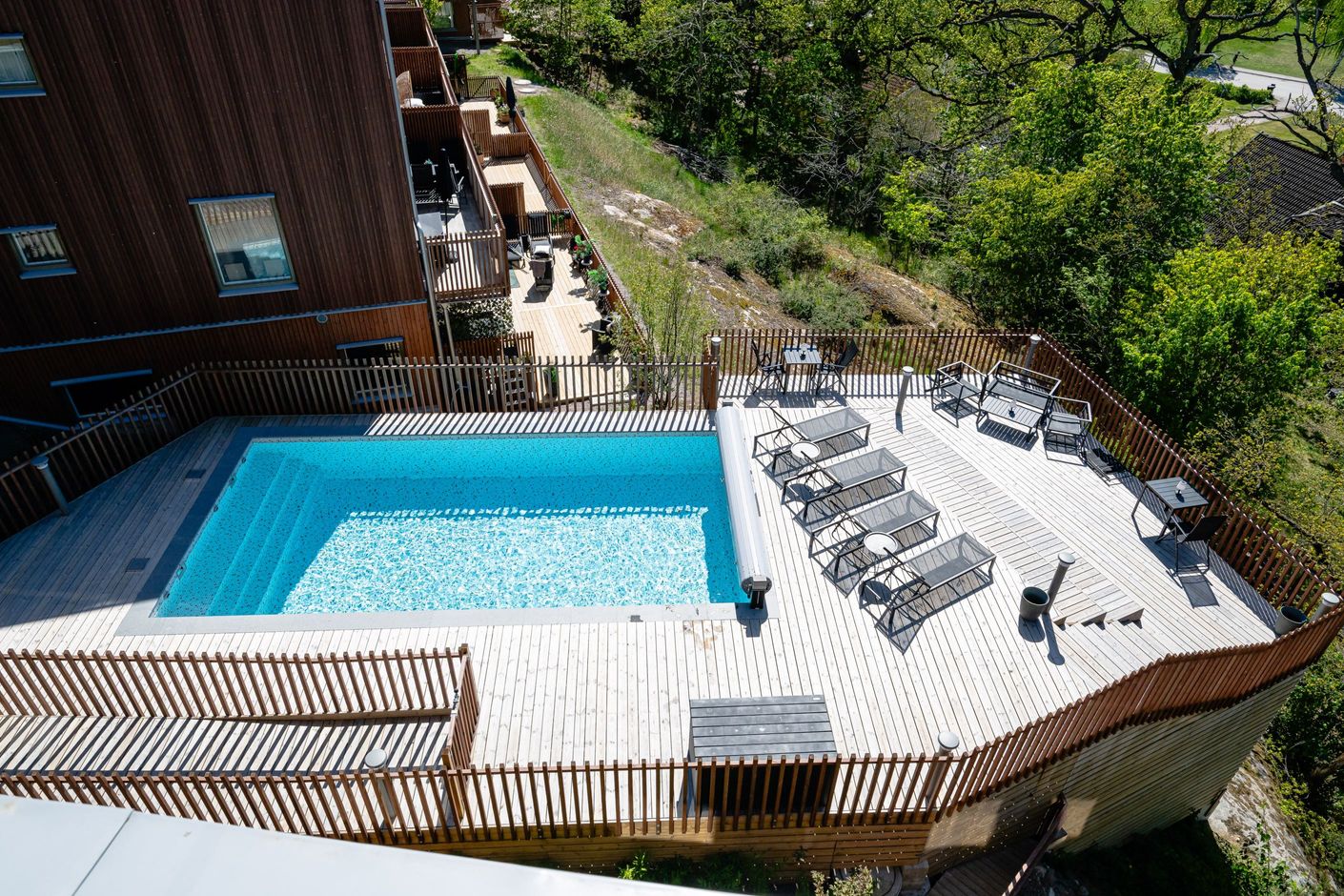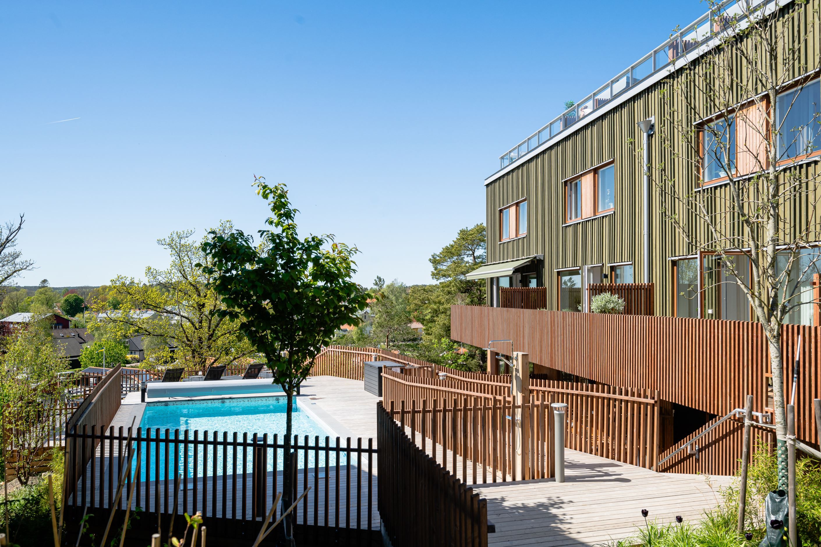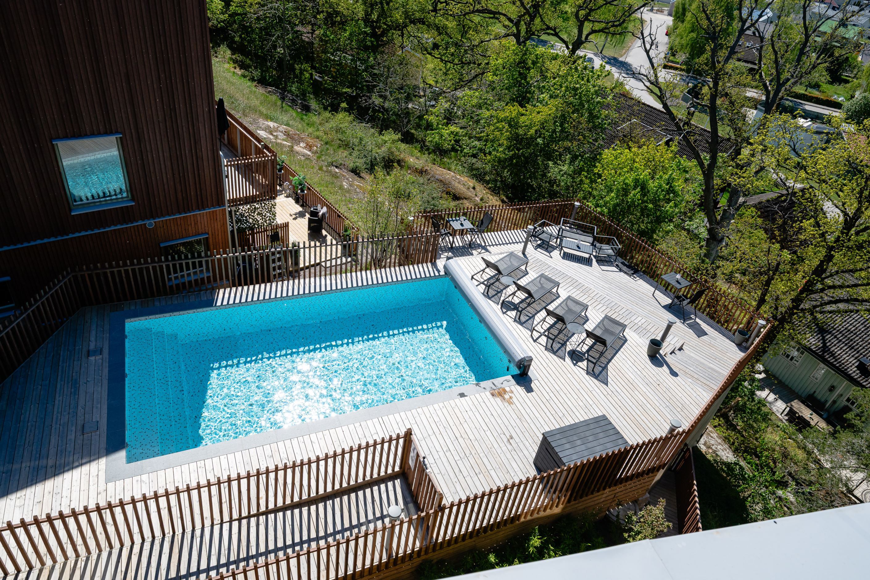 Brf Sjöutsikten är en nyproducerad förening bestående av 27 moderna bostäder fördelade i 5 huskroppar. Här har fullt fokus lagts på livskvalitet och gemensamma ytor så som stort trädäck och eget pool för de boende. Ett stenkast bort ligger Trosas charmiga stadskärna med bla butiker, restauranger, apotek och systembolag. Ca 500 m till närmsta busshållplats och endast 15 min promenad till både skola och förskola.