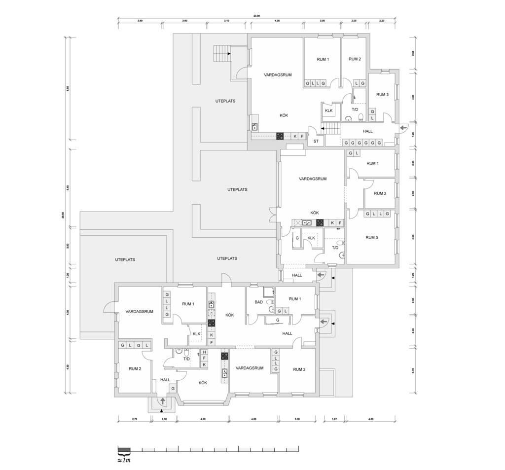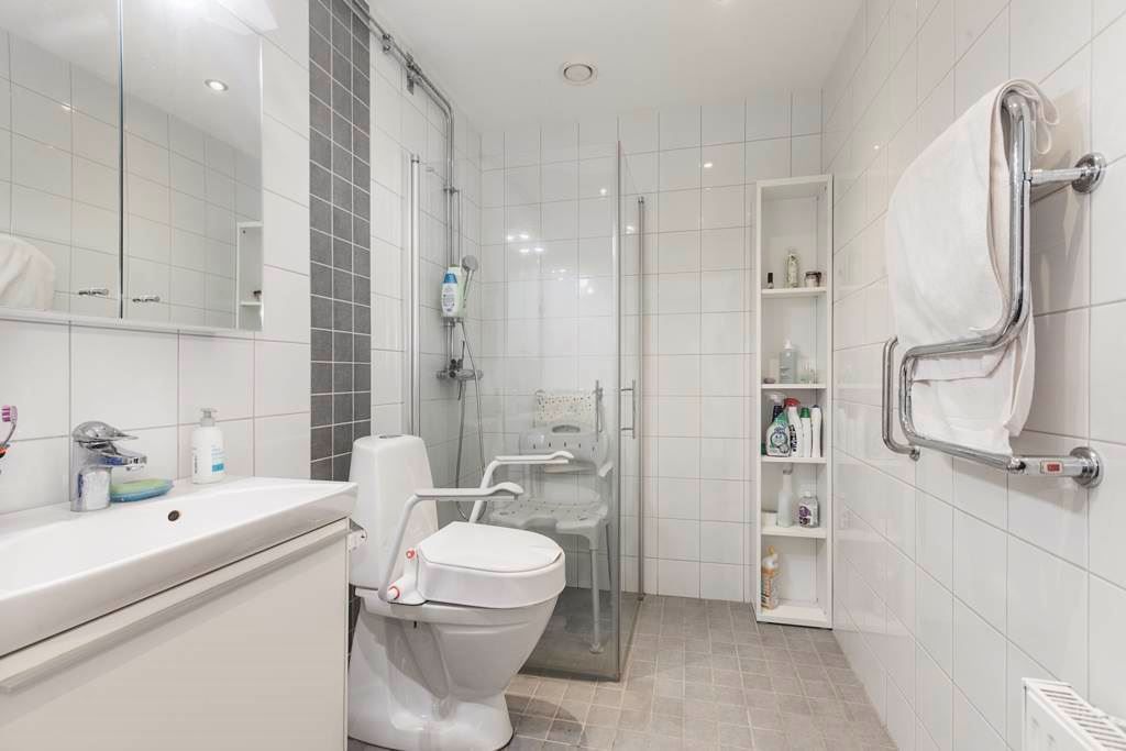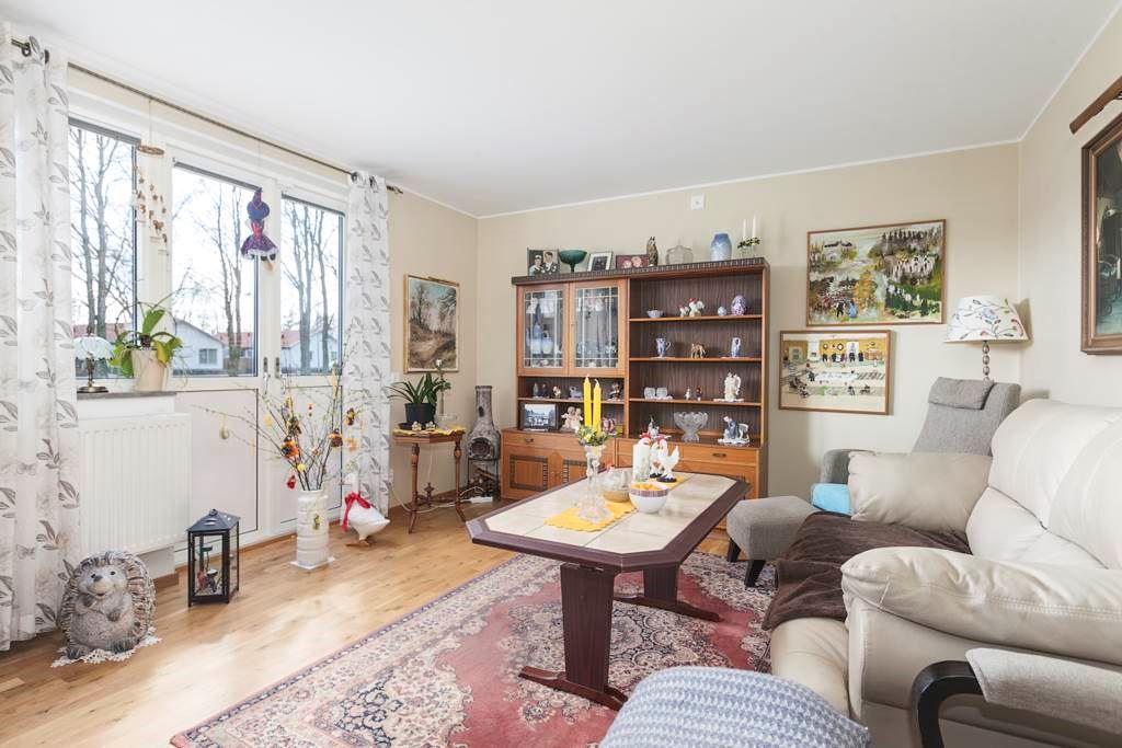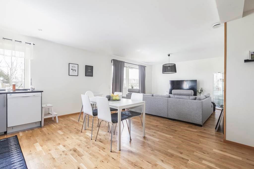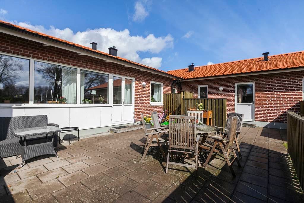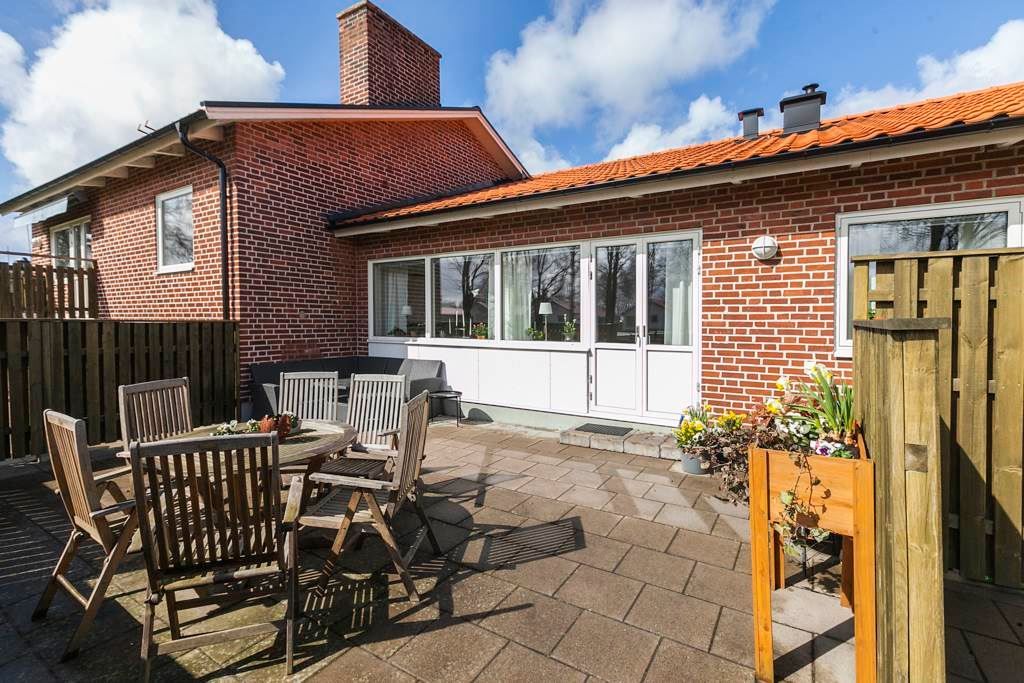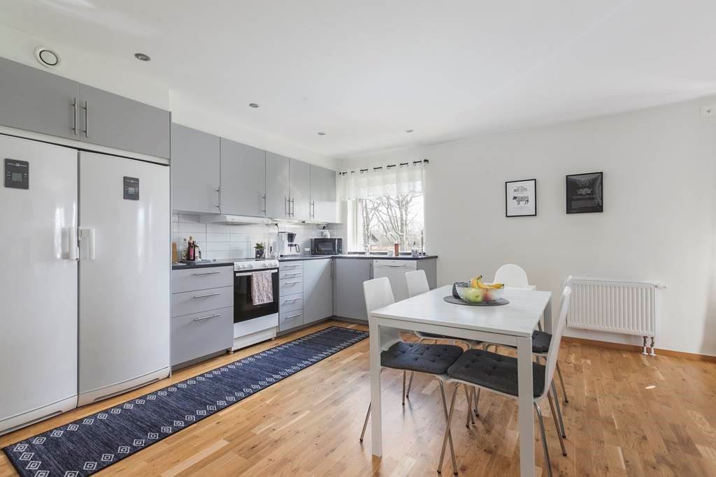 Bostäderna har löpande renoverats och erbjuder uppdaterade kök och badrum samt moderna treglasfönster. Varje lägenhet har dessutom egna stenlagda uteplatser på både fram- och baksida, vilket skapar ett trivsamt boende med radhuskänsla. På fastigheten finns även en generös gemensam gräsyta som gränsar till ett mindre parkområde.