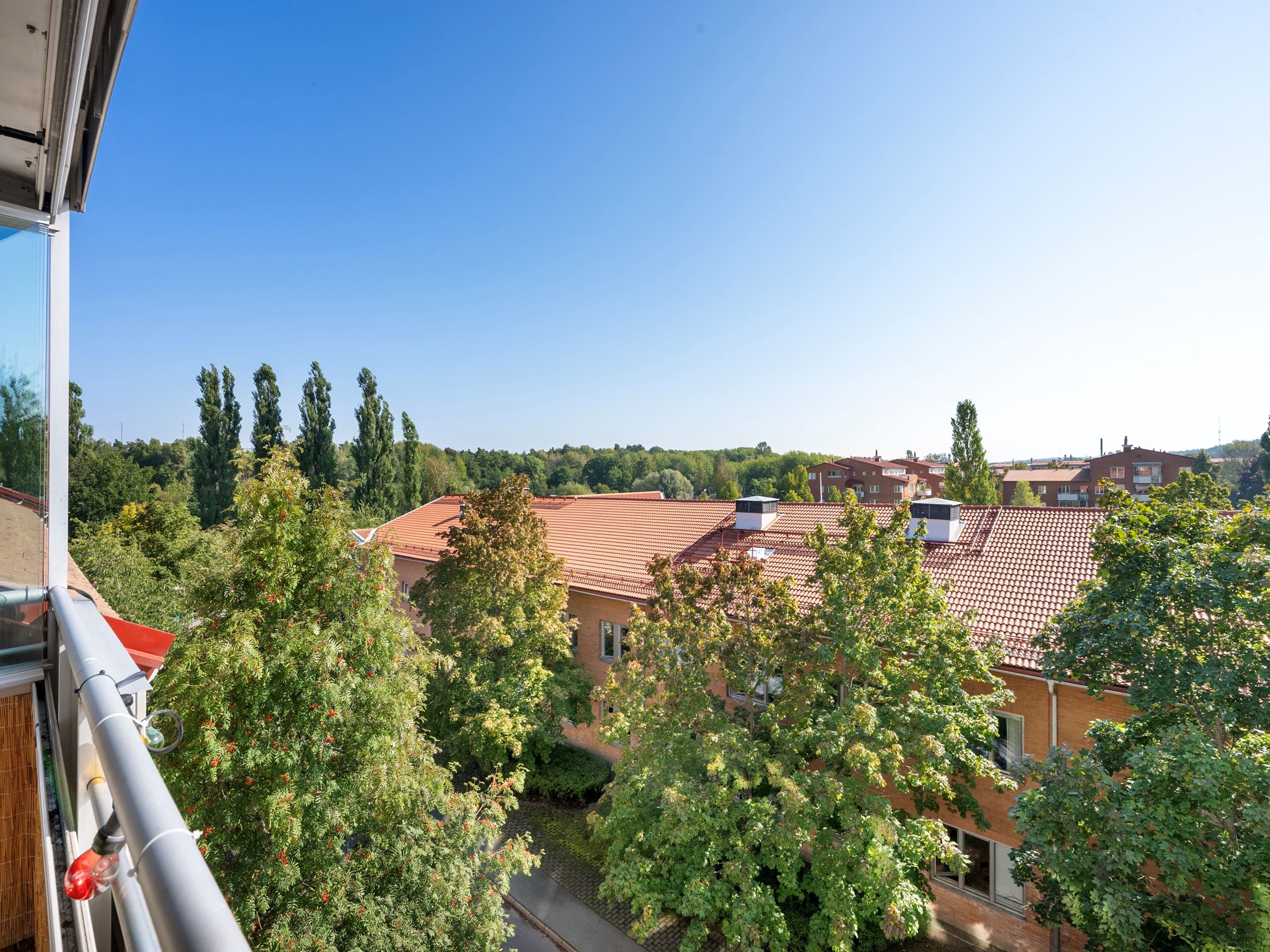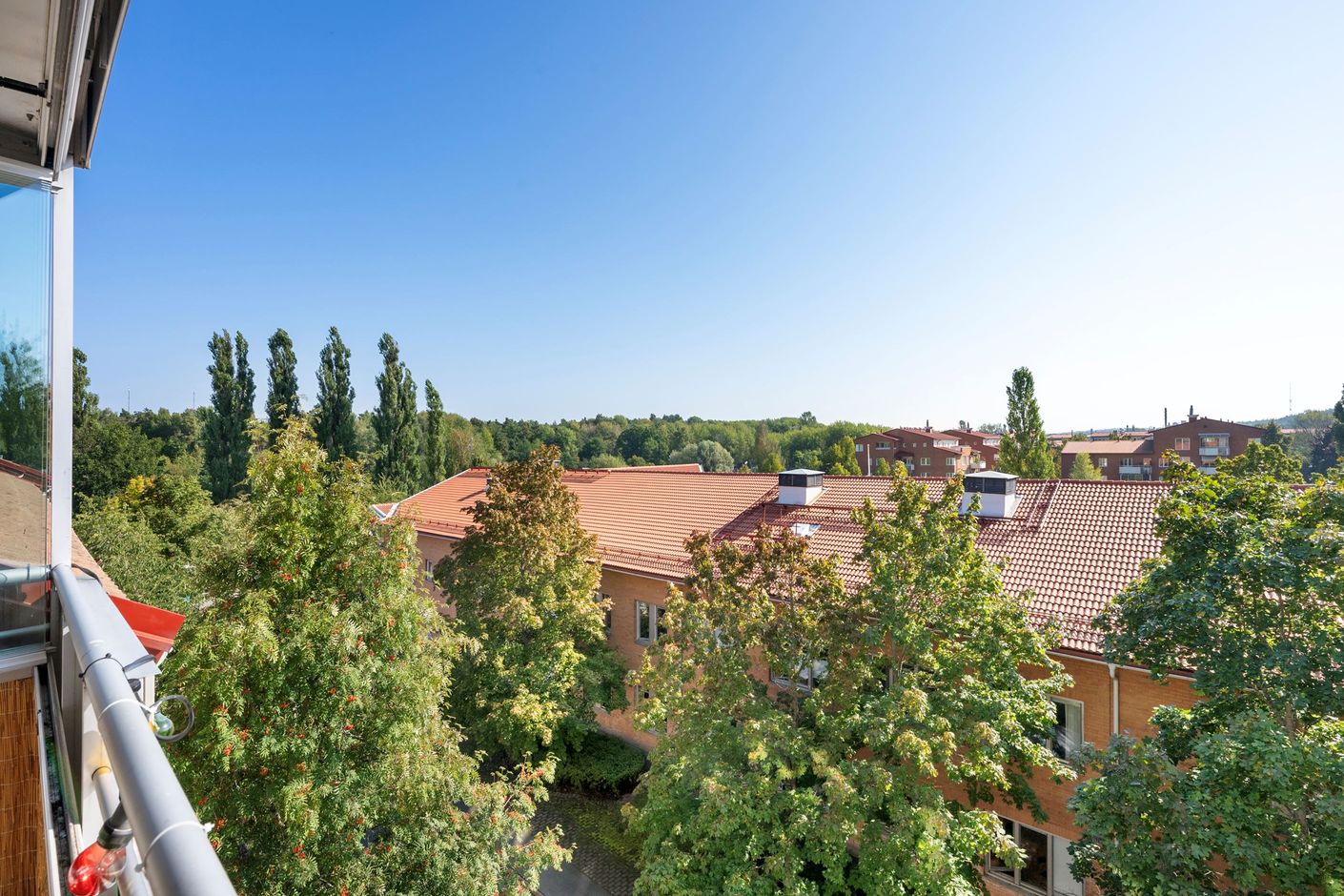I anslutning till köket ligger det inbjudande vardagsrummet med gott om utrymme för soffgrupp med soffbord, TV-möbel och övrigt möblemang. Härifrån nås även den inglasade balkongen i sydostläge med fin utsikt över både hustak och grönska – en härlig förlängning av bostaden.
