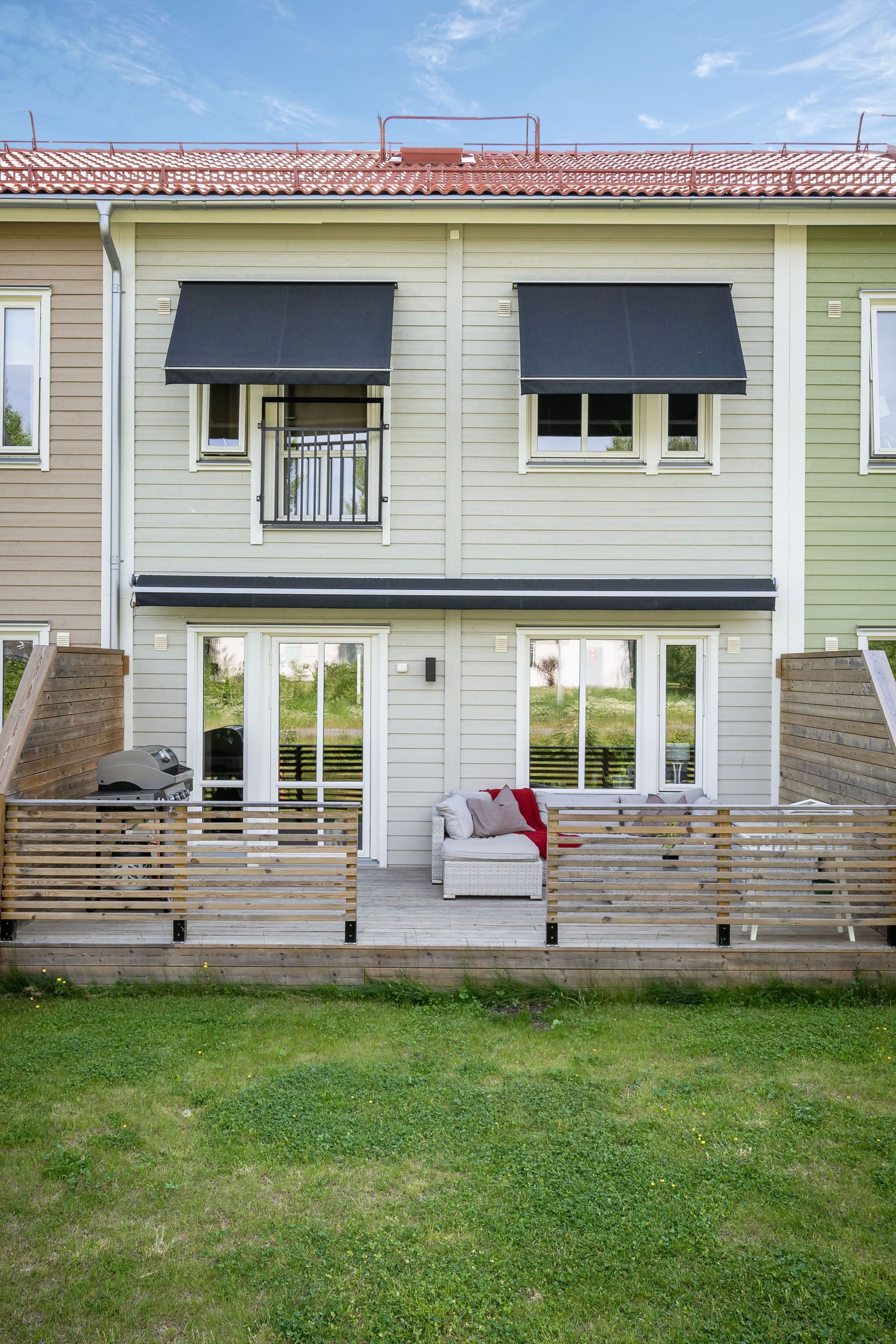Bostaden erbjuder dessutom två härliga uteplatser i olika väderstreck – en i öster för morgonkaffet i solen och en i väster som bjuder på eftermiddags- och kvällssol, perfekt för grillkvällar och avkoppling.
