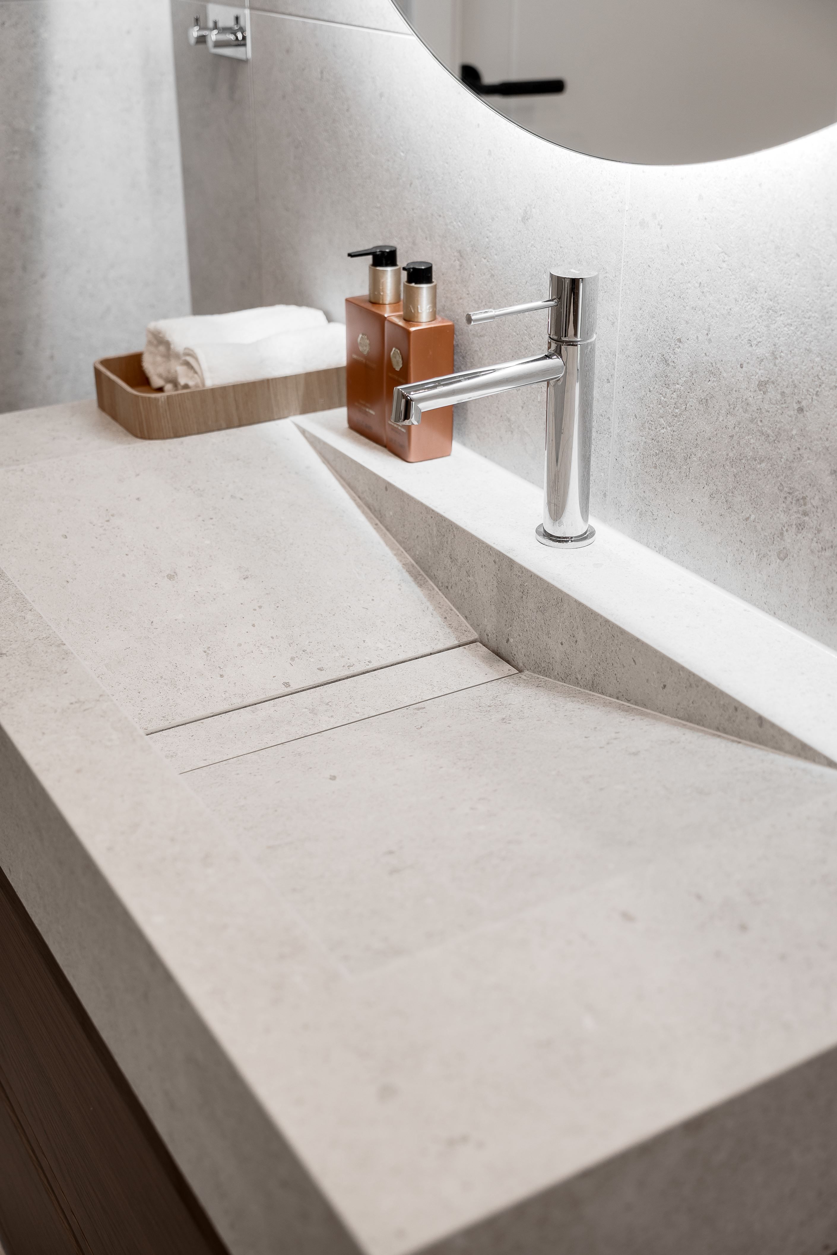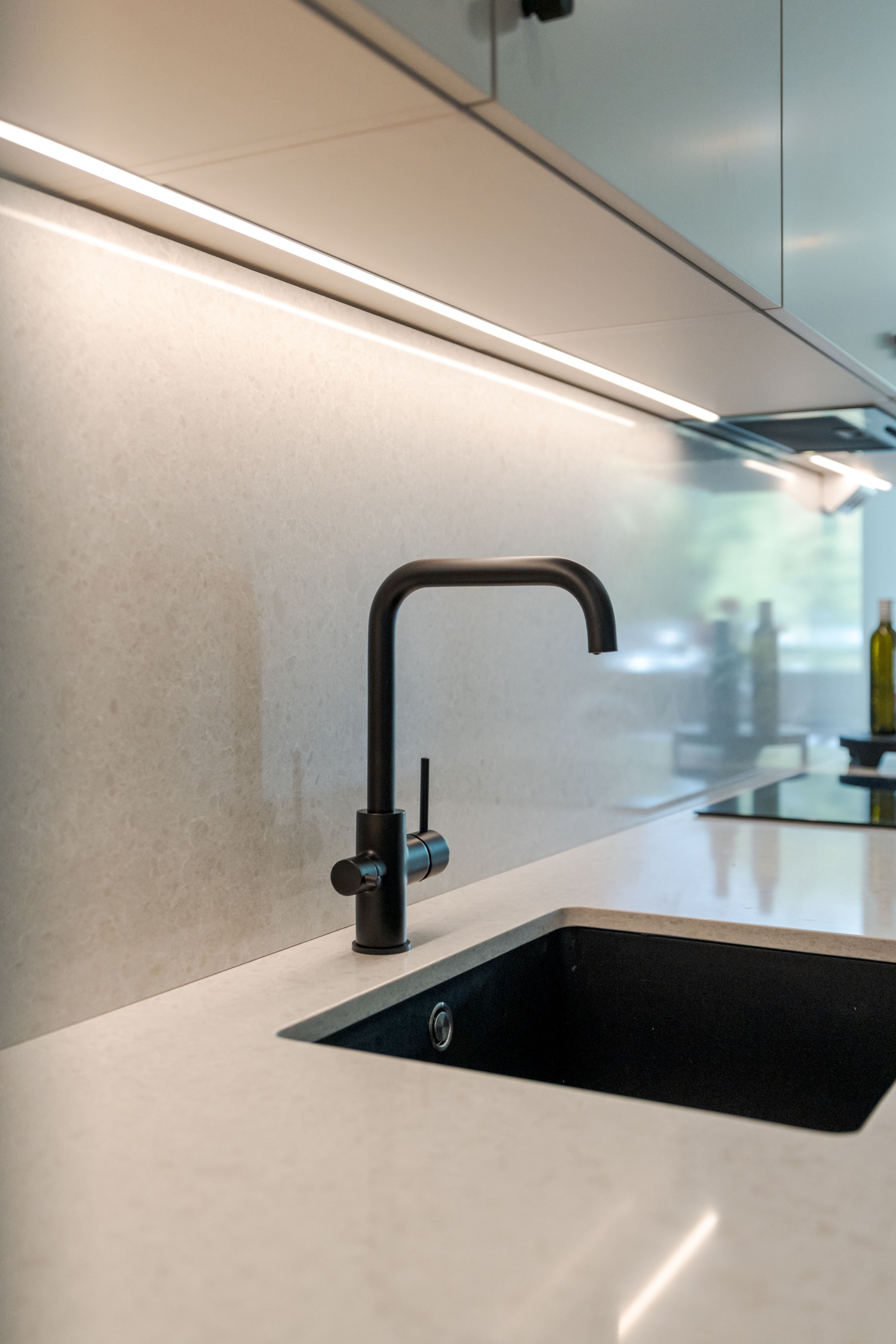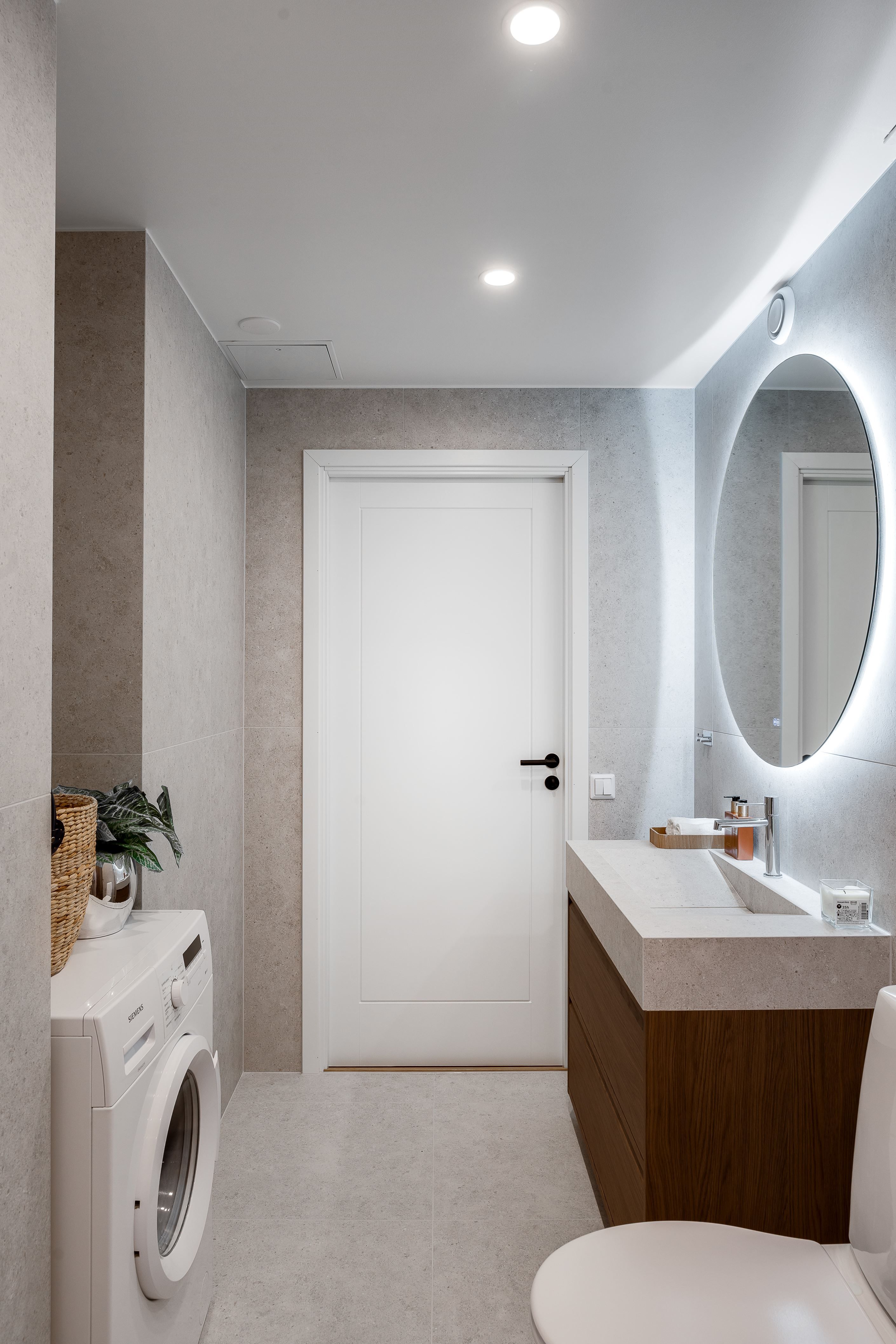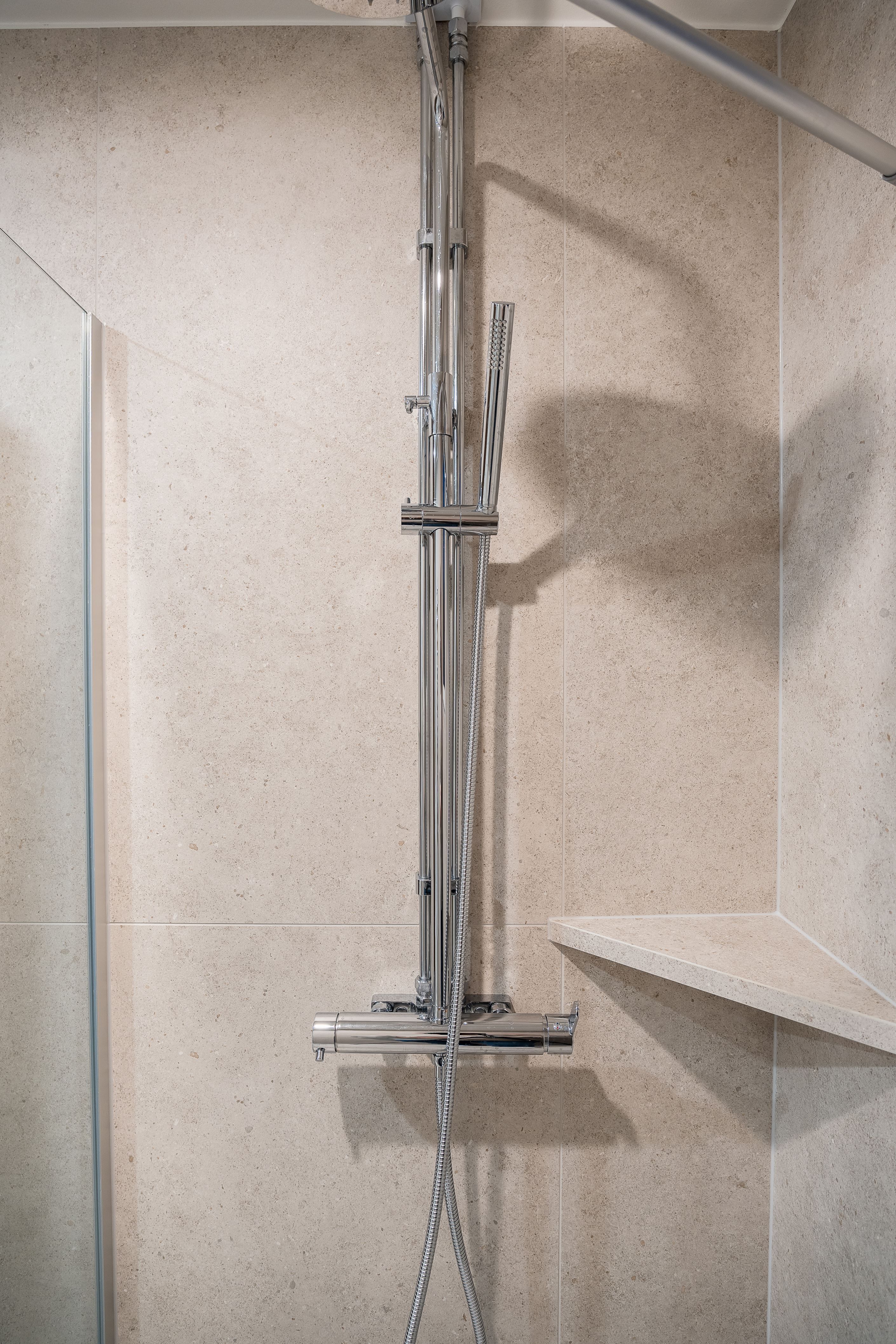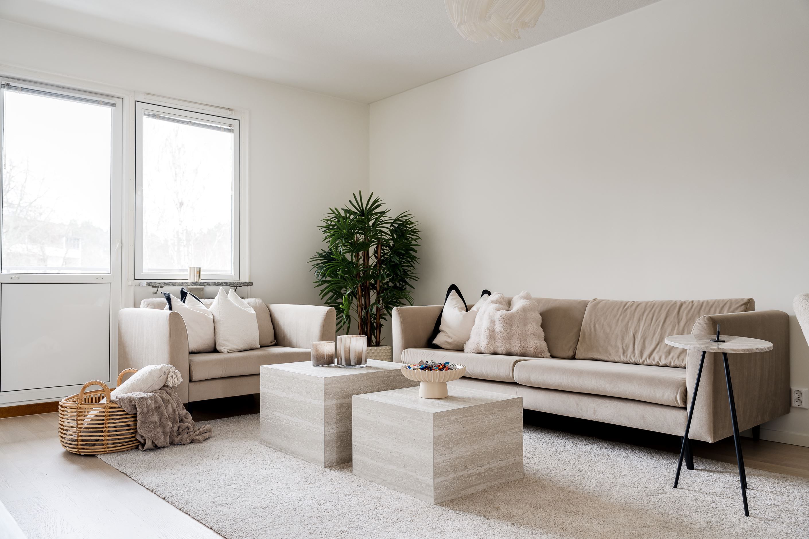 Köket är platsbyggt och stilrent med nya vitvaror, exklusiva bänkskivor och stänkskydd i kompositsten – en påkostad detalj som kombinerar både elegans och funktionalitet. Badrummen är helt nyrenoverade och helkaklade, även här med noga utvalda material av högre standard som skapar en modern och lyxig känsla.