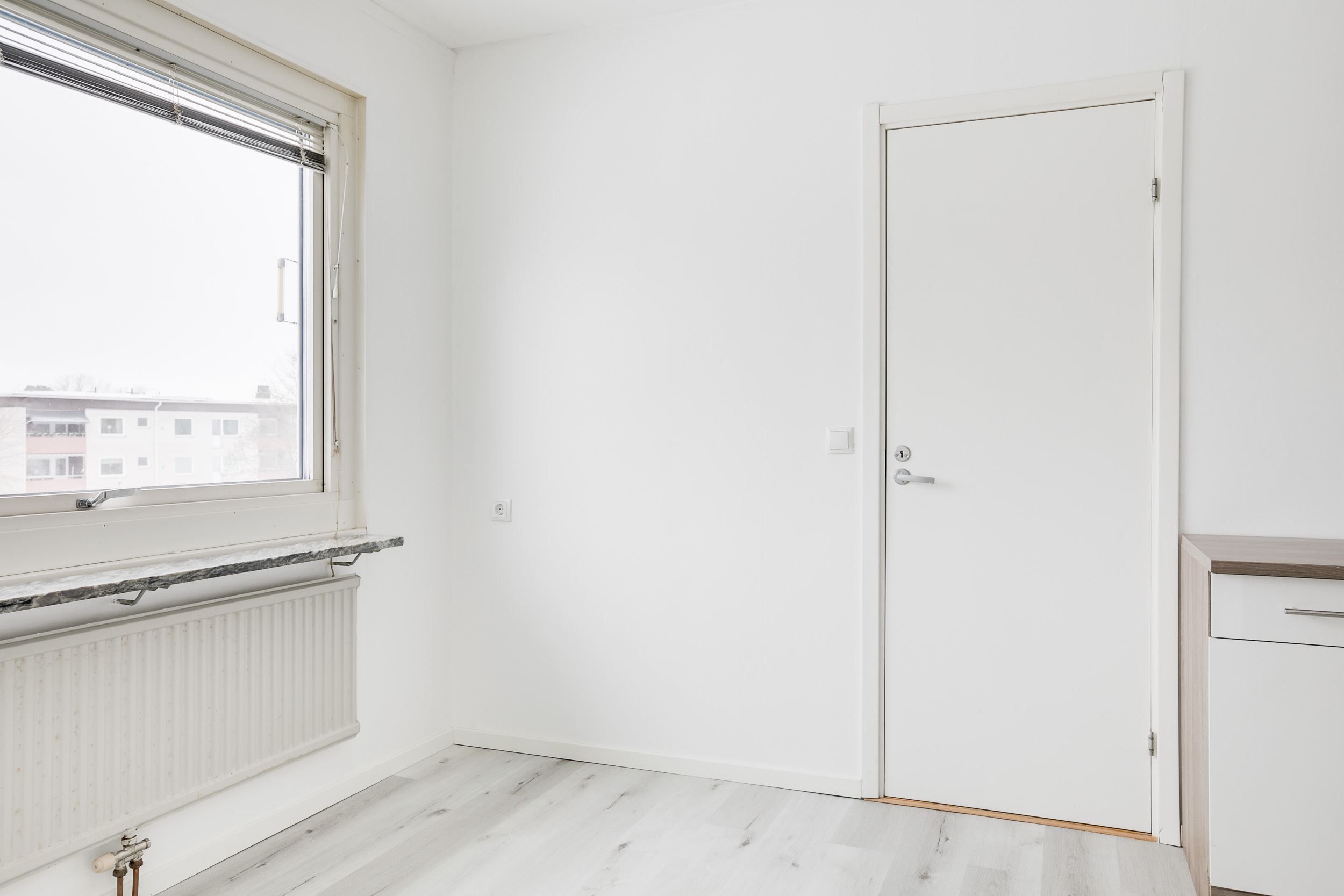 Här bor du i en lättillgänglig lägenhet två trappor upp som har genomgått mindre renovering under 2024. Här välkomnas du av ljusa golv och ytskikt med rymliga rum och sällskapsytor. I samband med hallen hittar du ingång till två sovrum, vardagsrum, kök samt ett mindre kontor/ barnrum. Helkaklat badrum med tvättmaskin. Ingång till den trevliga balkongen har du via vardagsrummet.
