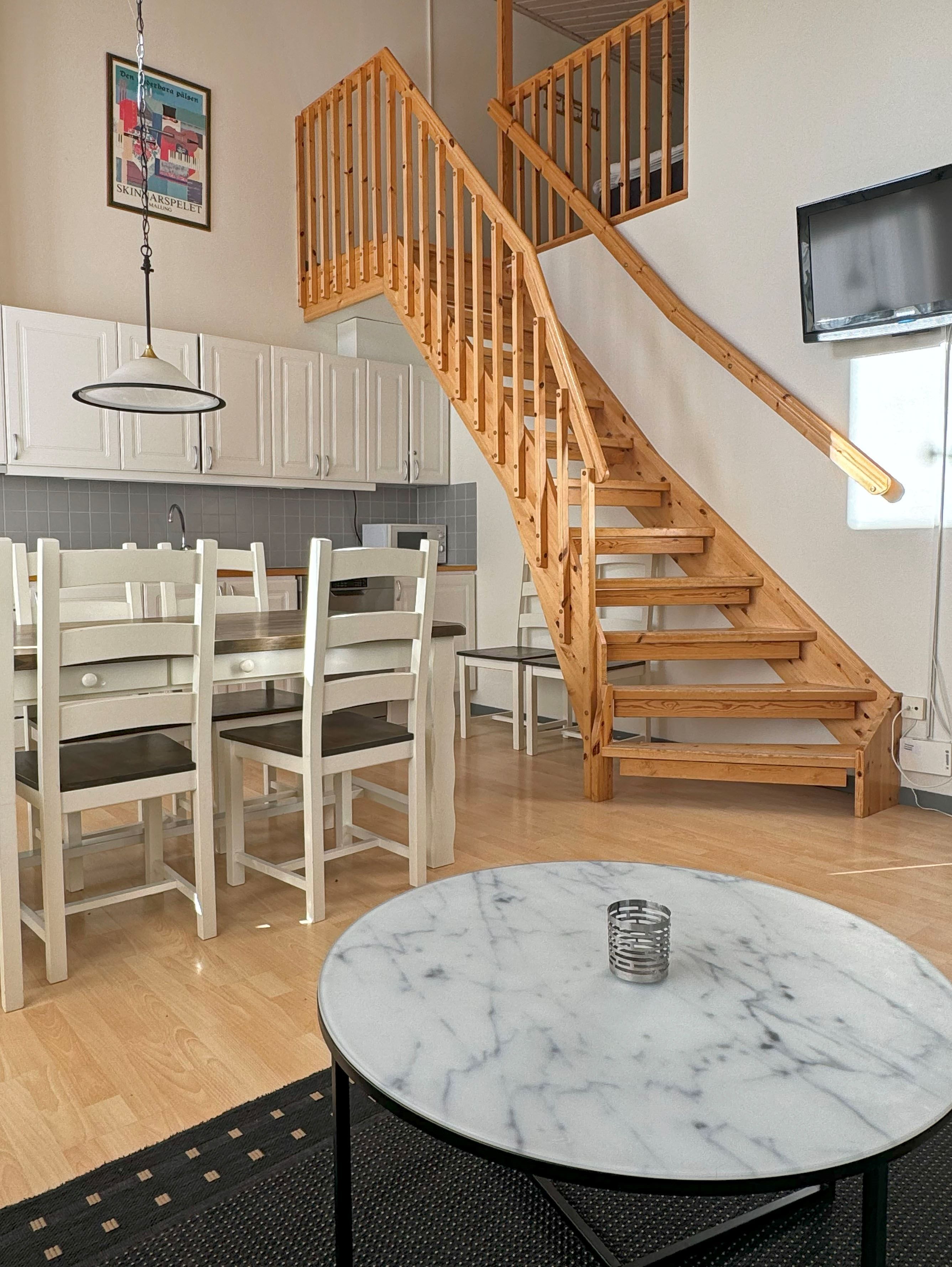 Lägenheten är belägen mitt i backen med bästa Ski in and Ski out-läge, vilket innebär att du kan glida direkt ut på pisten utan onödiga förflyttningar. Efter en härlig dag i backen kan du koppla av och njuta av ett uppfriskande dopp i utomhus spabadet. På den soliga altanen kan du avnjuta en god lunch eller bara ta in den fantastiska utsikten över fjällen.