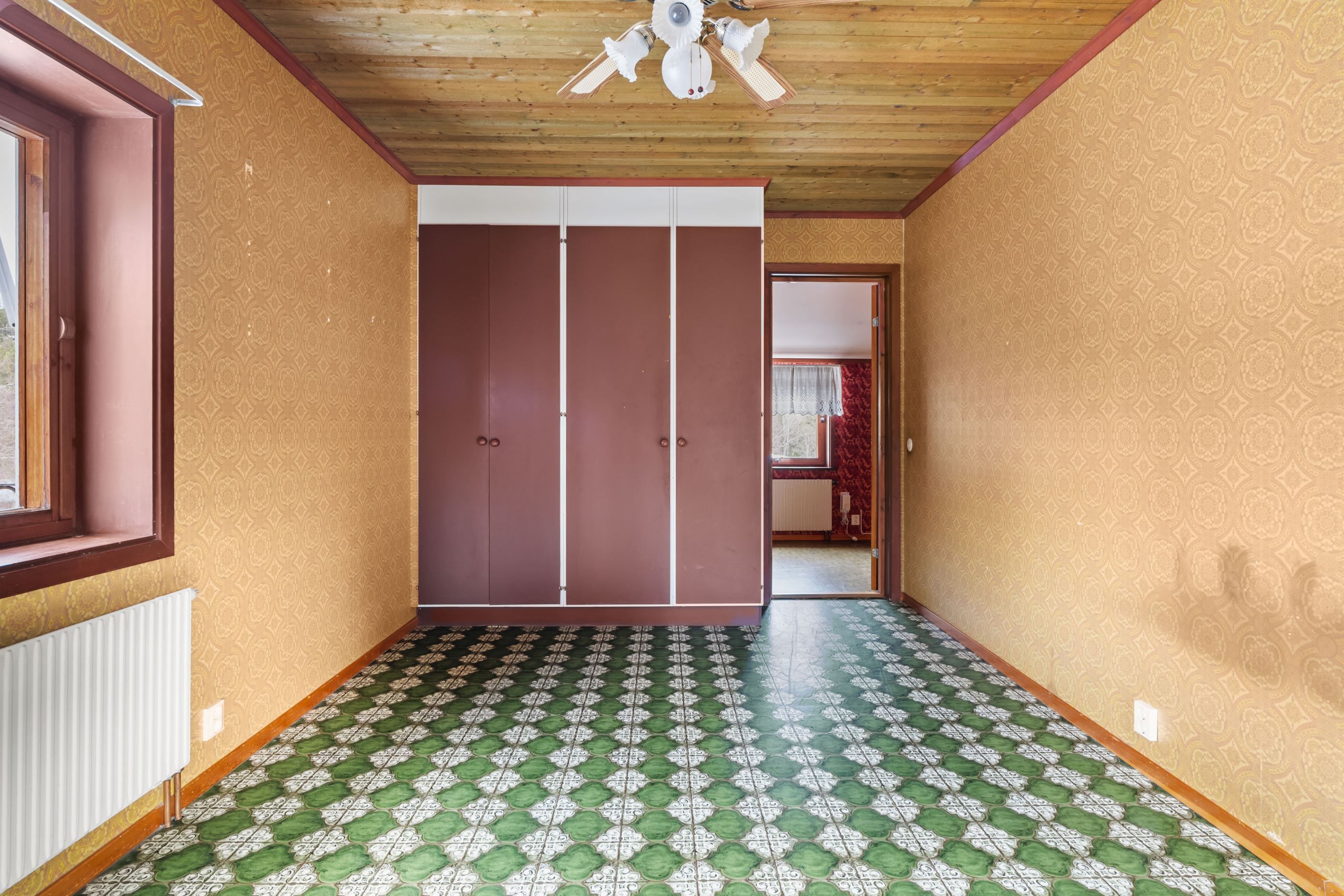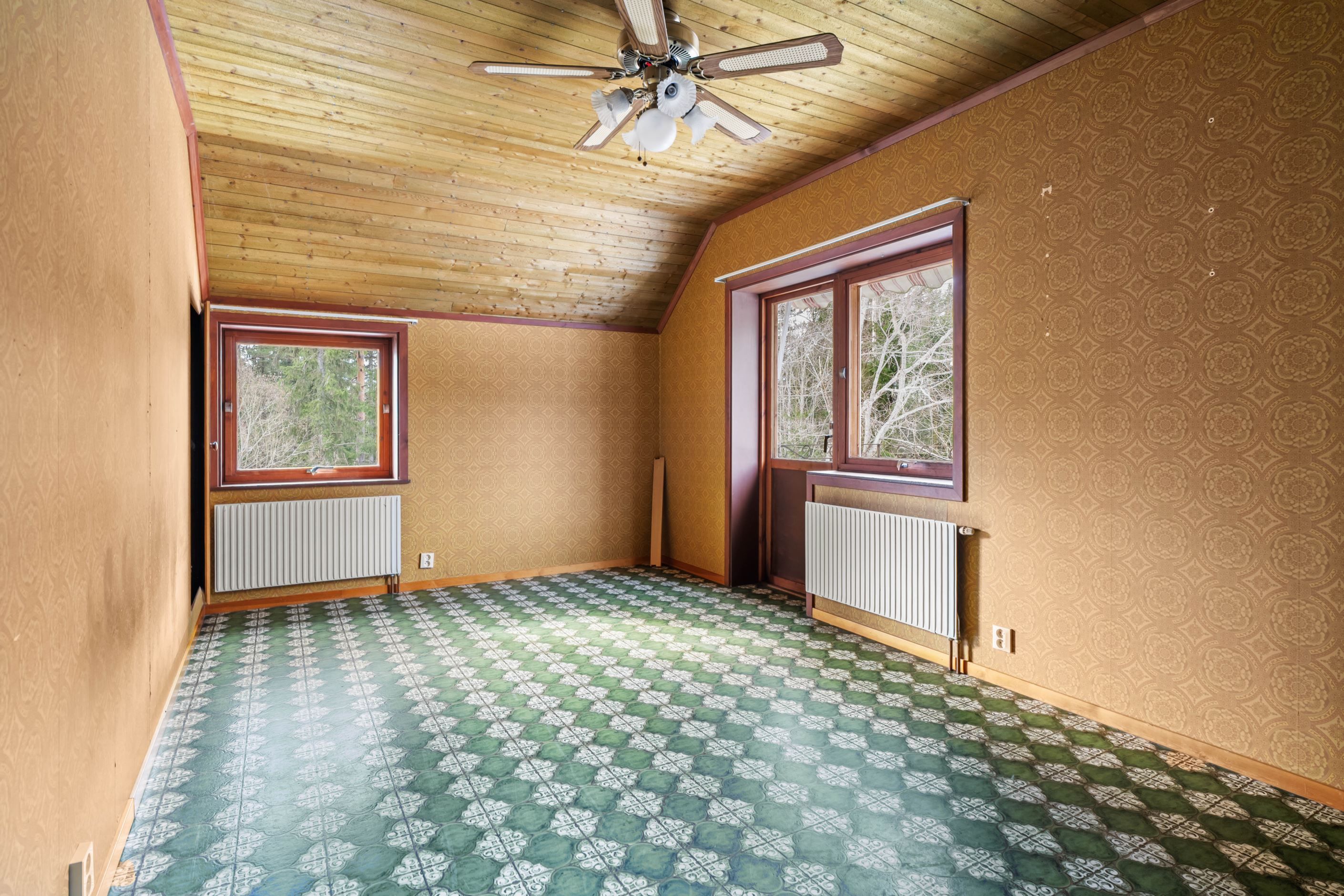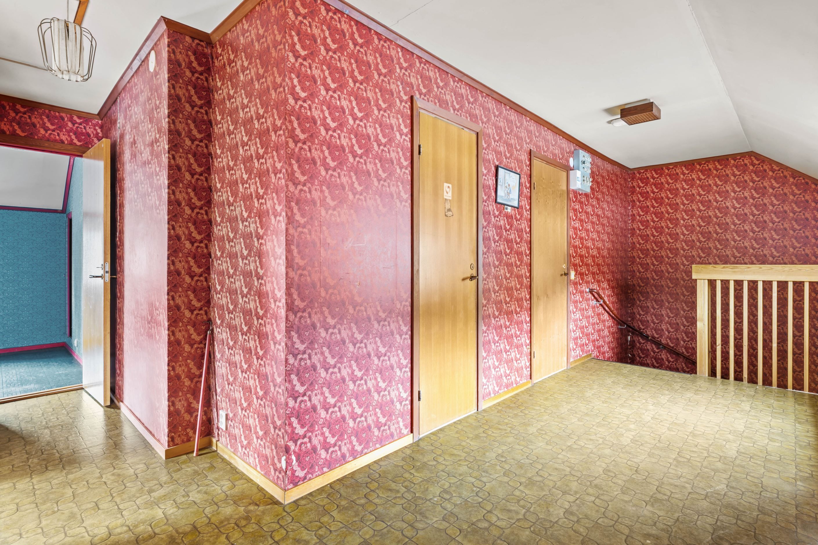 Övre plan bjuder på en charmig tidskapsel från 70-talet med originaldetaljer bevarade, vilket ger en unik möjlighet att varsamt renovera efter smak och stil.