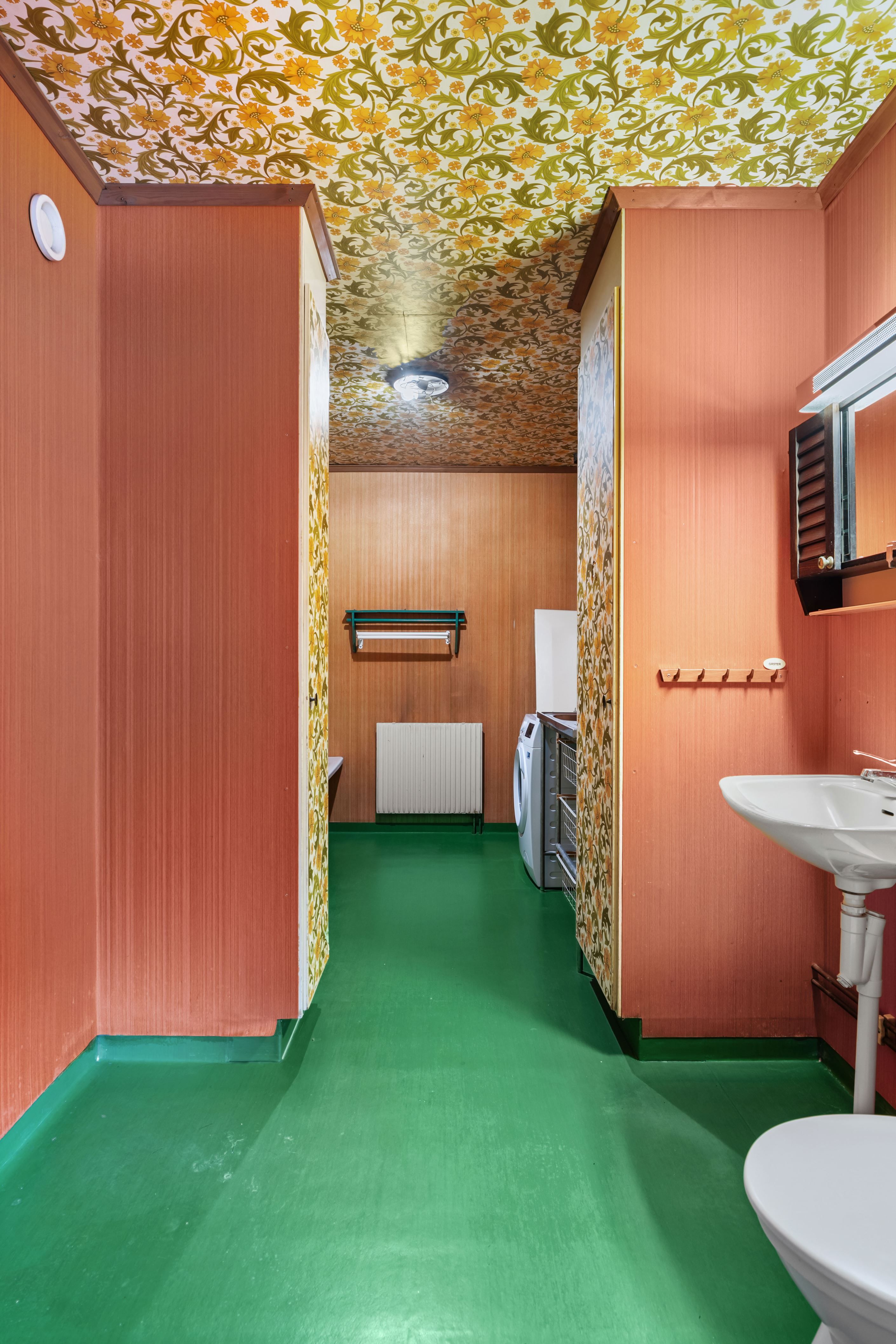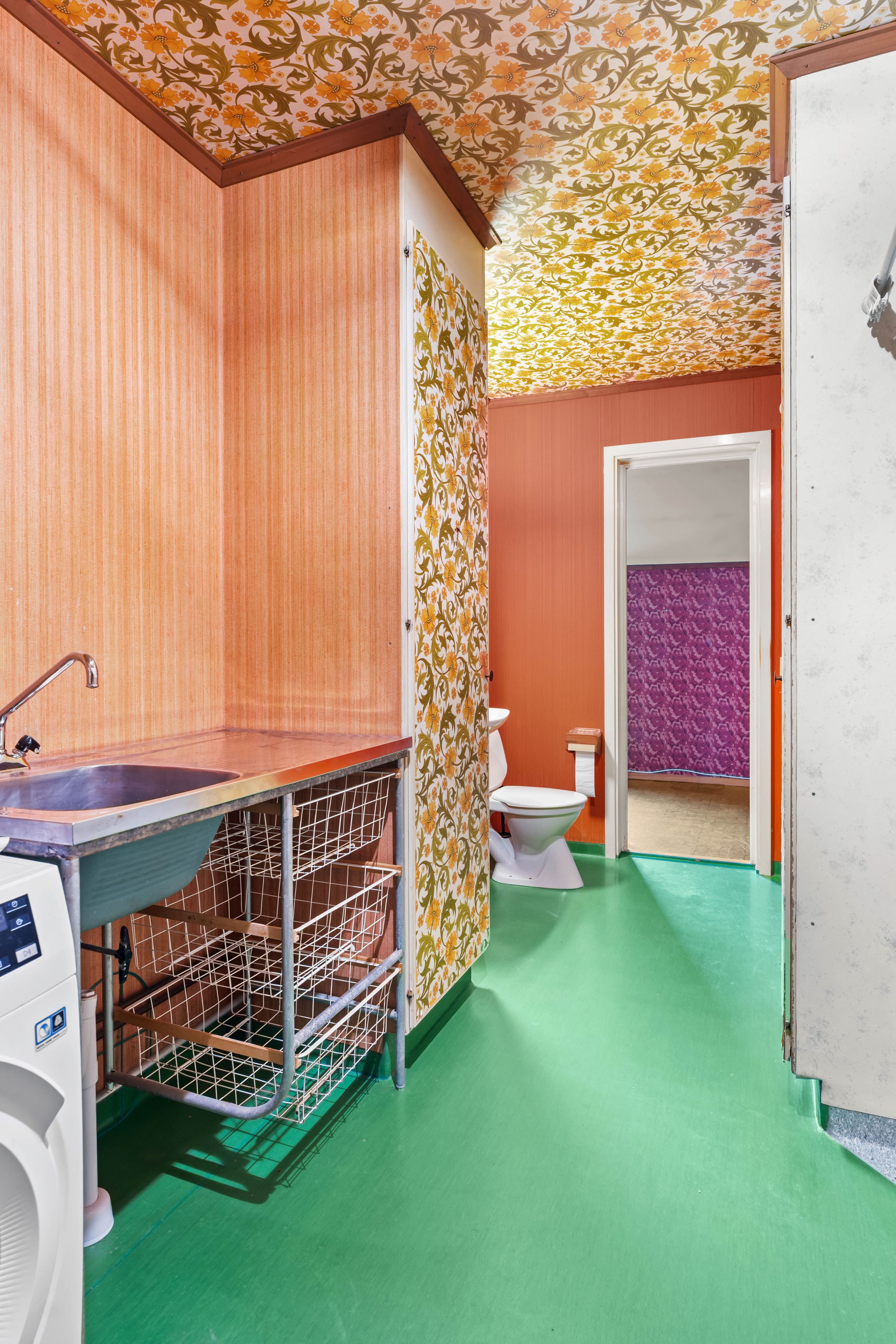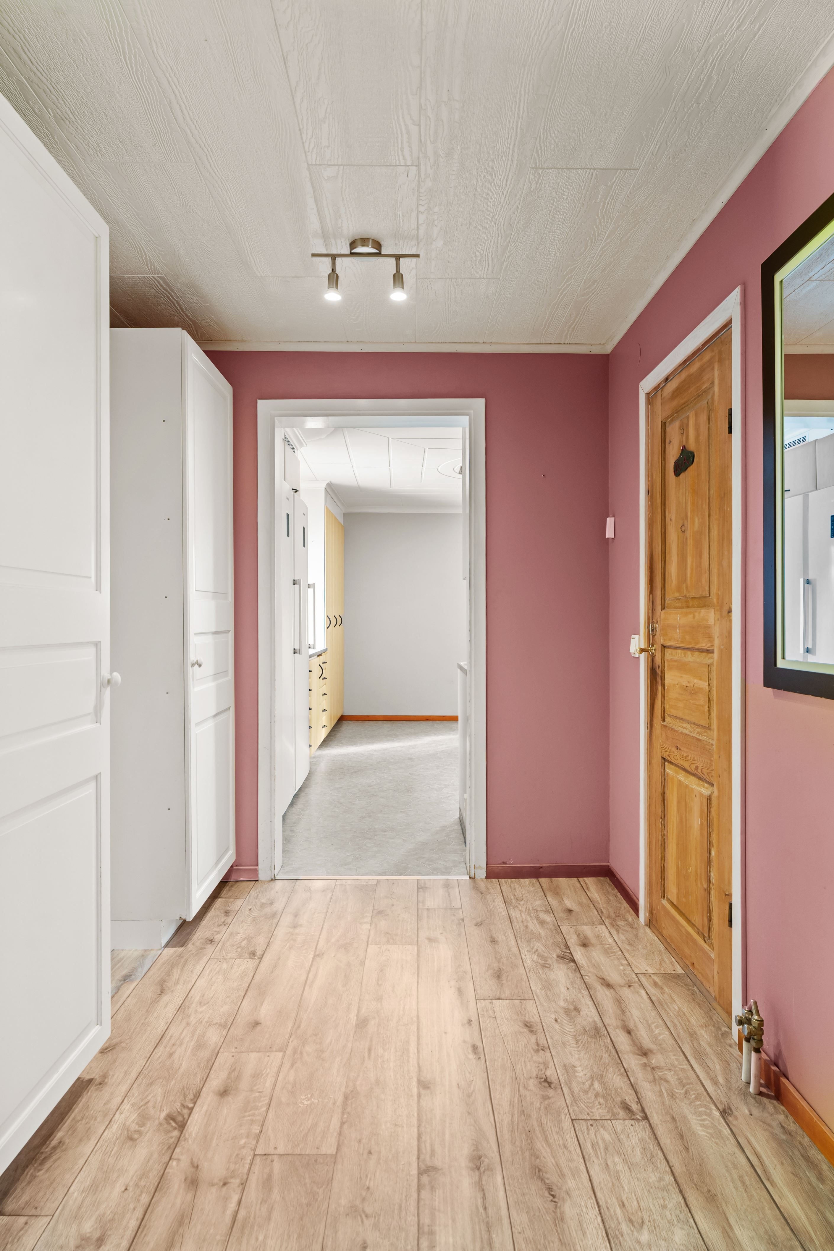 Övre plan bjuder på en charmig tidskapsel från 70-talet med originaldetaljer bevarade, vilket ger en unik möjlighet att varsamt renovera efter smak och stil.