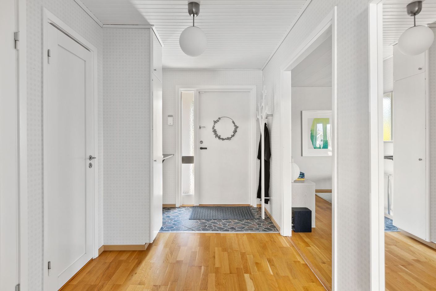 Denna enplansvilla i vinkel erbjuder ett trappfritt, lättillgängligt boende med genomtänkt planlösning och smakfulla renoveringar i ljusa färger. Nästan alla rum har vackert ekgolv som skapar en varm och harmonisk känsla. Master bedroom ligger i direkt anslutning till vardagsrummet, medan husets bortre del rymmer tre ytterligare sovrum samt en gemensam, social yta – perfekt för barnen och deras vänner att leka och umgås i. Planlösningen ger tydliga zoner för både avskildhet och social samvaro.