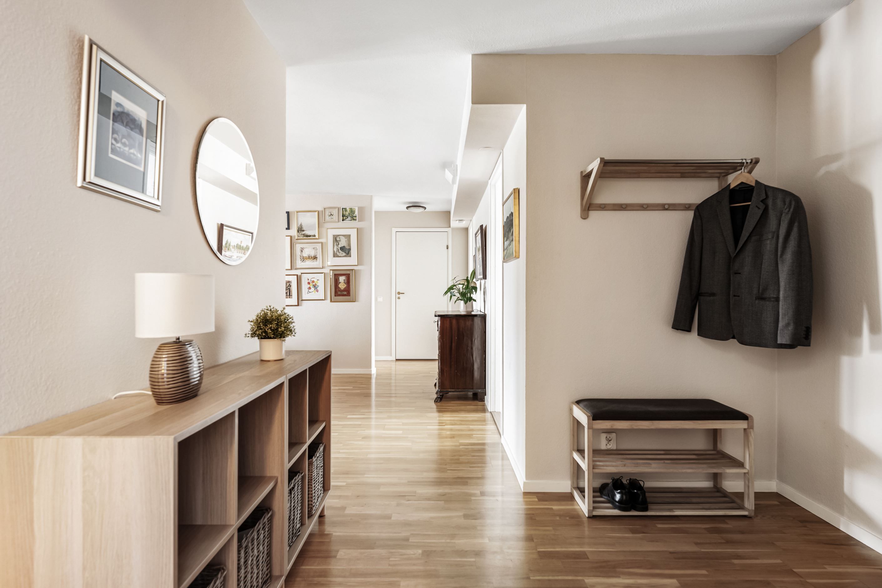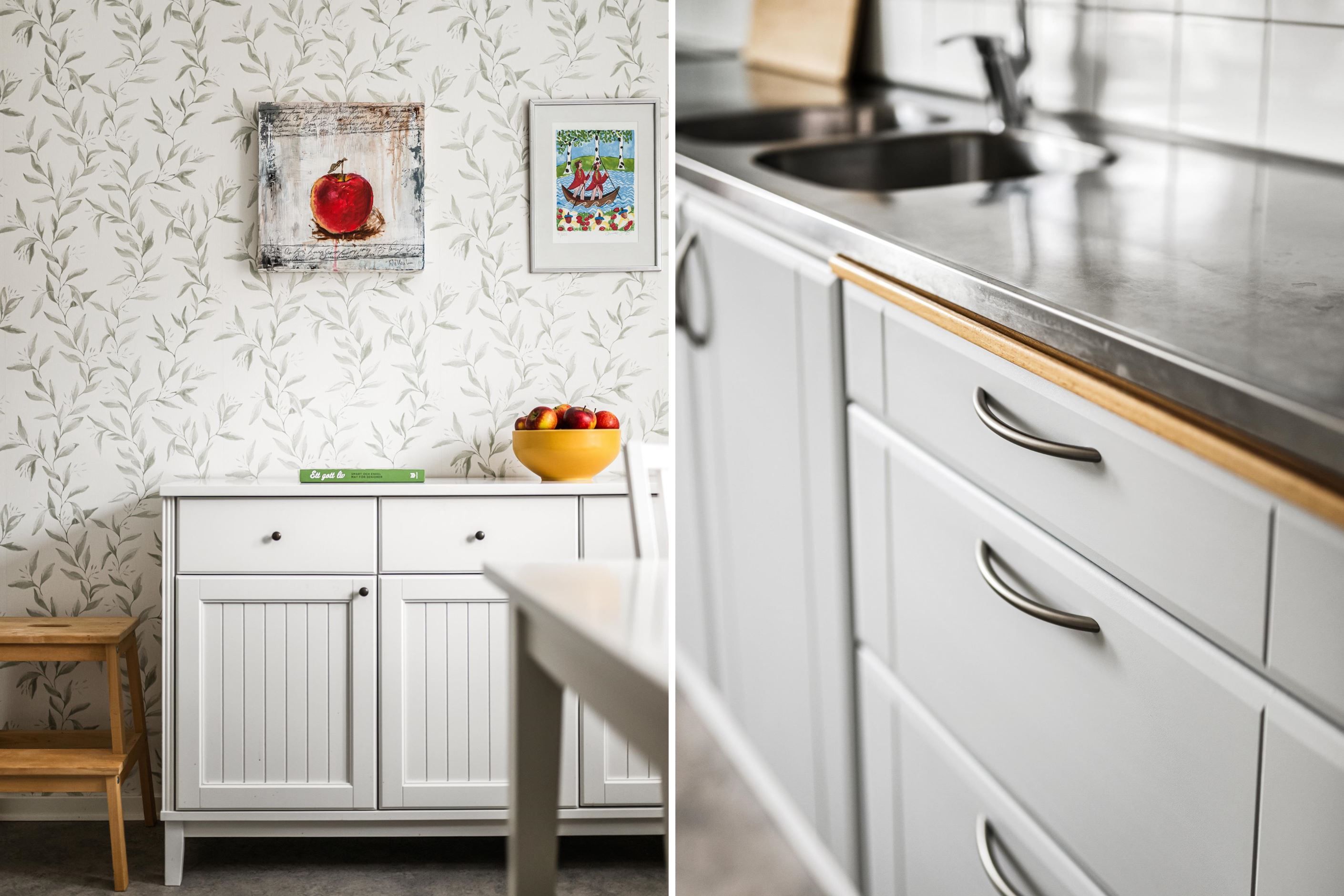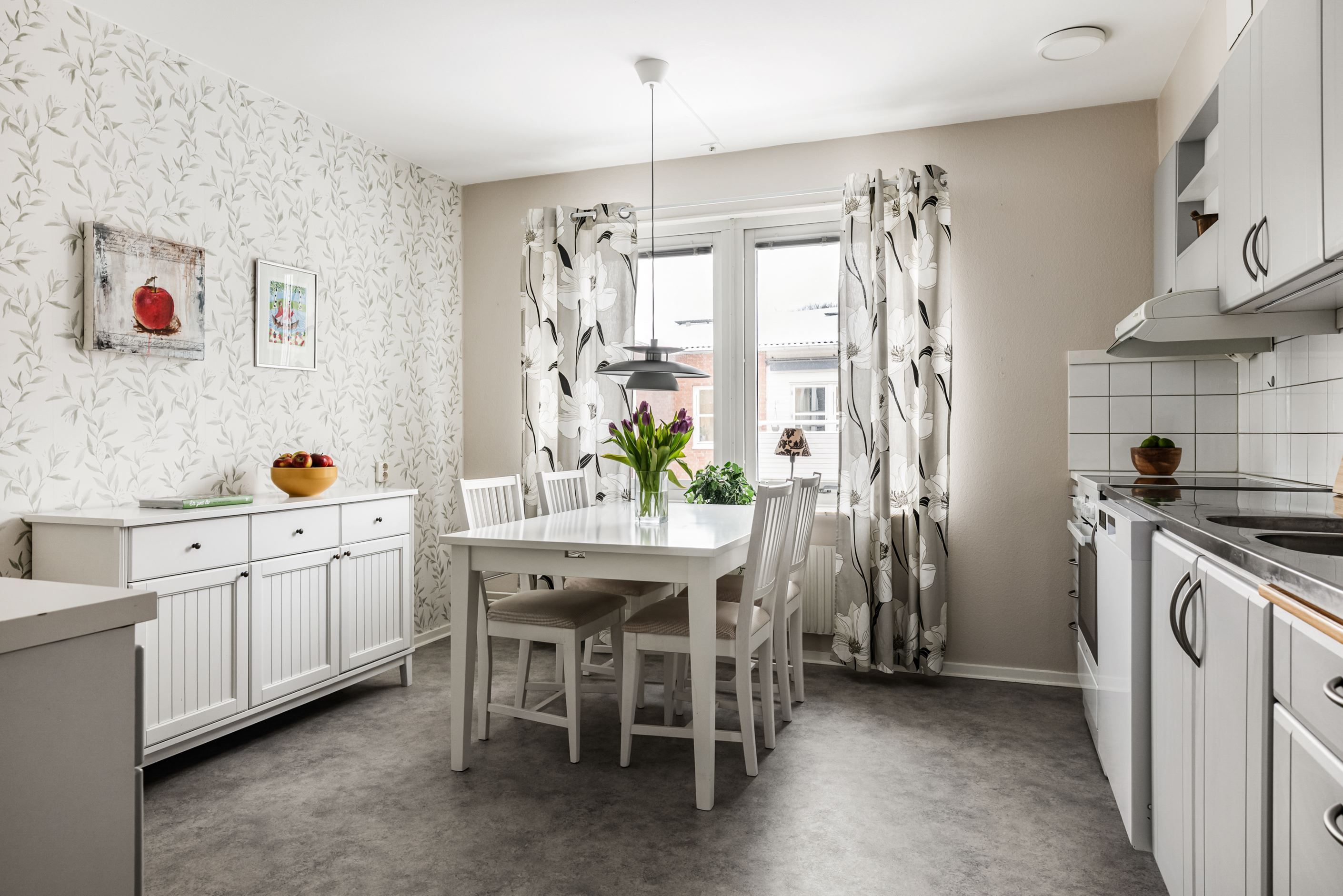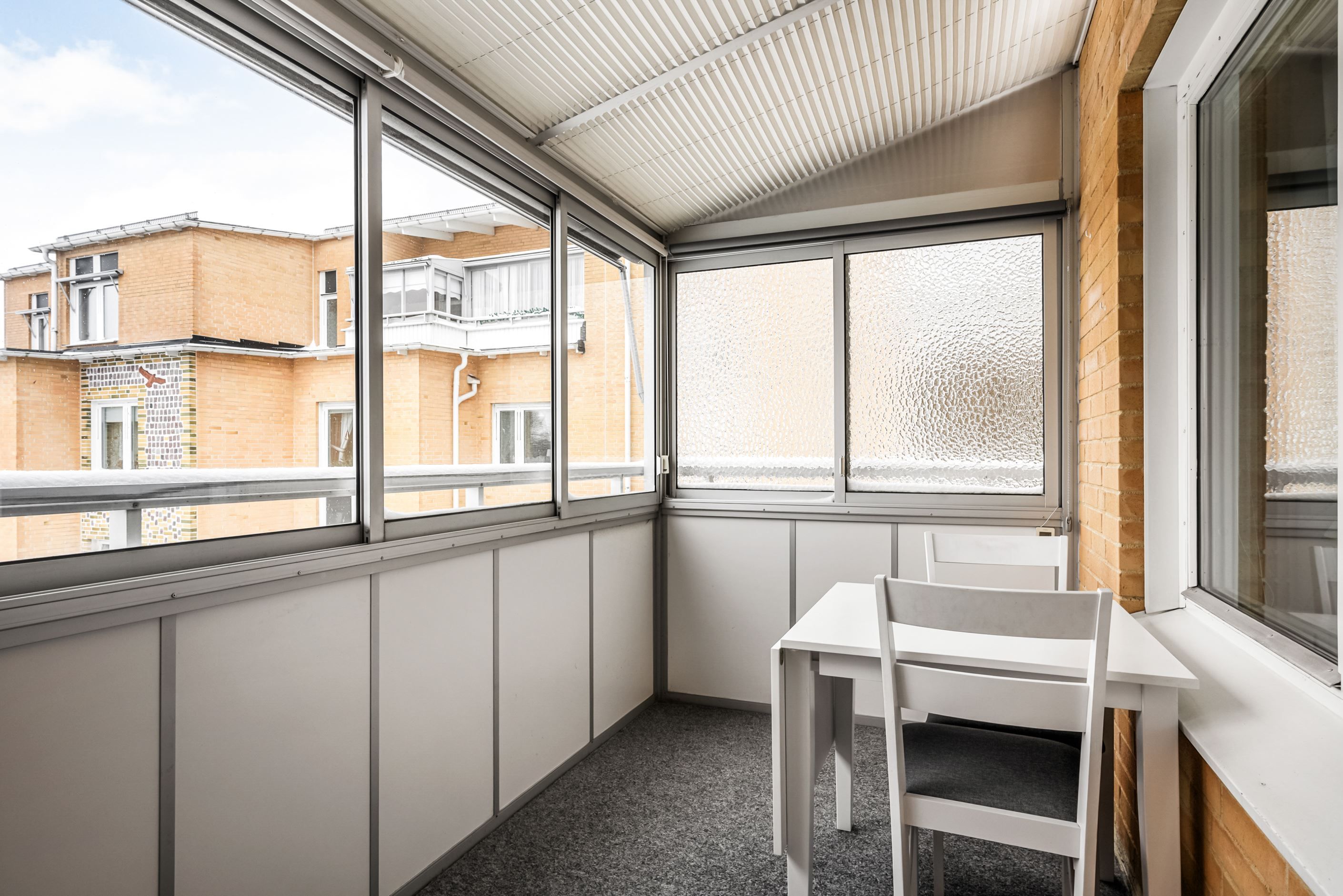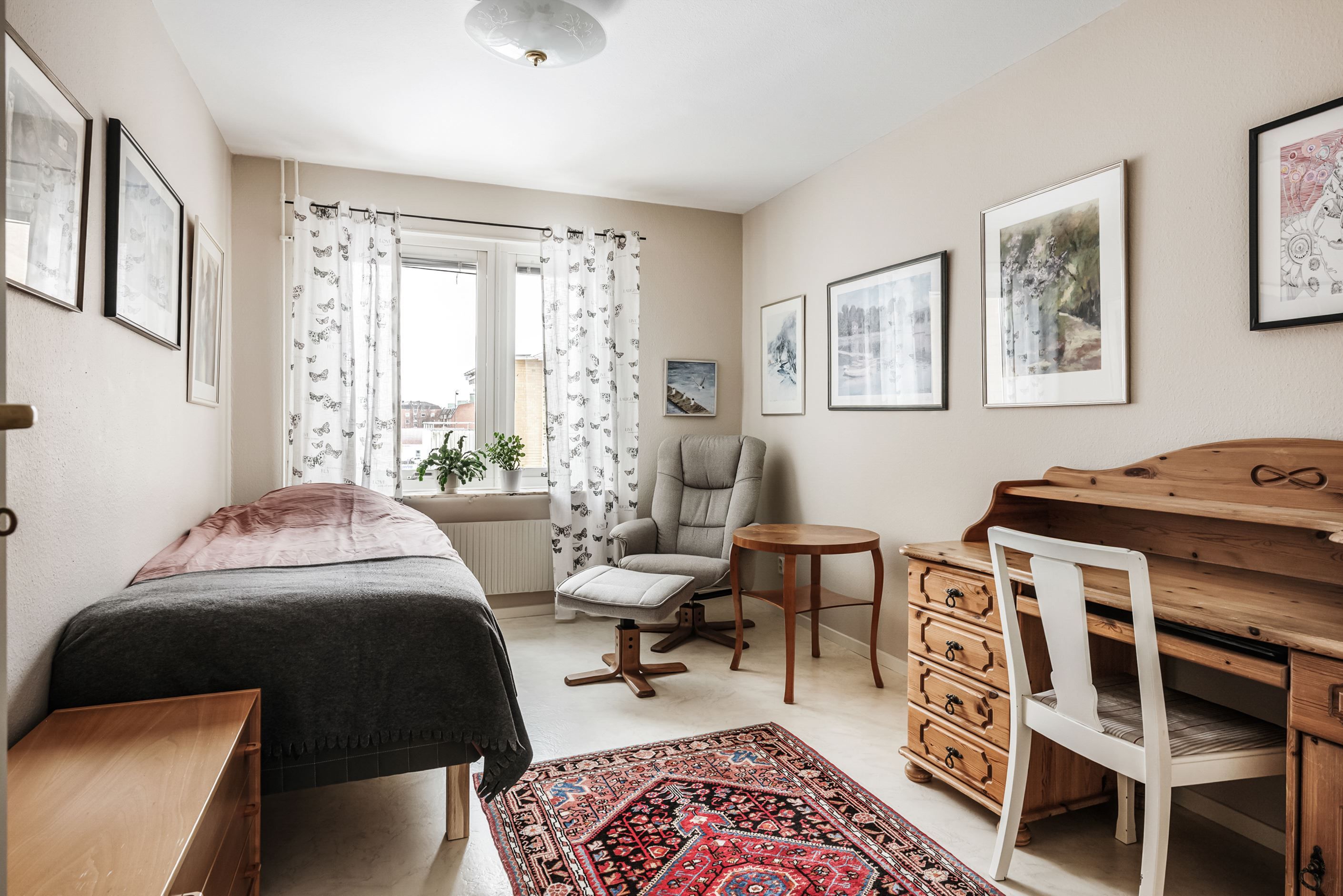Bostaden är välplanerad och nås smidigt via hiss till våningsplanet. Redan i hallen möts du av generösa ytor och ett välkomnande intryck. Till höger finns ett renoverat badrum utrustat med tvättmaskin som förenklar vardagen. Vardagsrummet är luftigt och lättmöblerat, med utgång till en inglasad balkong som vetter mot föreningens lugna och gröna innergård. Köket är rymligt och erbjuder gott om plats för en större matgrupp. Lägenheten disponeras vidare med två sovrum placerade i varsin del av bostaden, med en praktisk klädkammare emellan.