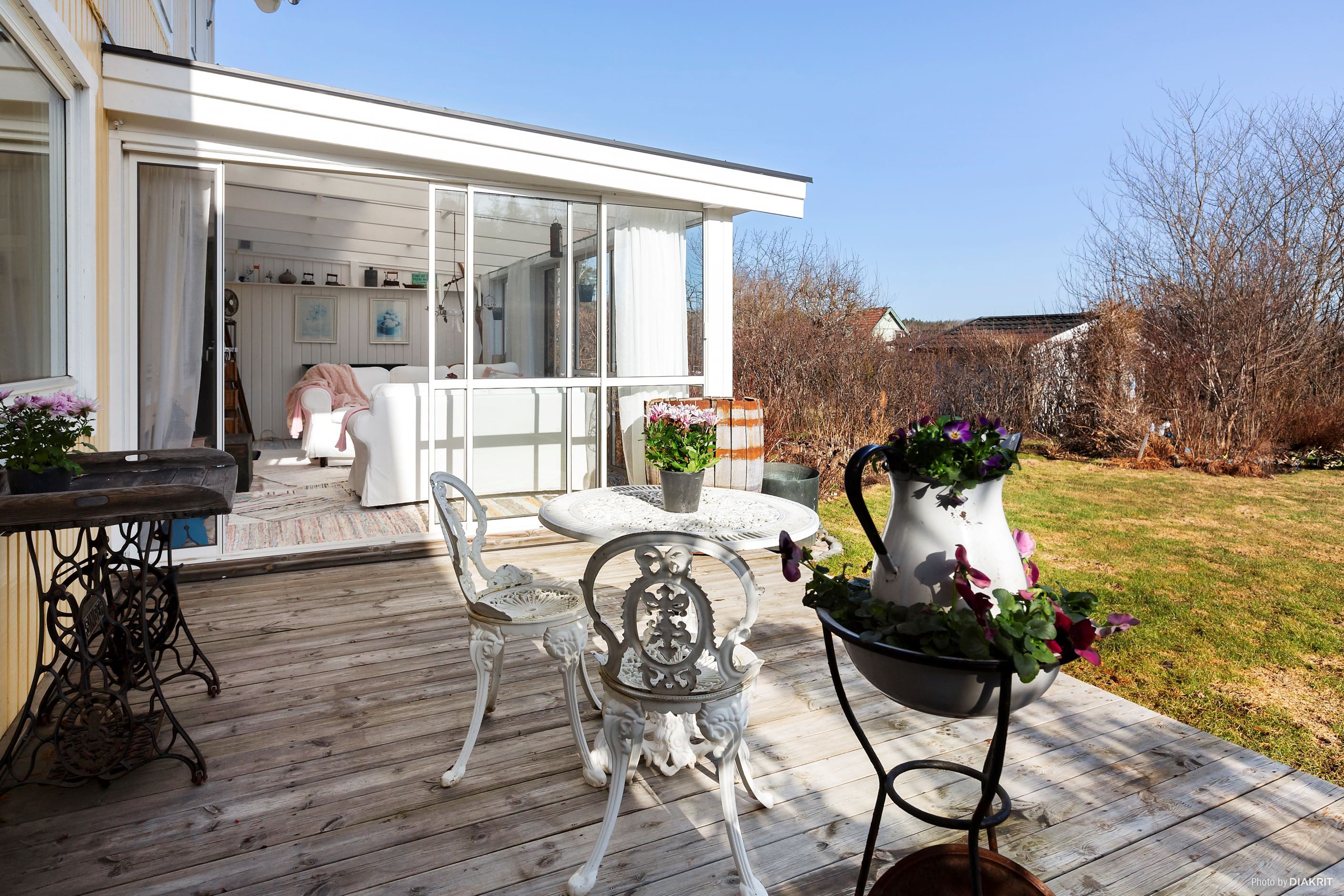 Altan/uteplats i syd-/sydvästläge, med utgång från köket