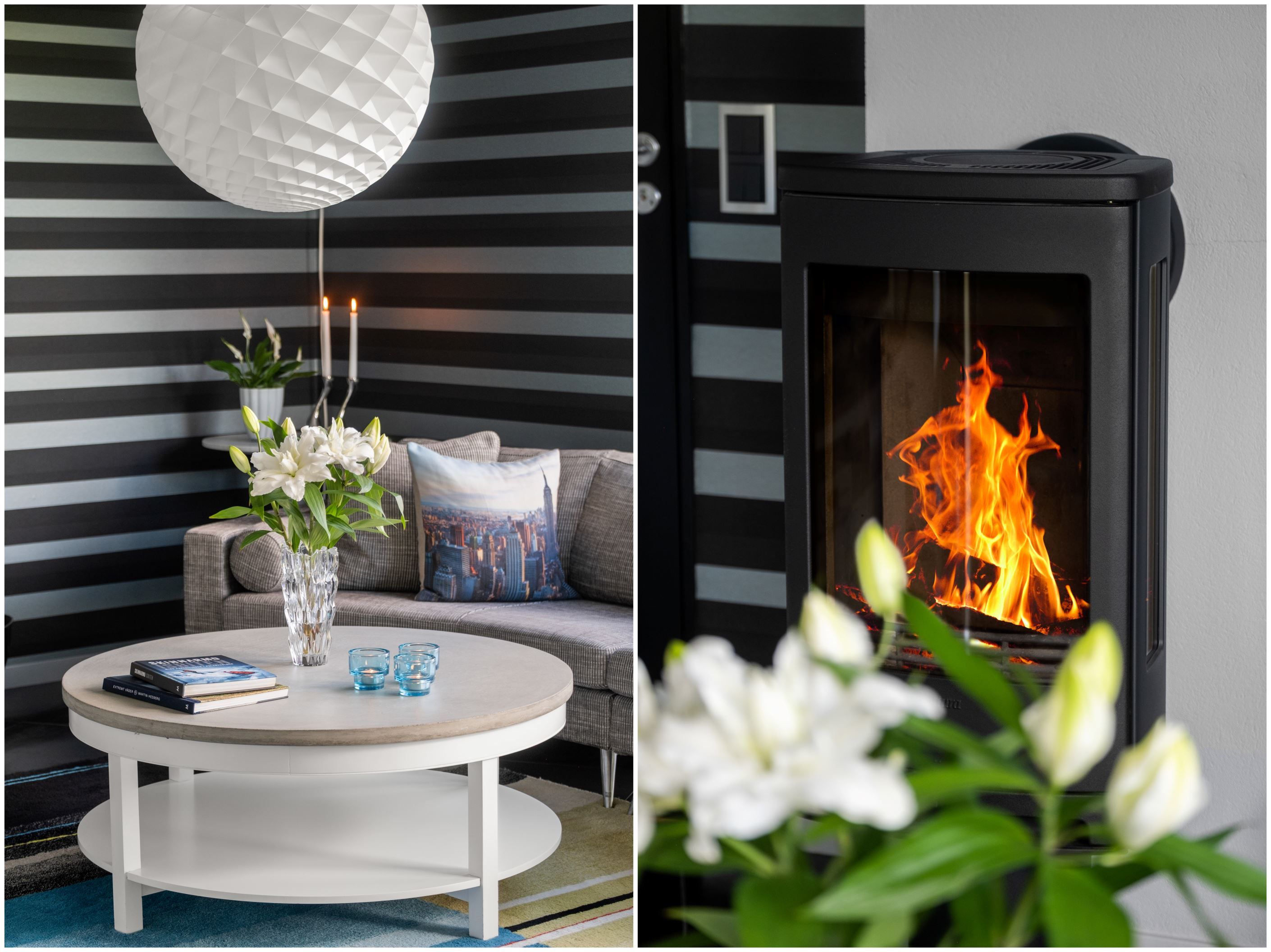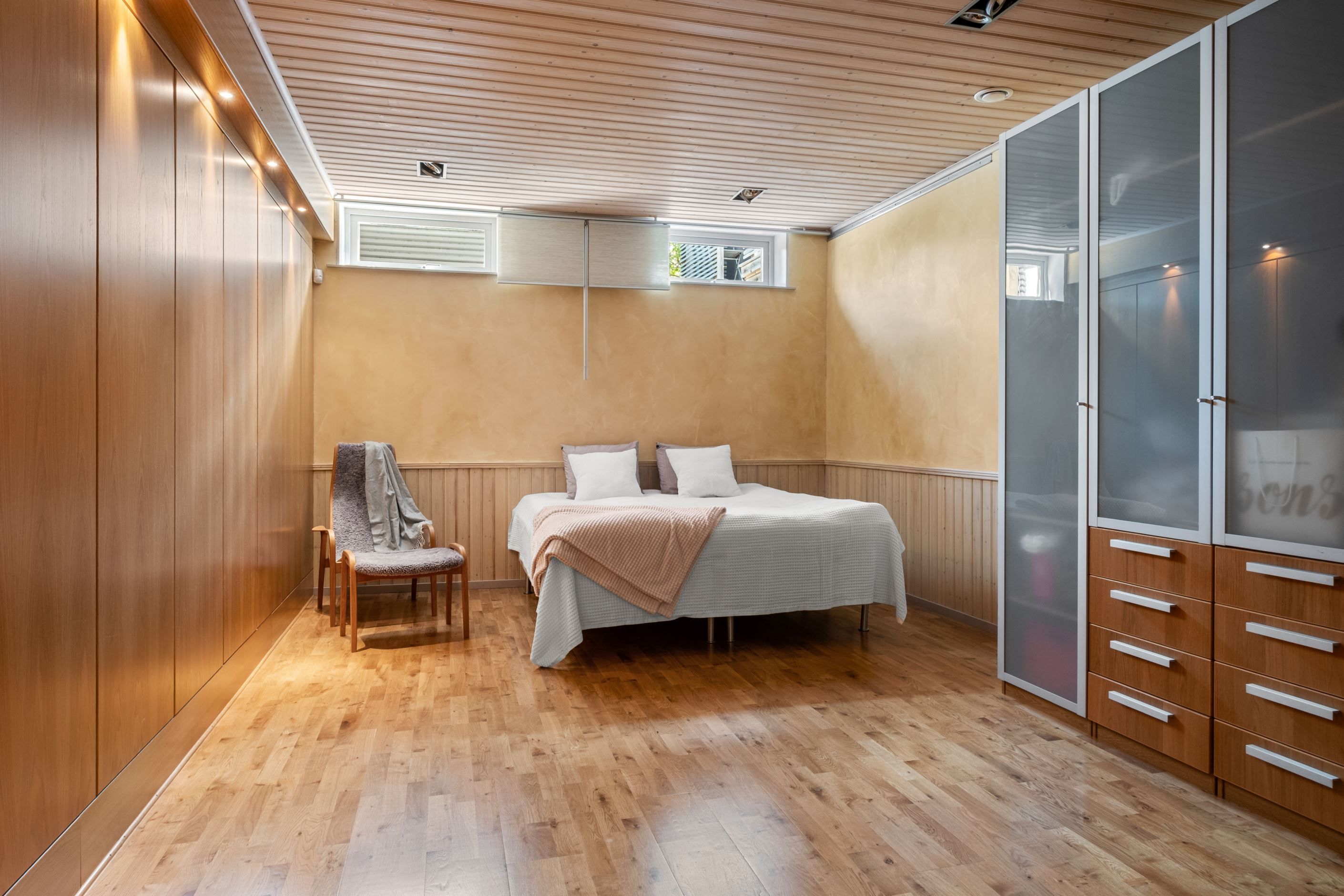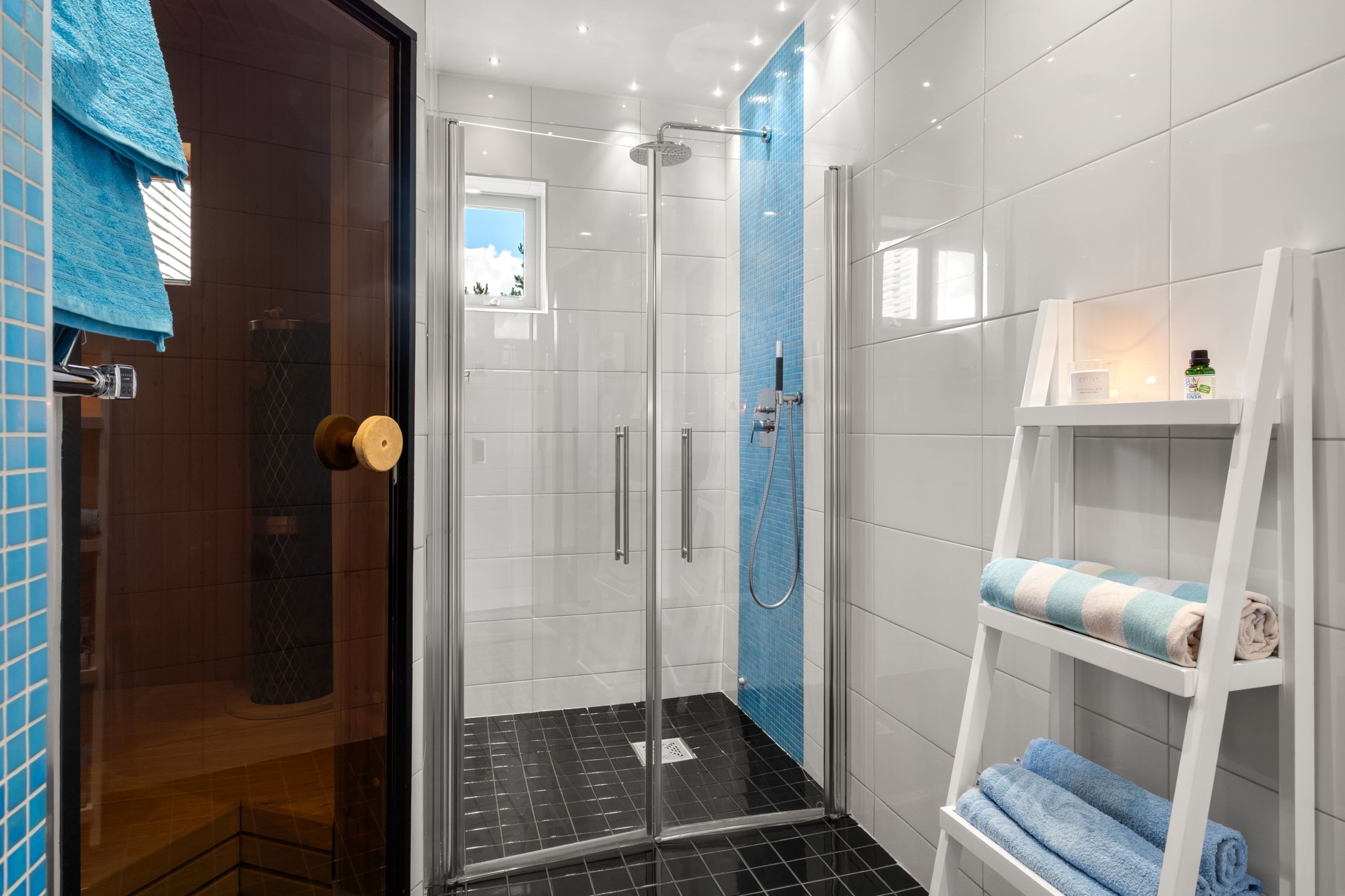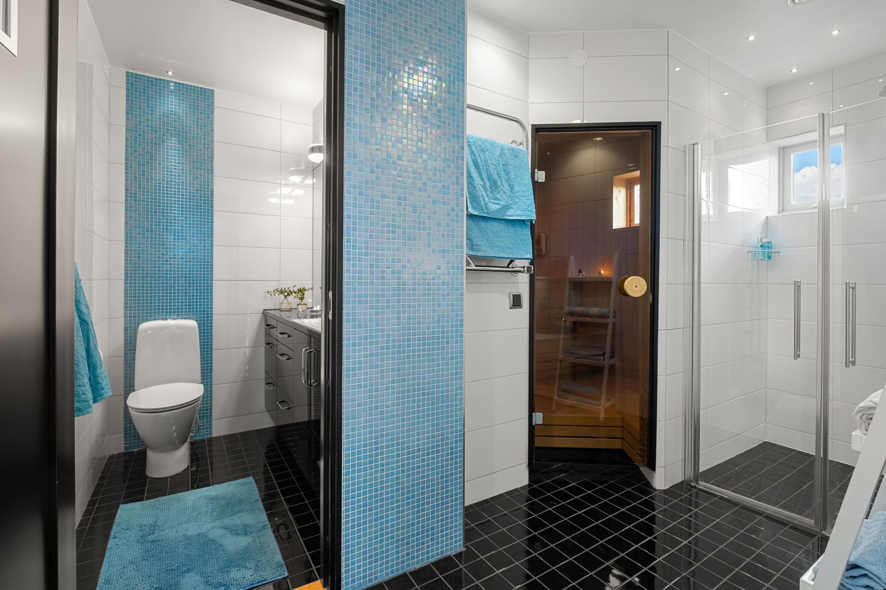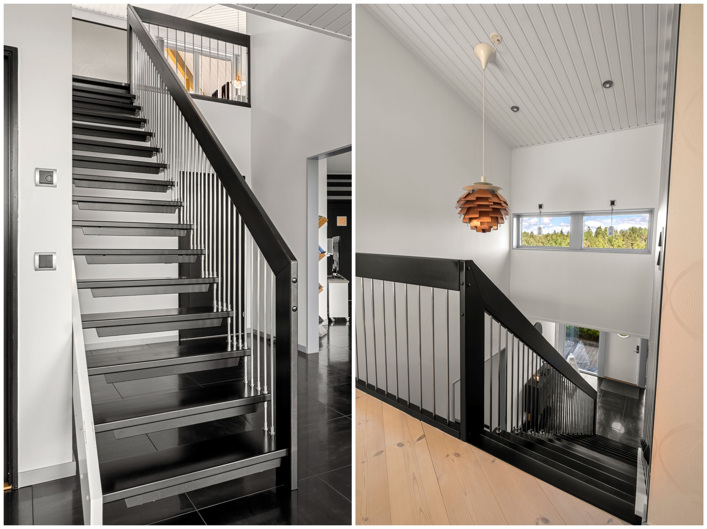 Bostadens 256 kvm är genomtänkt disponerade med tydlig separation mellan sociala och privata ytor. Entréplanet erbjuder två sovrum, ett inbjudande allrum med braskamin samt en generös badrumsavdelning med dusch och bastu – en självklar plats för avkoppling. Övre plan utgör hemmets hjärta med en öppen och luftig planlösning mellan kök och vardagsrum, där stora fönsterpartier tar tillvara på ljuset och utsikten. Här bidrar en täljstenskamin med både karaktär och värme. Vidare finns tre sovrum samt ytterligare ett stilrent badrum.