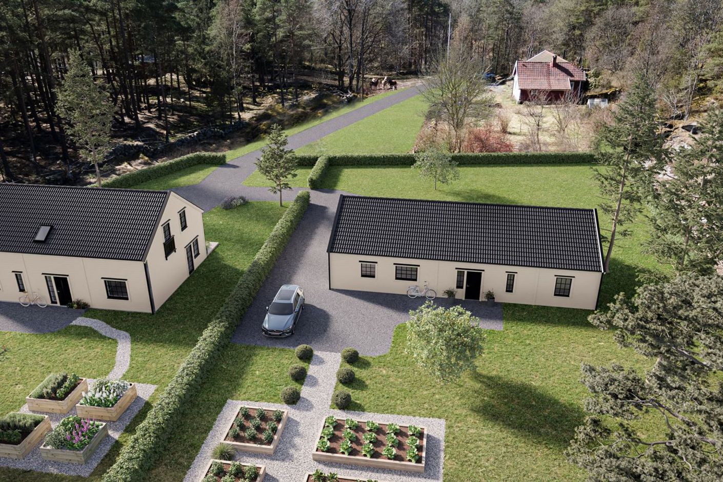 Tomterna är knutna till A-hus. Förhandsbesked finns. Husförslag och kalkyler finns att ta del av hos A-hus.