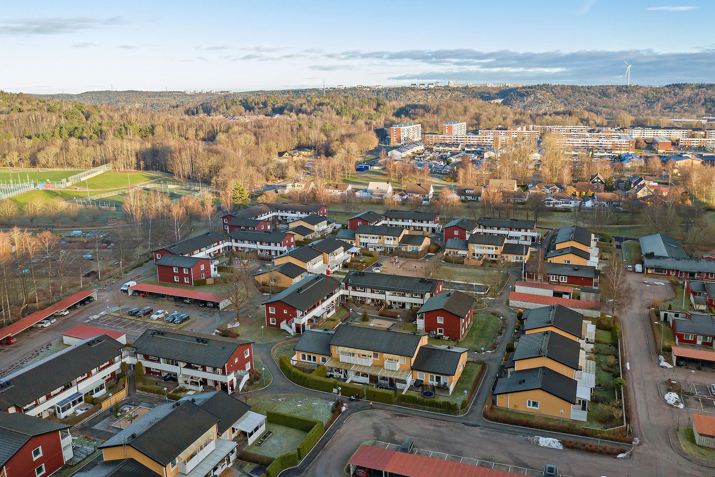 Här bor du i en trygg och stabil förening med naturen runt knuten. Området erbjuder fina promenadstråk, bra löpspår, utegym och ridskola. Bostaden ligger endast ett stenkast från Kärra centrum med dess breda serviceutbud. I närheten finns även förskola, skola och goda bussförbindelser in till city. Ett perfekt boende för dig som vill kombinera närhet till stan med ett lugnt och barnvänligt område.