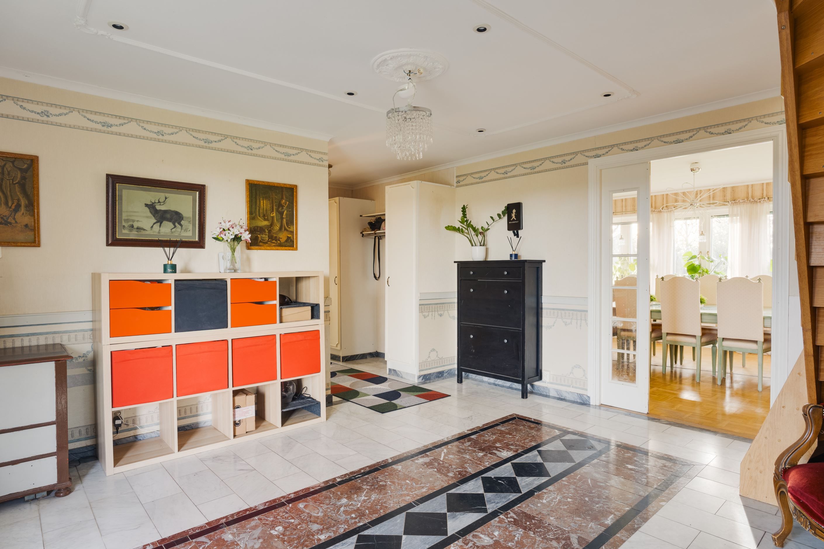 Välkommen till Propptorp, härligt omgivet av öppna fält och fantastiska vyer. Här finner ni en pampig tvåplansvilla med herrgårdskänsla och intill inryms ett vältilltaget garage med verkstadsdel. I huvudbyggnaden möts ni av en härlig entré med marmorgolv, golvvärme och smakfulla ljusa väggar. Intill hallen finner ni köket med ek-luckor och bänkskivor i sten och från köket är det utgång till det inglasade uterummet. Fantastiskt vardagsrum längst med huset baksida och intill finns ett avdelat rum som i dag använd till tv-rum. Rymligt badrum med badkar och intill finns en praktiskt groventré med tvätt och utgång mot garaget/verkstaden. På Övre plan finner nu ett ljust och härligt allrum med fönster i två väderstreck och balkong som vetter mot de öppna fälten. Här finns tre vältilltagna sovrum och rymligt badrum med bastu. Från ena sovrummet är det utgång till stor terrass ovan uterummet. Garaget inrymmer fem platser varav en med takhöjd för tex husbil och här finns också förrådsutrymme samt verkstadsdel.