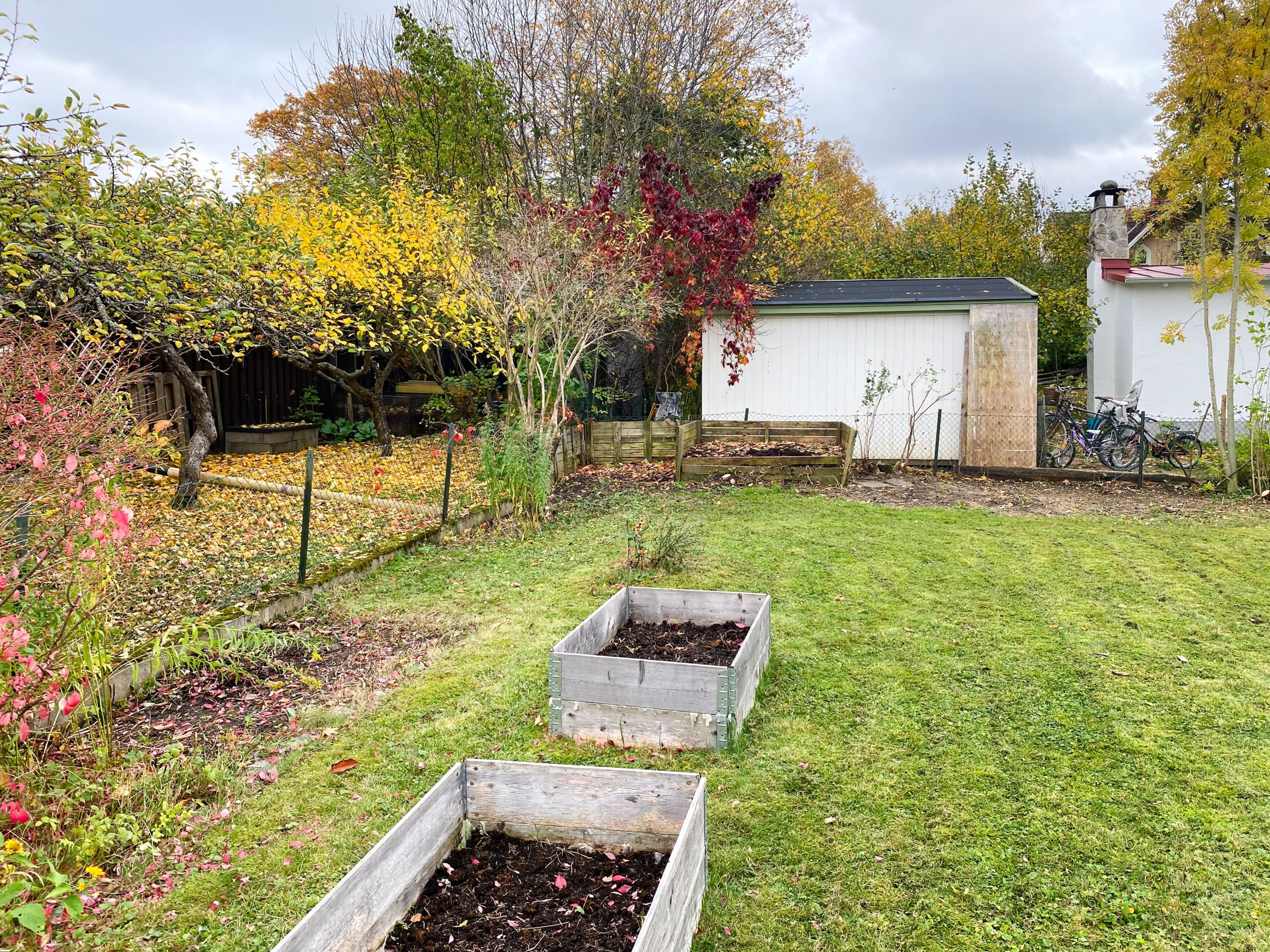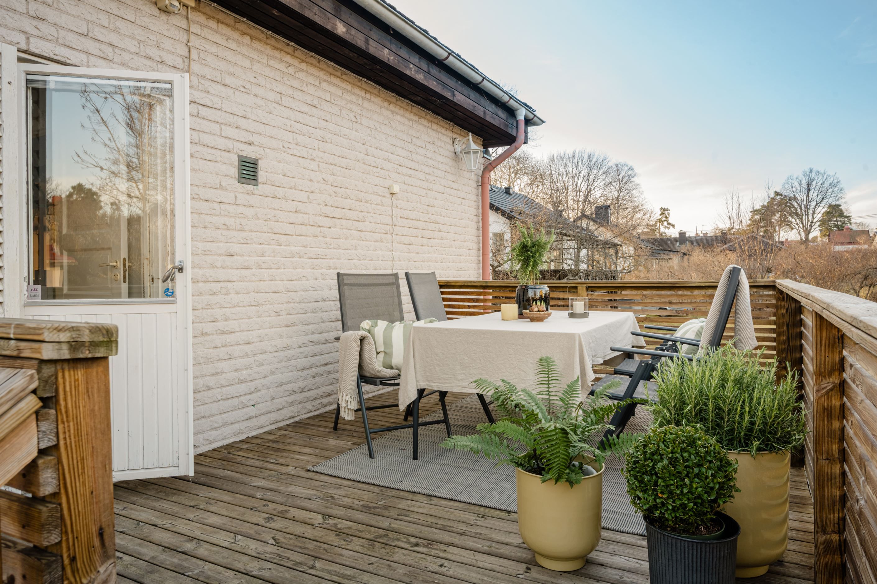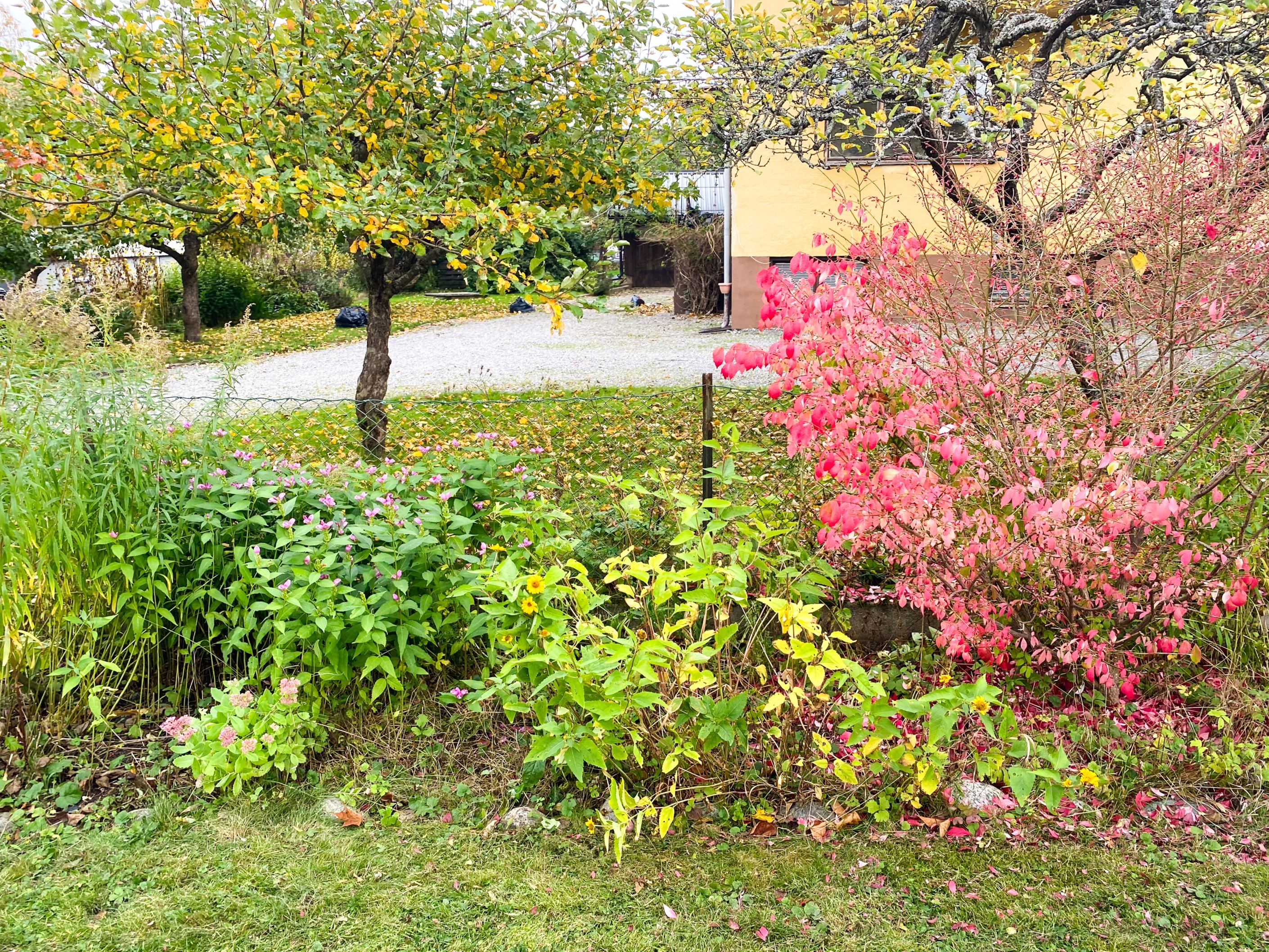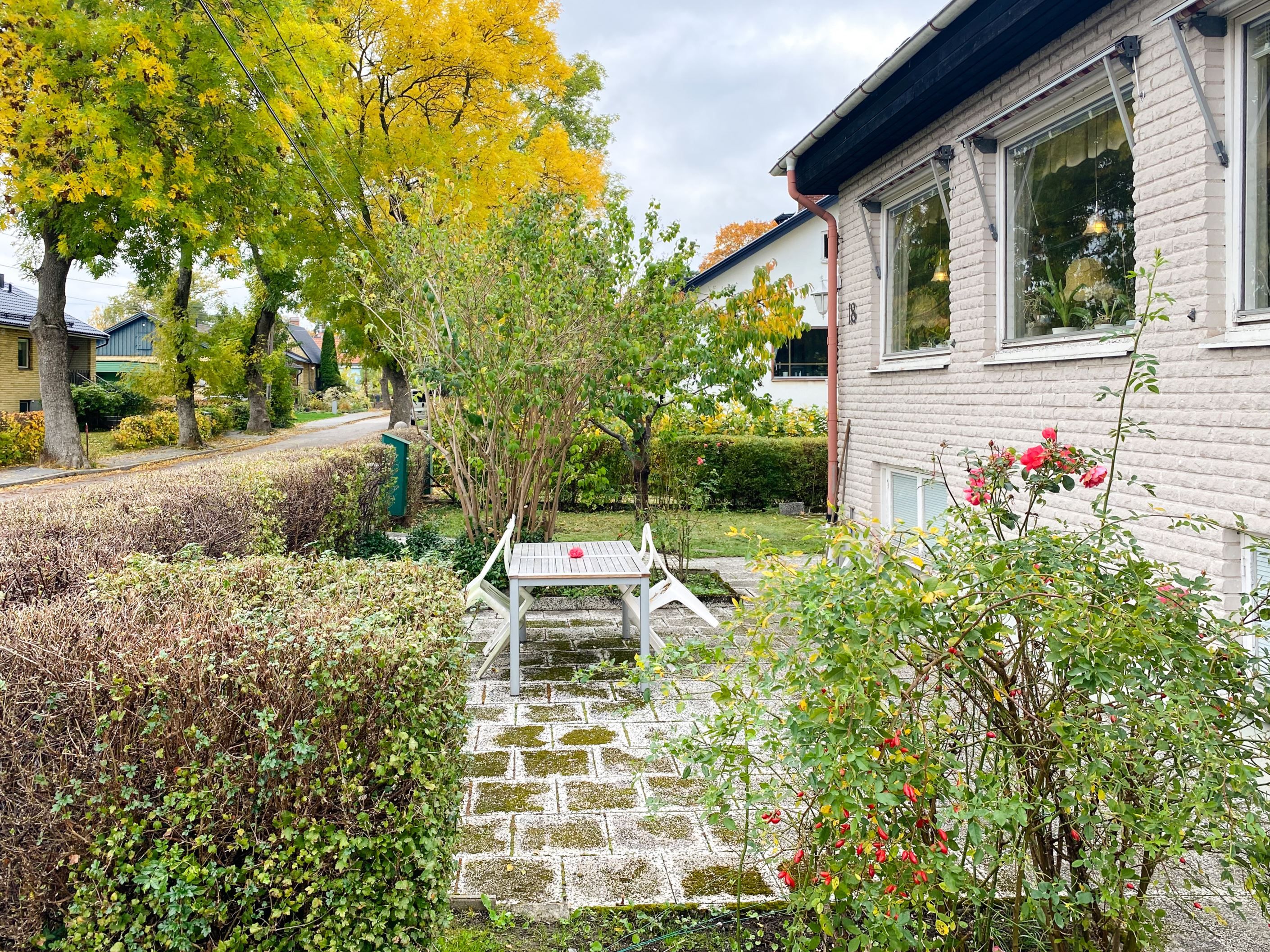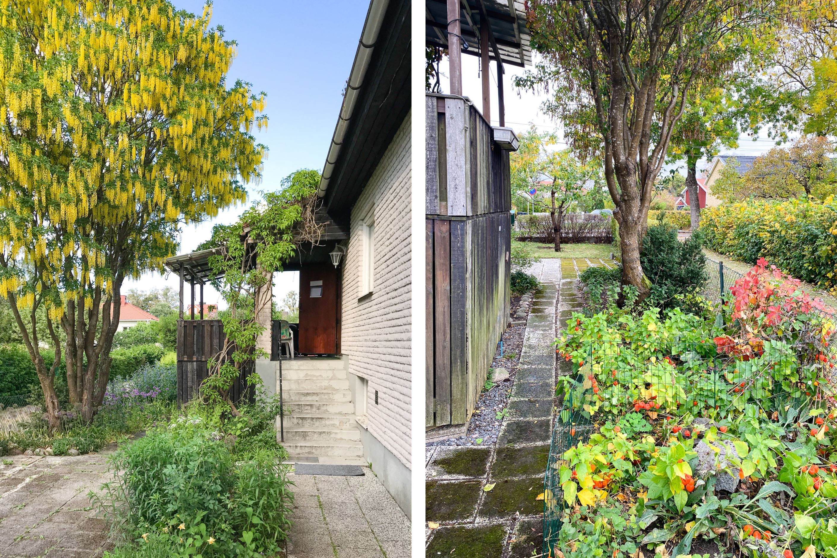Härlig trädgårdstomt om 706 kvm med goda ytor för lek och umgänge samt flera fina planteringar och fruktträd. Två trevliga altaner i olika sollägen, båda med gott om plats för sällskapsmöbler.