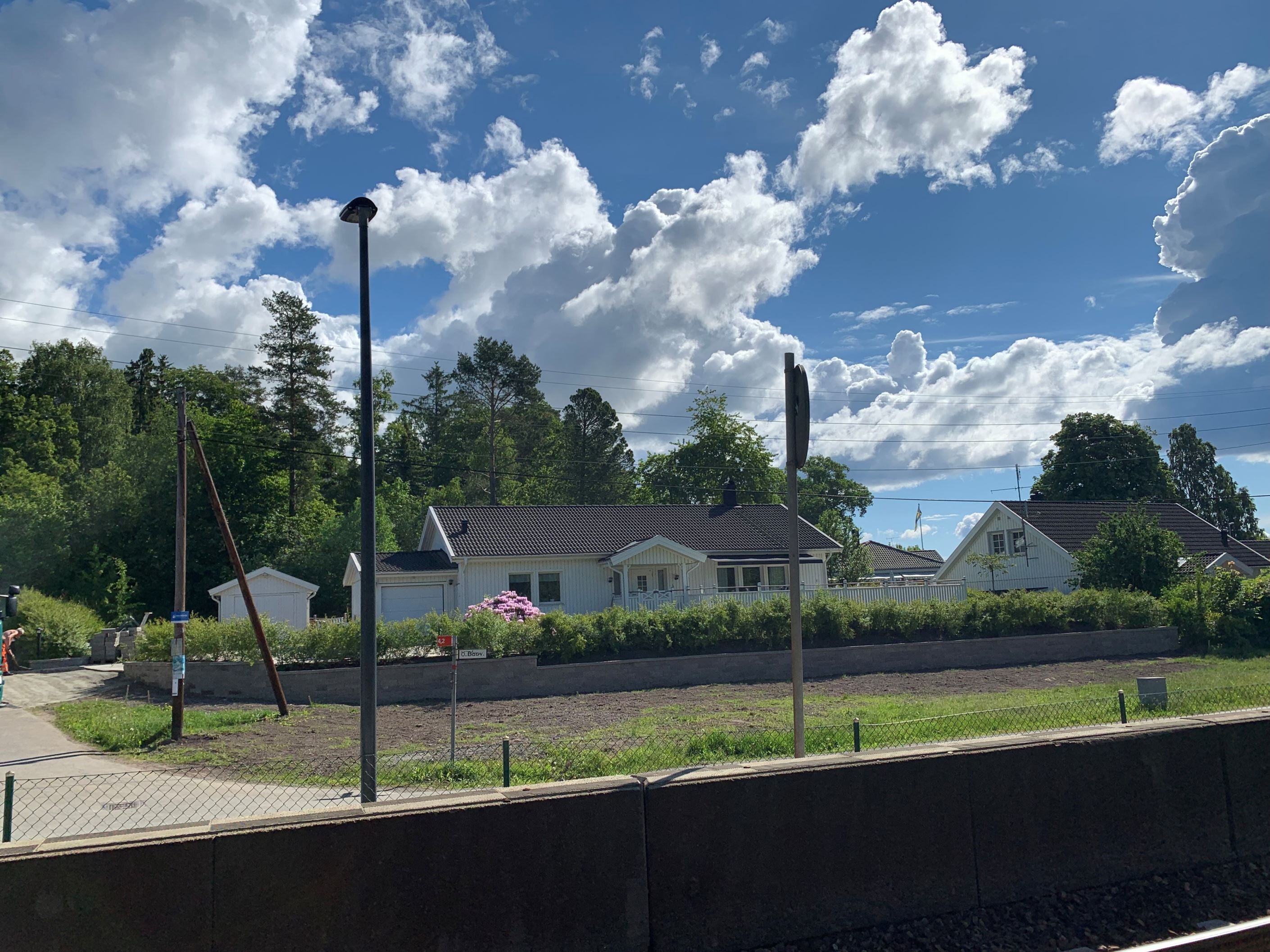 Enplansvilla med stor insynsskyddad baksida med sol hela dagen