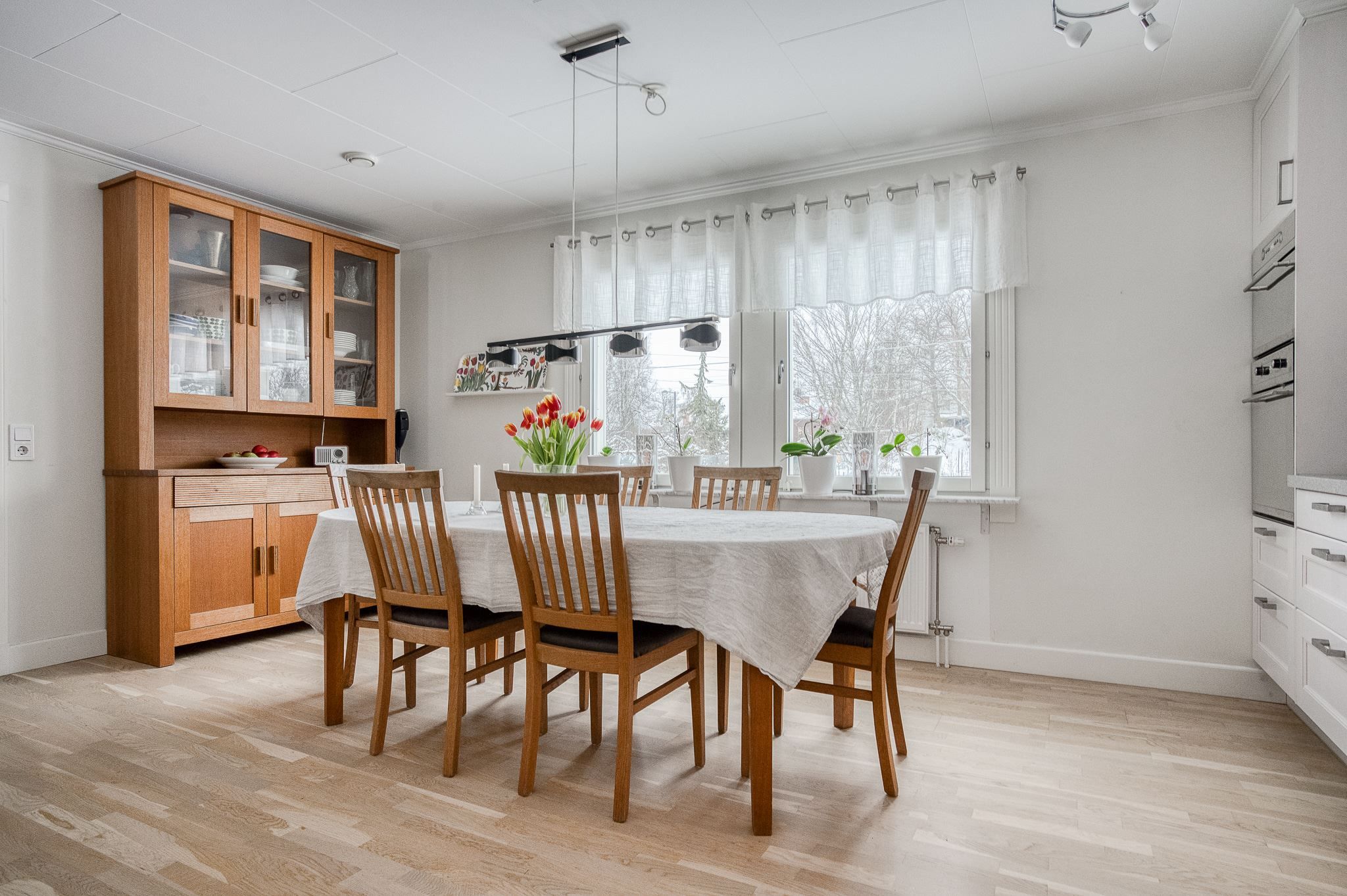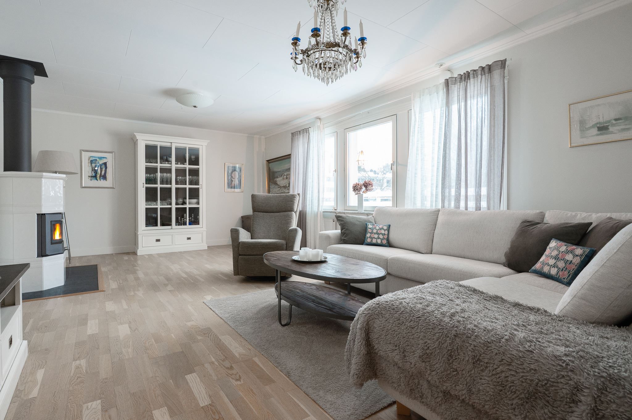 Huset erbjuder tre bra sovrum, ett stort och inbjudande vardagsrum med braskamin samt ett rymligt kök med gott om förvaring och plats för den stora familjen eller vännerna. Planlösningen kompletteras av en generös hall med skjutdörrsgarderob, en praktisk och rymlig tvättstuga, badrum med dusch samt separat gästtoalett.