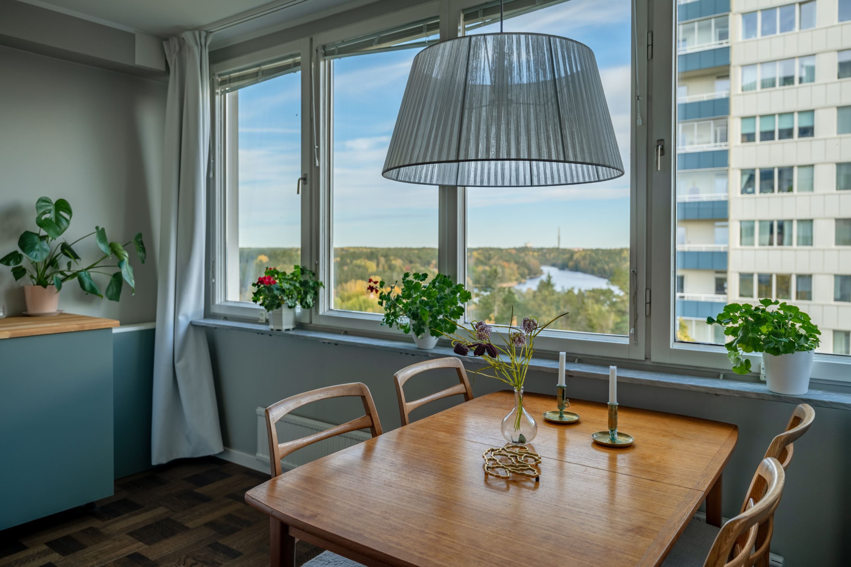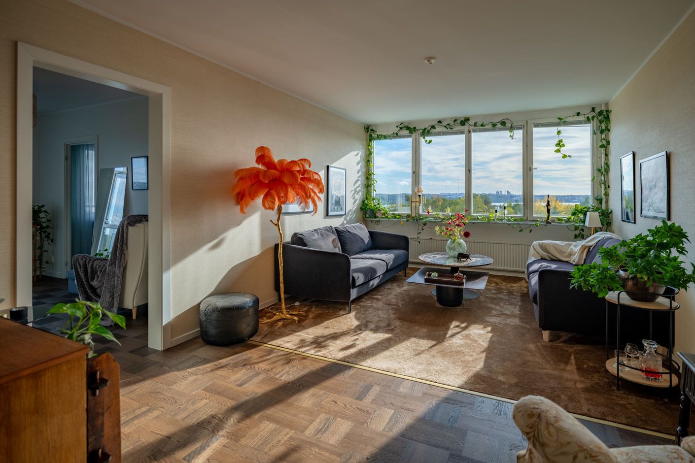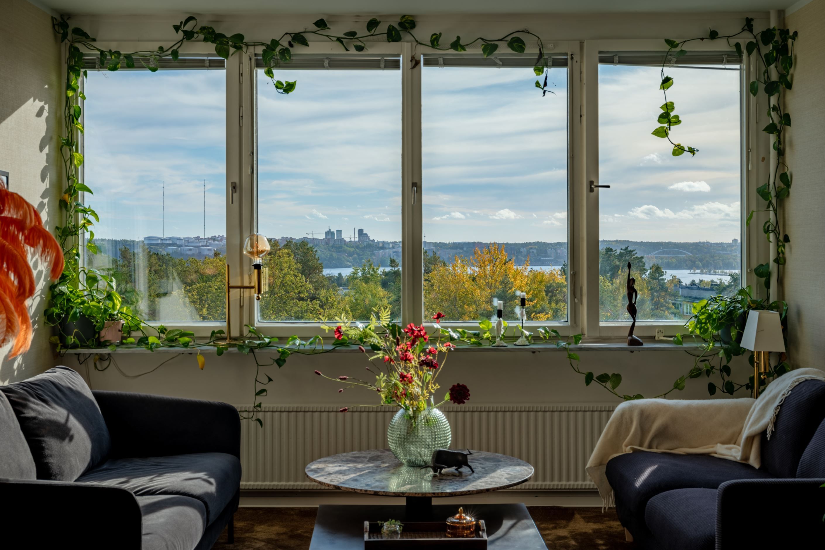 Välkommen upp till sjätte våningen och låt dig hänföras av en magisk utsikt över Stockholm stad, inloppet och det glittrande vattnet vid Kottlasjön. Här väntar en varsamt totalrenoverad hörnlägenhet med en solig balkong – en plats att njuta av både stilla morgnar och ljumma kvällar.