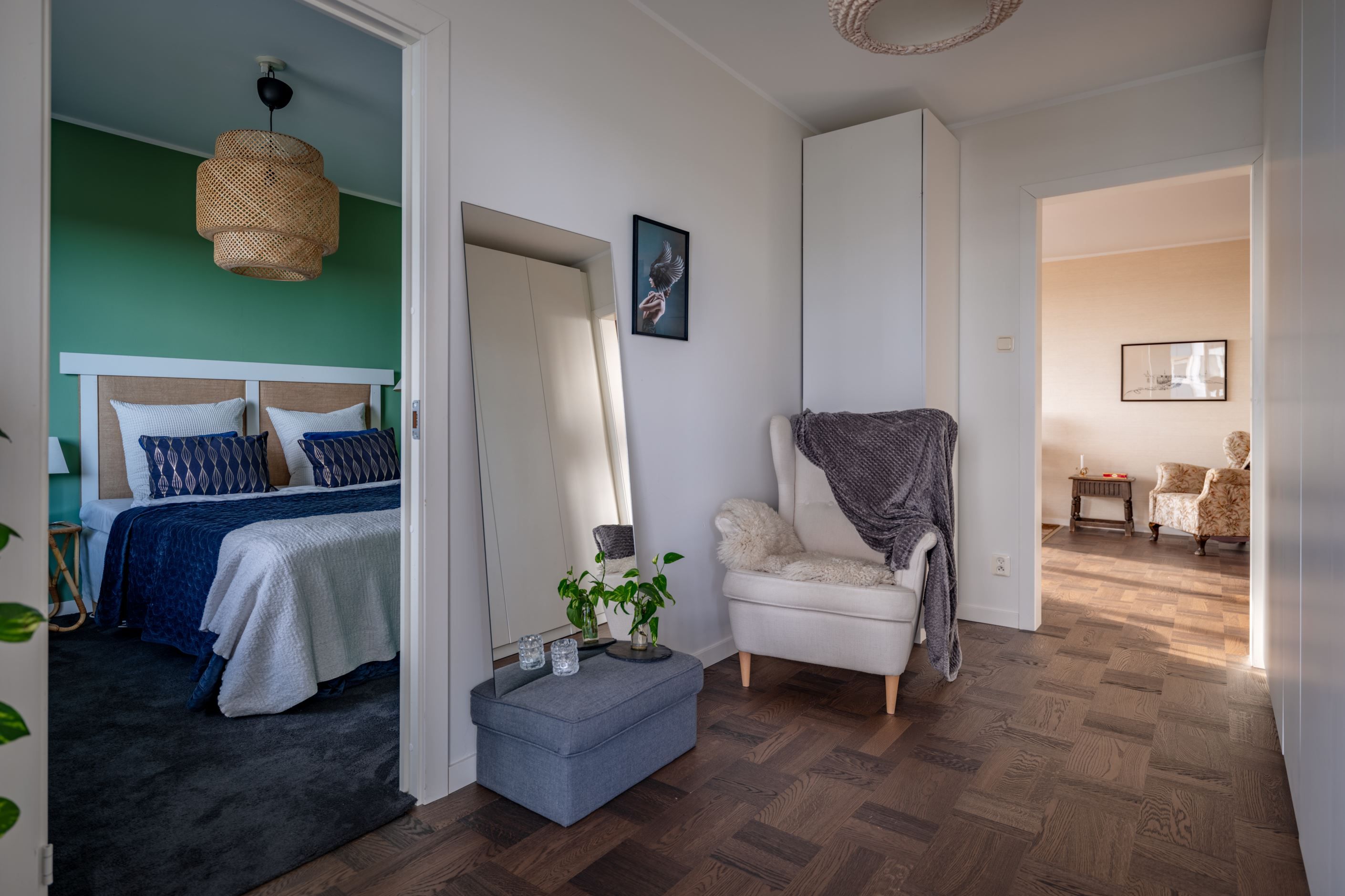 Bostaden erbjuder ett socialt vardagsrum, stilrent kök i modern design, ett smakfullt stambytt badrum samt en praktisk gäst-wc. Genomgående präglas hemmet av ljusa ytor, noggrant utvalda materialval och ett generöst ljusinsläpp som skapar en inbjudande atmosfär.