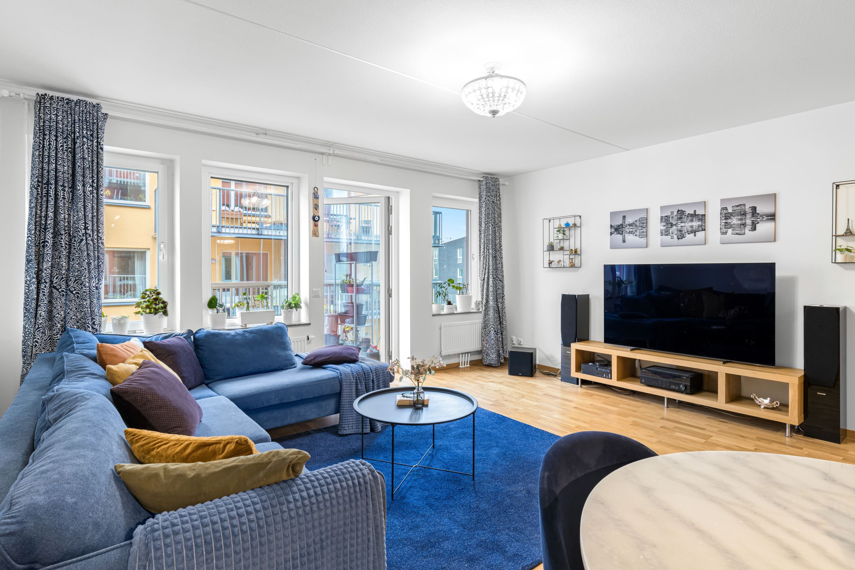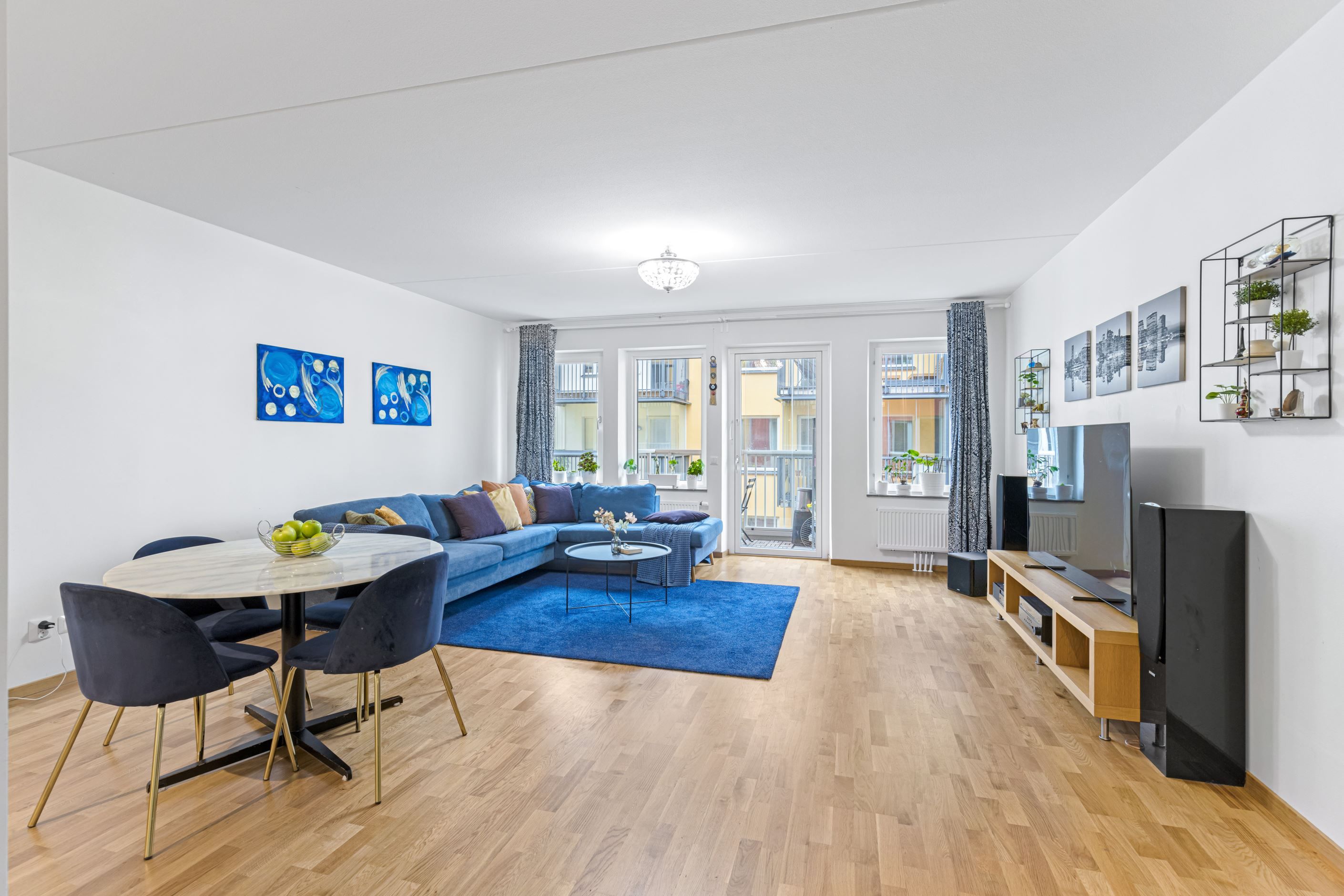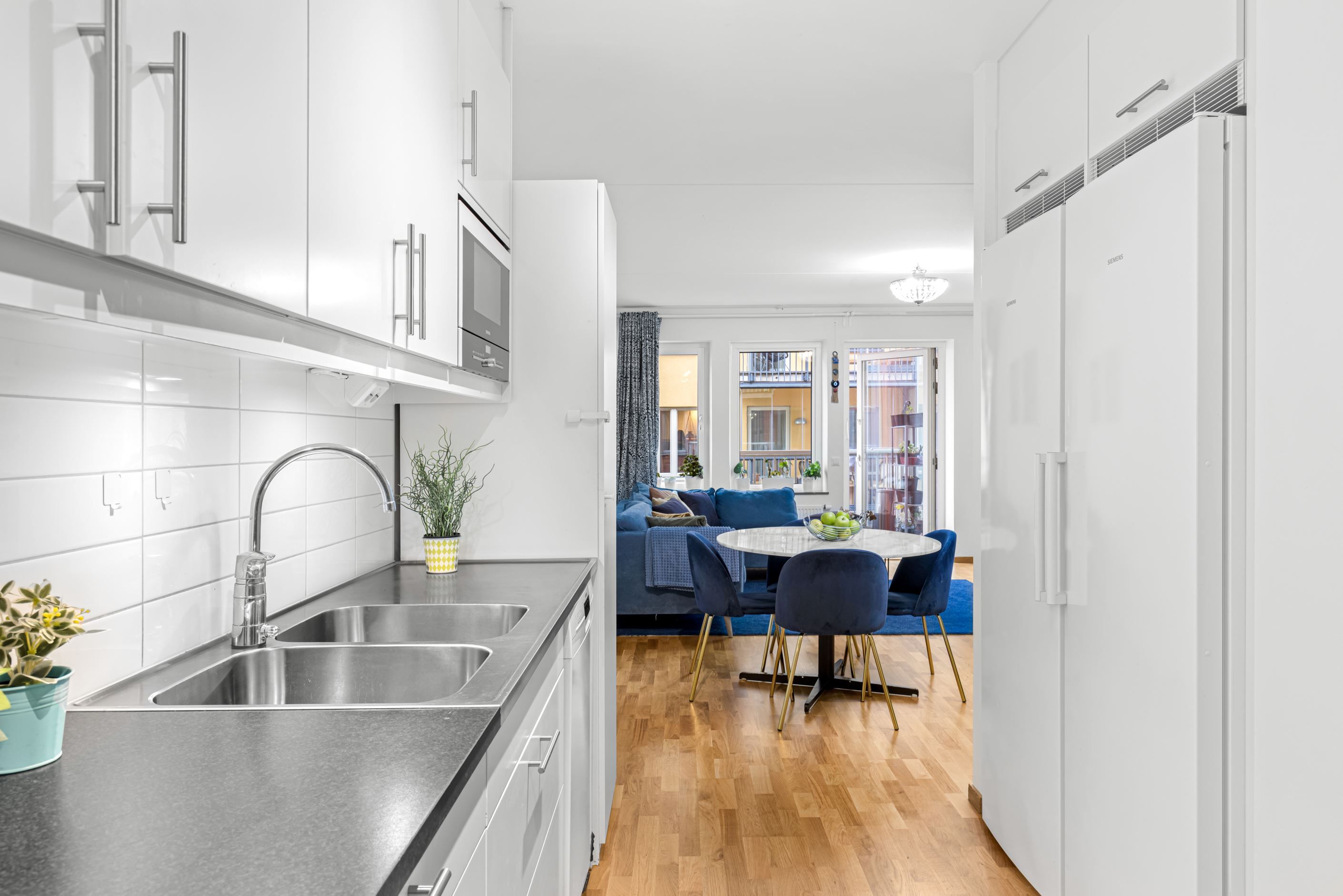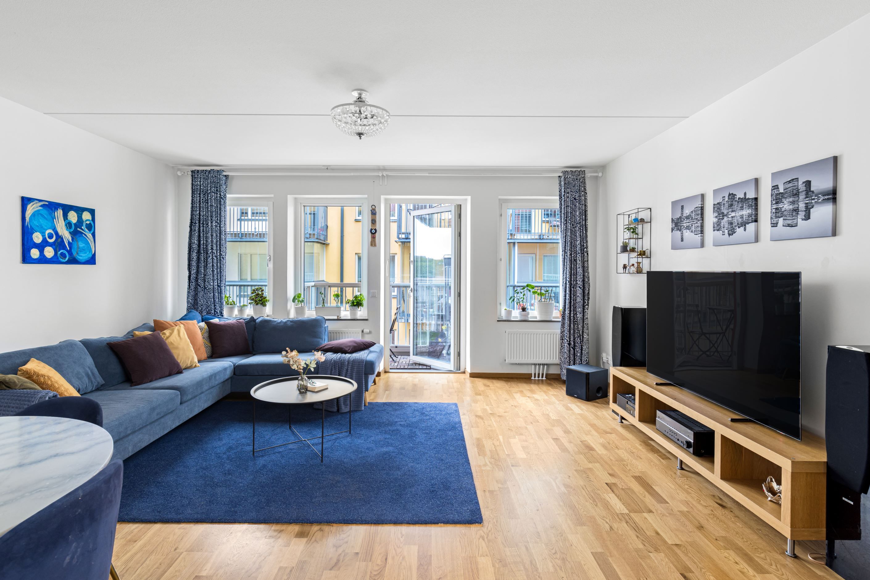 Välkommen hem! Med hiss från markplan bor du här bekvämt i högt läge. Här finner du en modern och välplanerad bostad med trevlig planlösning. Kök och vardagsrum går i efterfrågad öppen planlösning, men med smart gjorda val så får köket ändå vara sitt eget, med långa arbetsbänkar samt fullstor kyl och frys på motsatt väg. Oavsett om det är mitt i matlagningen eller ni slår er ner för en trevlig måltid är det enkelt att underhålla gäster med det goda sällskapsytorna. Vidare finner du generös förvaring och två bra sovrum (där det större har klädkammare i anslutning). Badrummet är helkaklat med tvättmaskin och torktumlare. Det här är en bostad som passar många med flera fördelar, och som gjort för familj och vänner.