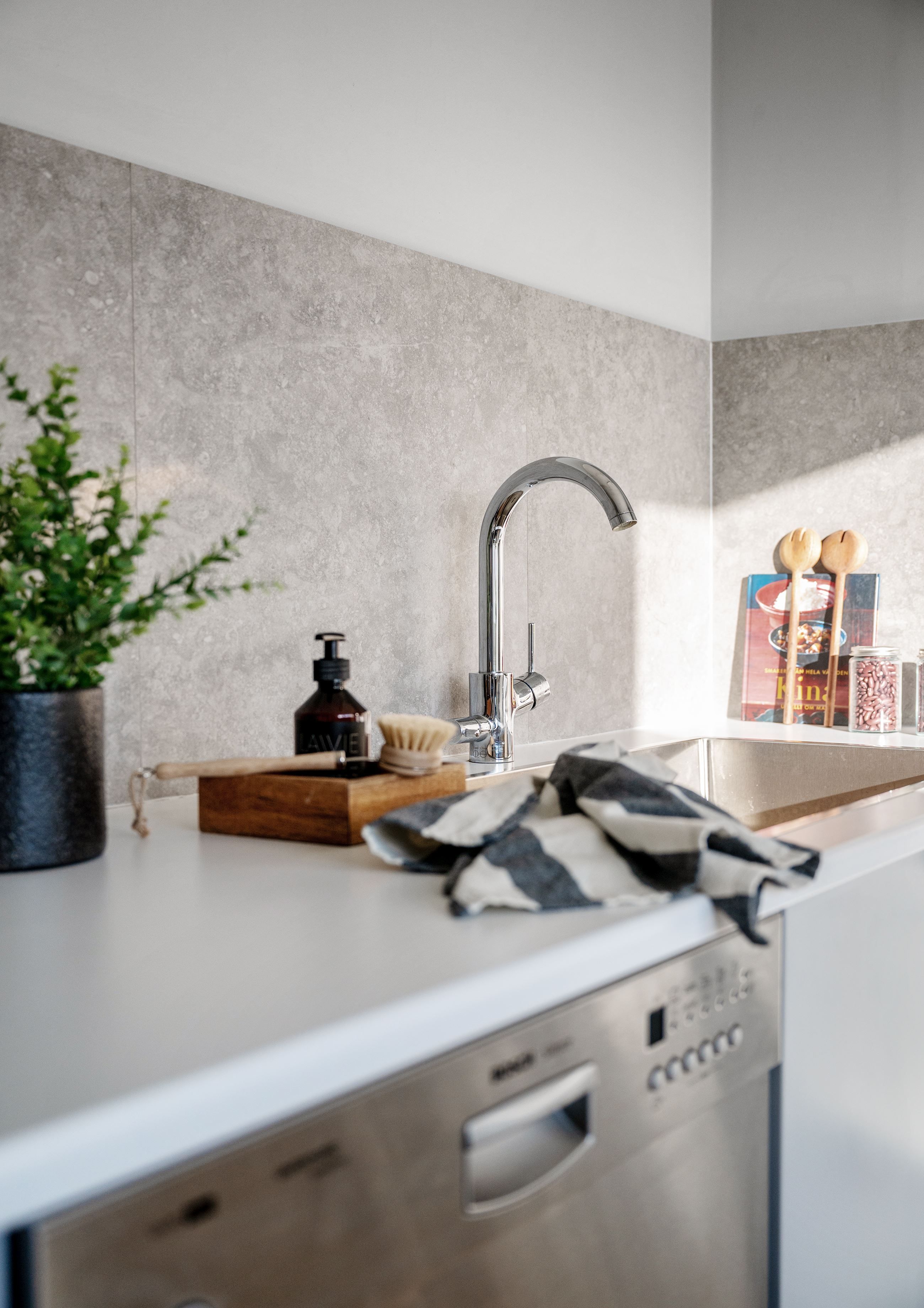 Köket imponerar med sina grå skåpluckor, rostfria vitvaror och ett charmigt matbord vid fönstret. Den eleganta hallen hälsar dig välkommen med marmorplattor och eklaminat, medan badrummet erbjuder modern komfort med stilrent vitt kakel och takdusch. En rymlig klädkammare ger utmärkt förvaringsmöjlighet.