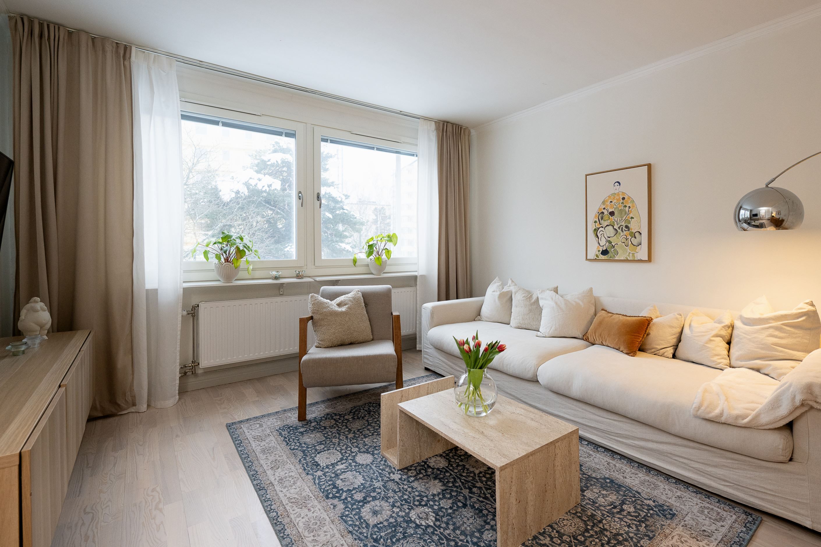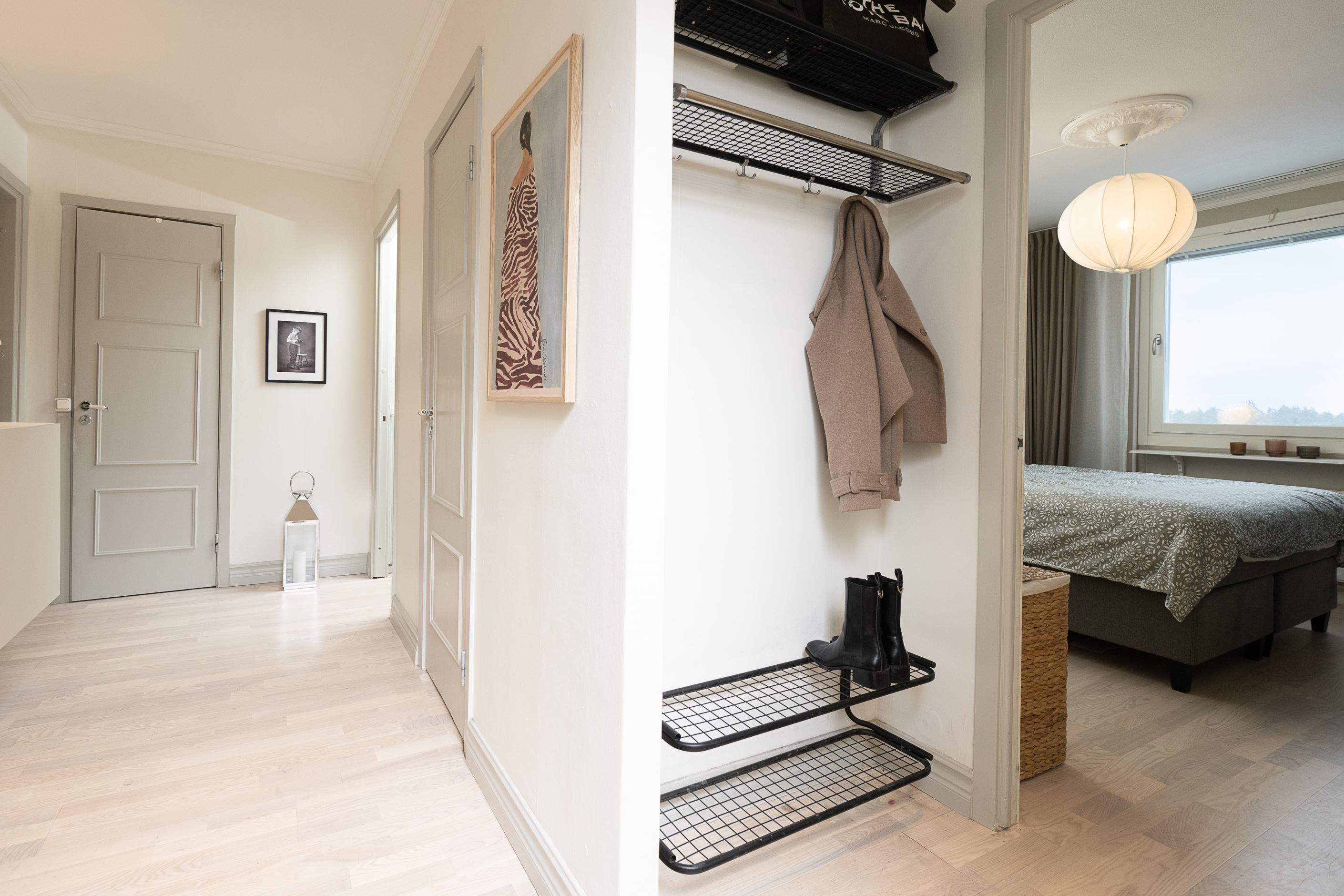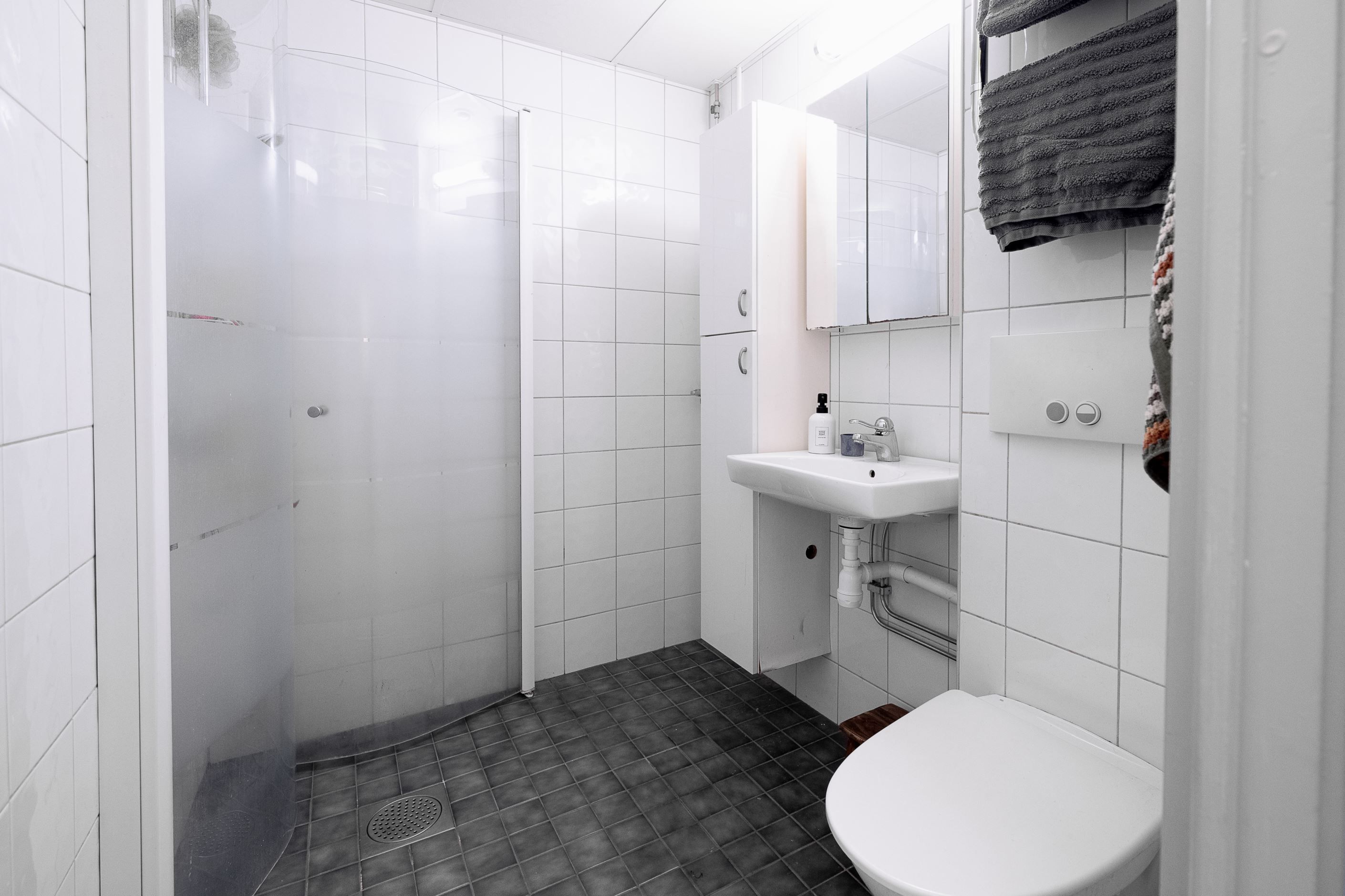 I det stilfulla köket, med sina vita skåpsluckor och elegant kakel, har du både funktion och design. Balkongen, precis intill köket och vardagsrummet, bjuder på mysiga kaffestunder. Det moderna, helkaklade badrummet med grått golv och duschhörna erbjuder en fräsch start på dagen.