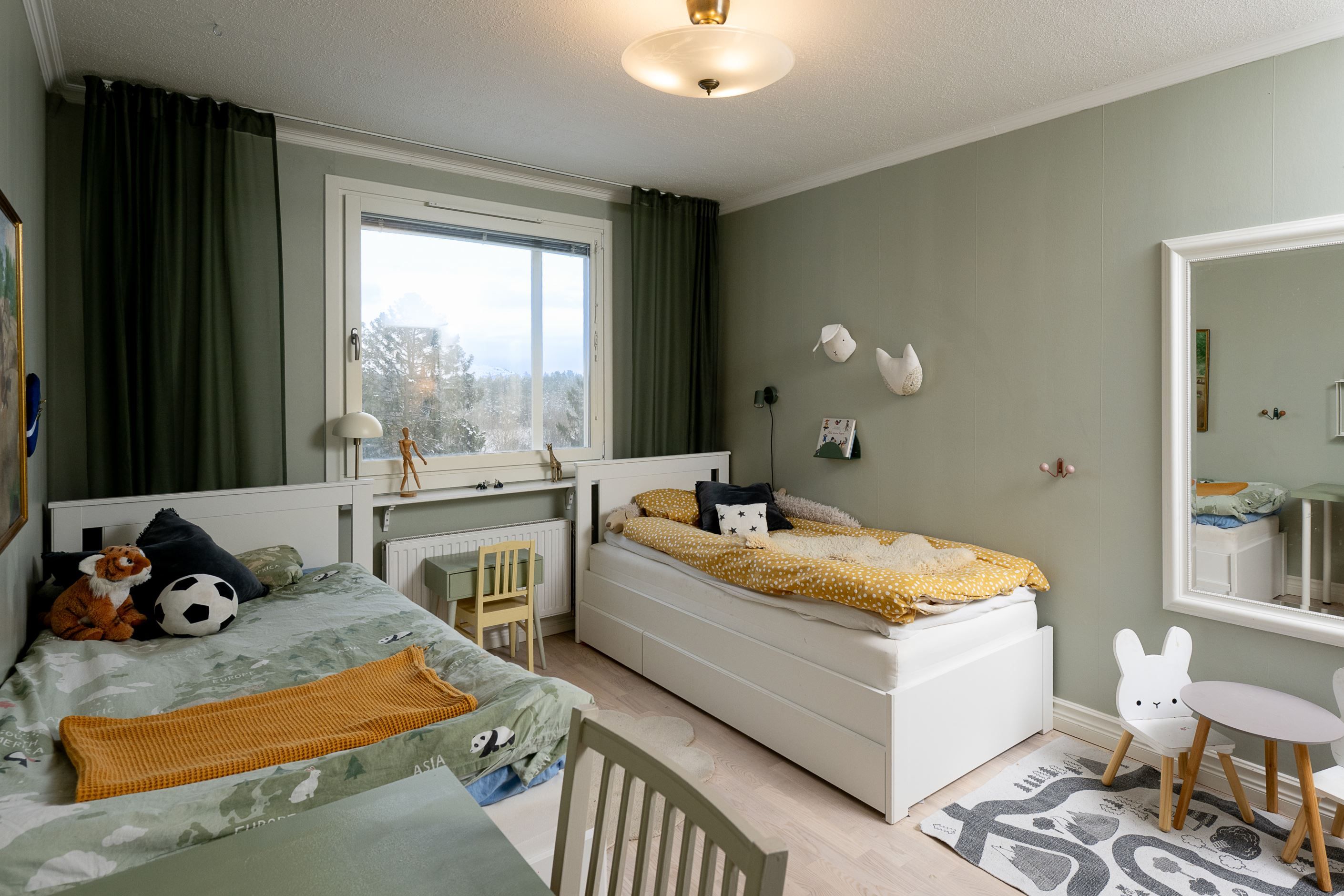 Trerummaren har två rymliga sovrum, där det första har tillgång till en praktisk klädkammare och det andra erbjuder plats för både säng och inbyggda garderober. Dessutom finns ett arbetsrum som enkelt kan anpassas efter dina behov.